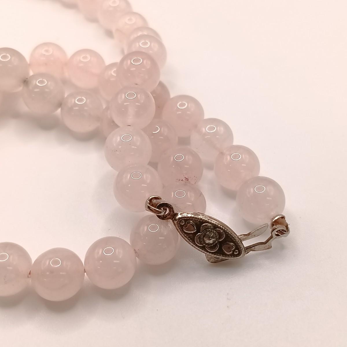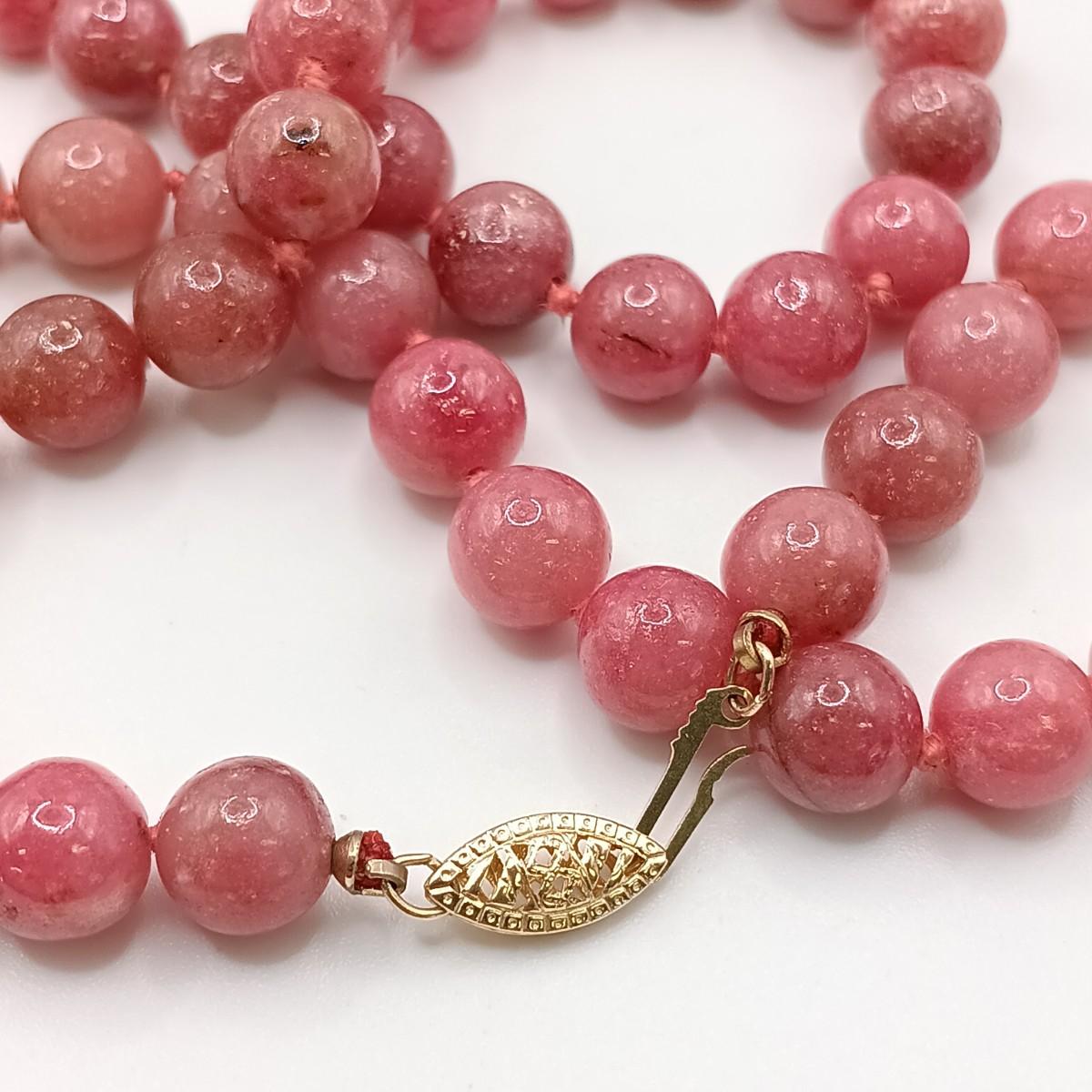 LOT 21: Rodonite Bead Necklace with 14K Clasp & Rose Quartz Bead Necklace