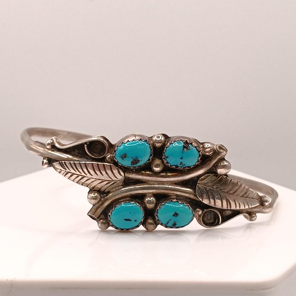 LOT 22: Sterling Silver 925 Native American Turquoise Cuff Bracelet 11.5gtw