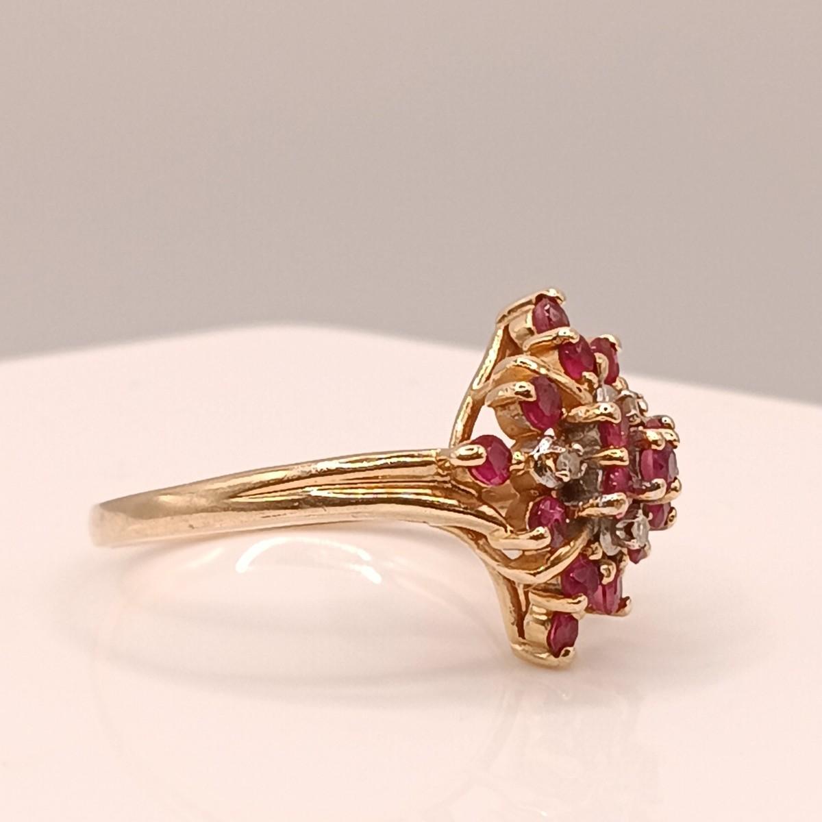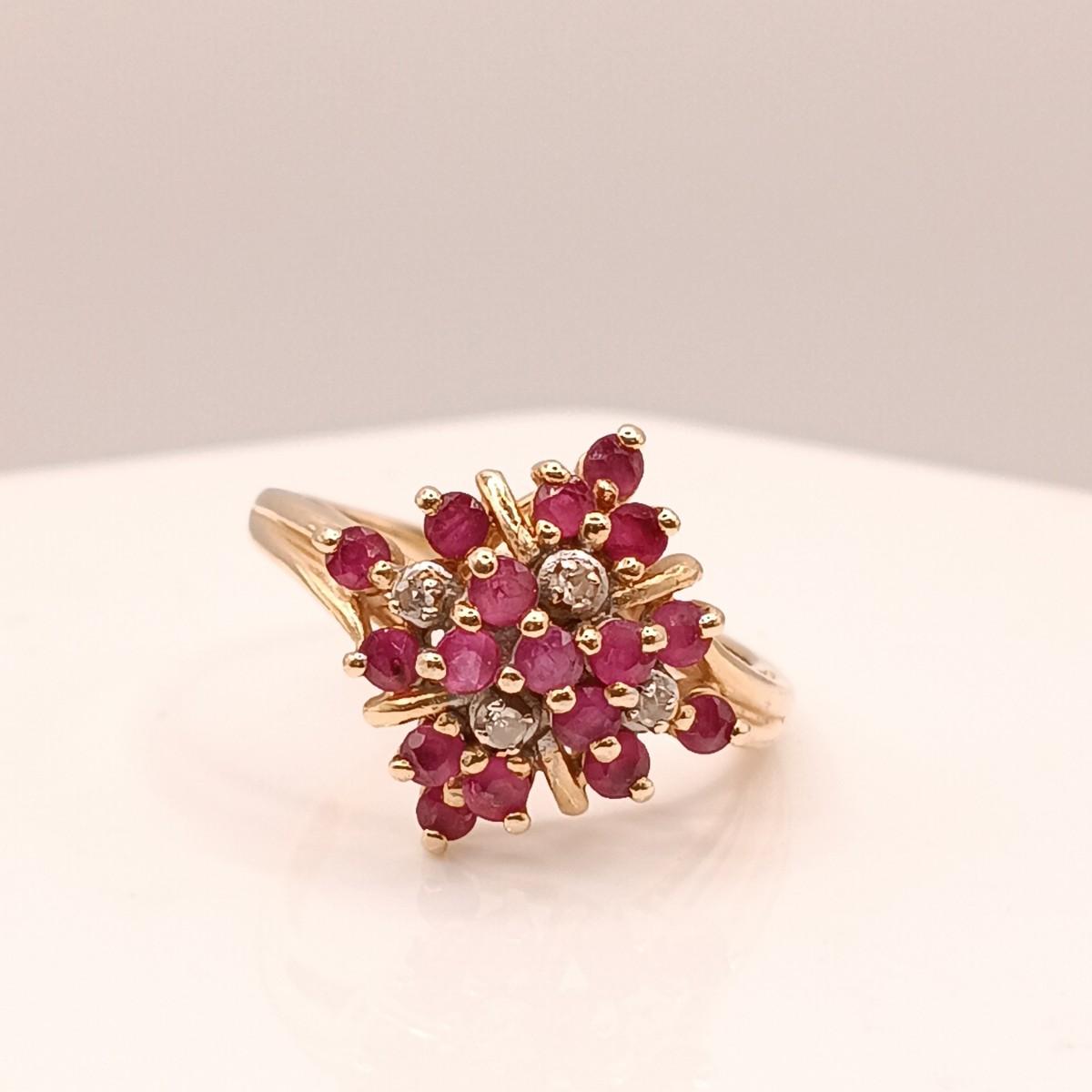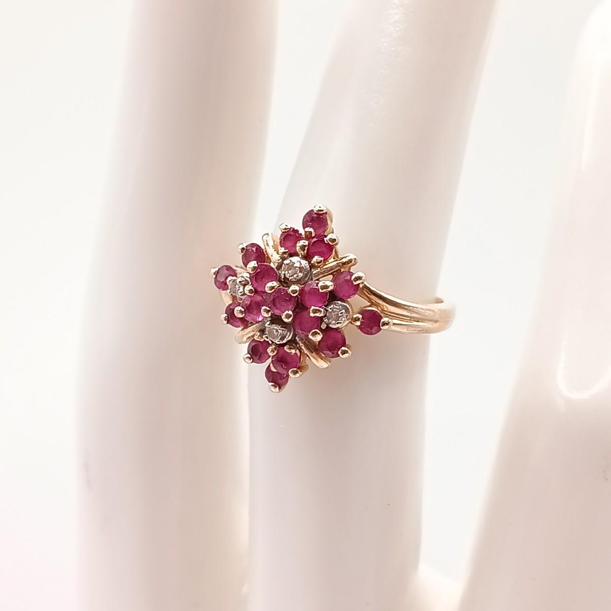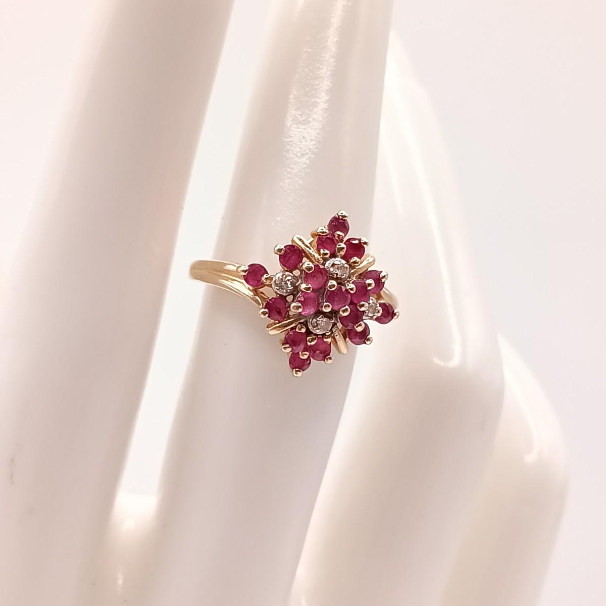 LOT 24: 14K Gold Ruby Cluster Ring 3.37gtw Size 6