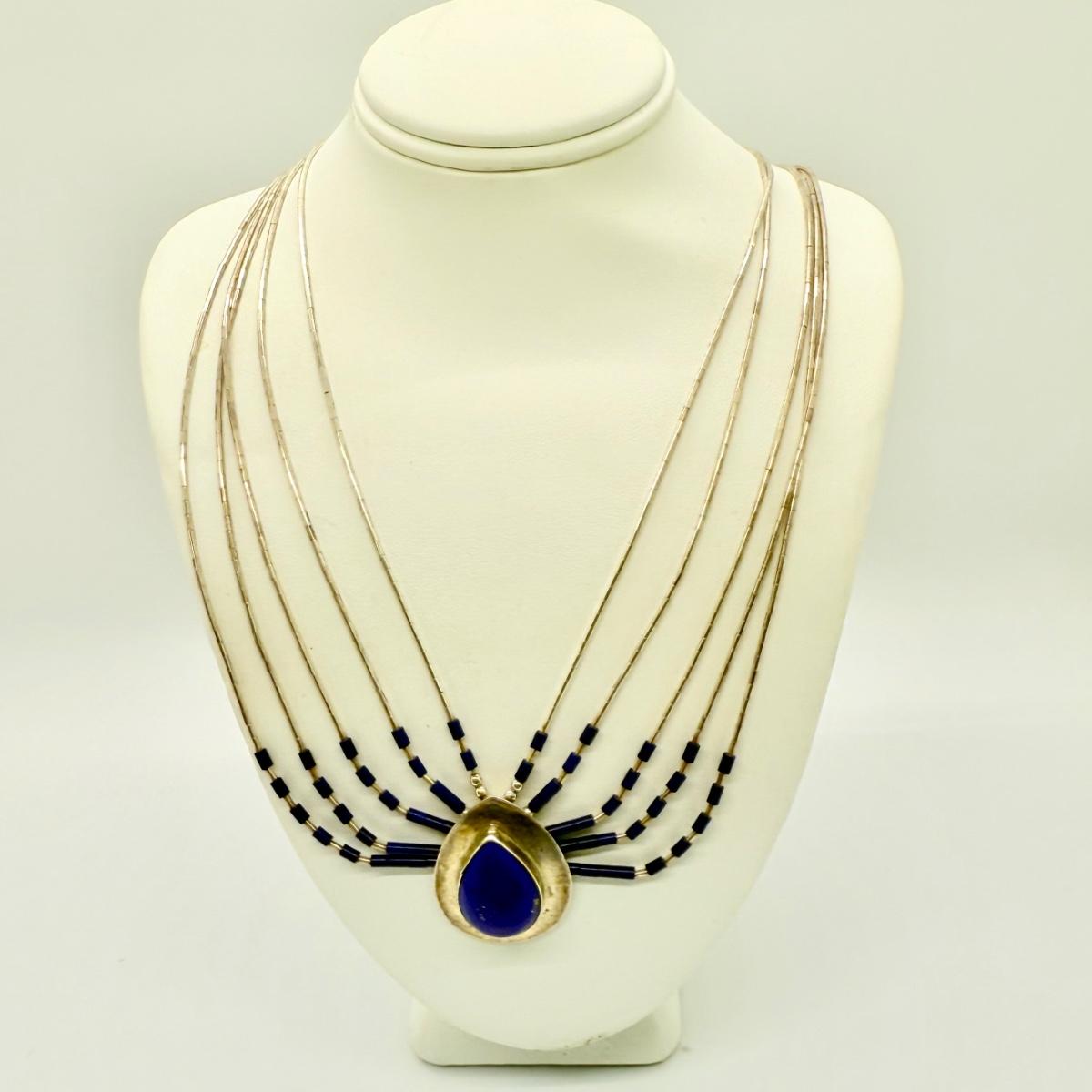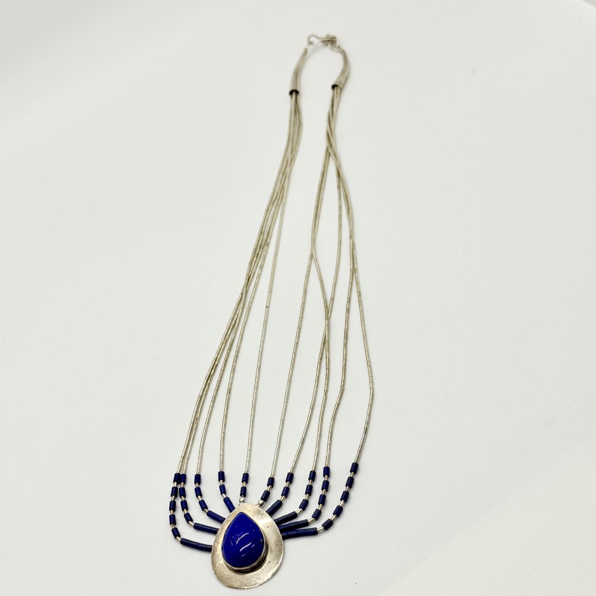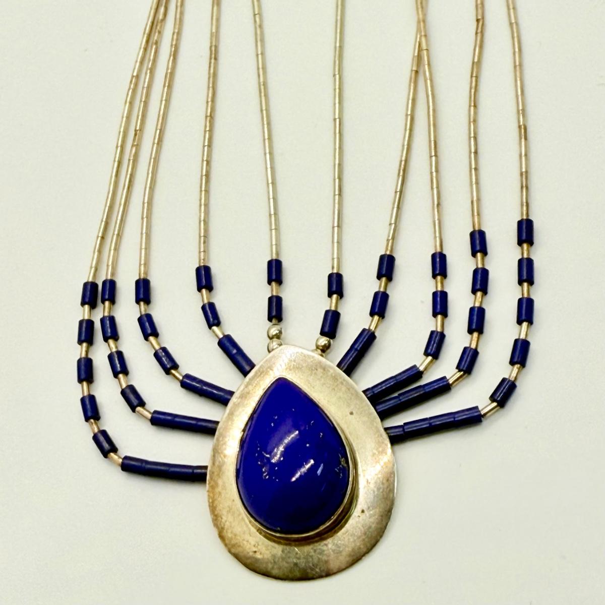 LOT 29: Vintage Native American Blue Lapis Liquid Silver Statement Necklace 18.5” long, 16.0 gtw