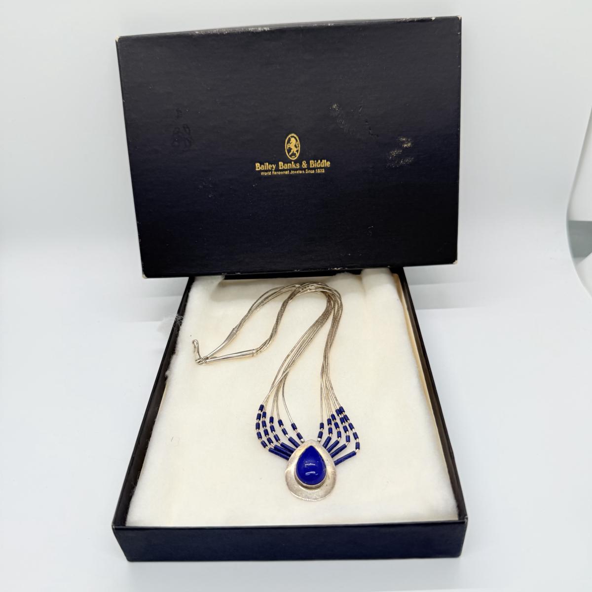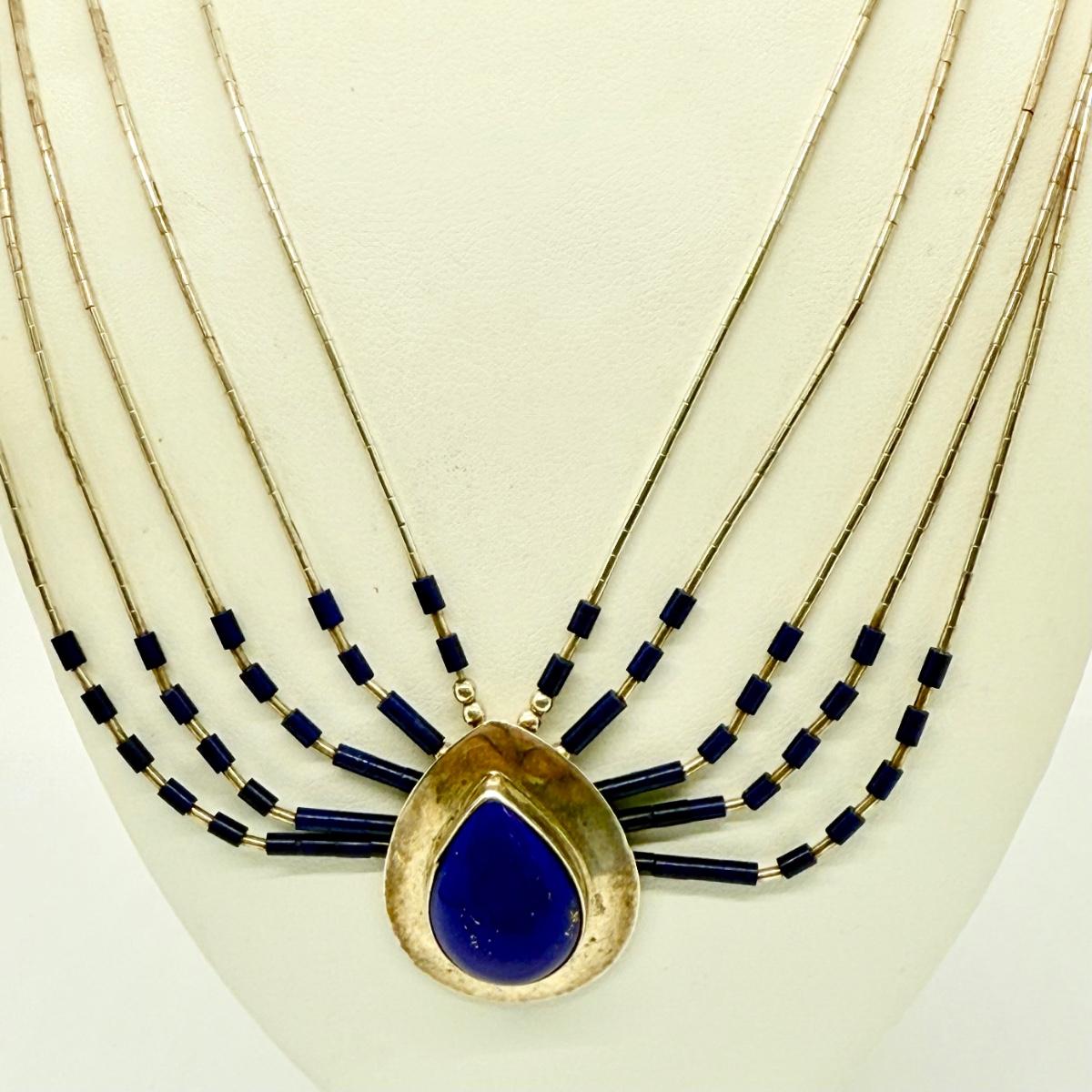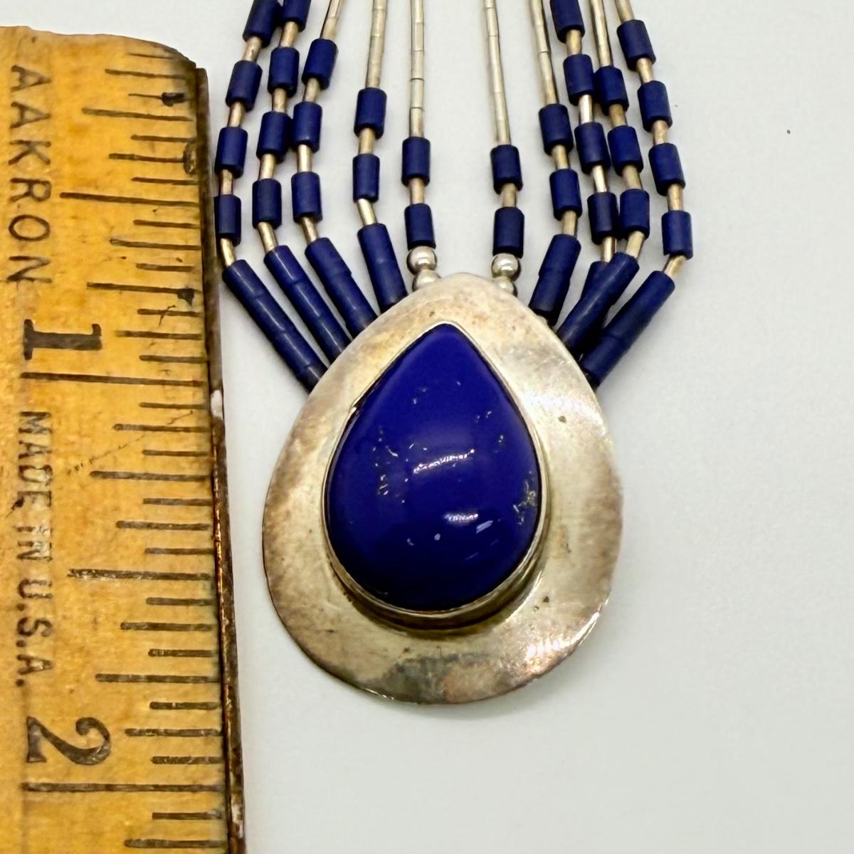 LOT 29: Vintage Native American Blue Lapis Liquid Silver Statement Necklace 18.5” long, 16.0 gtw