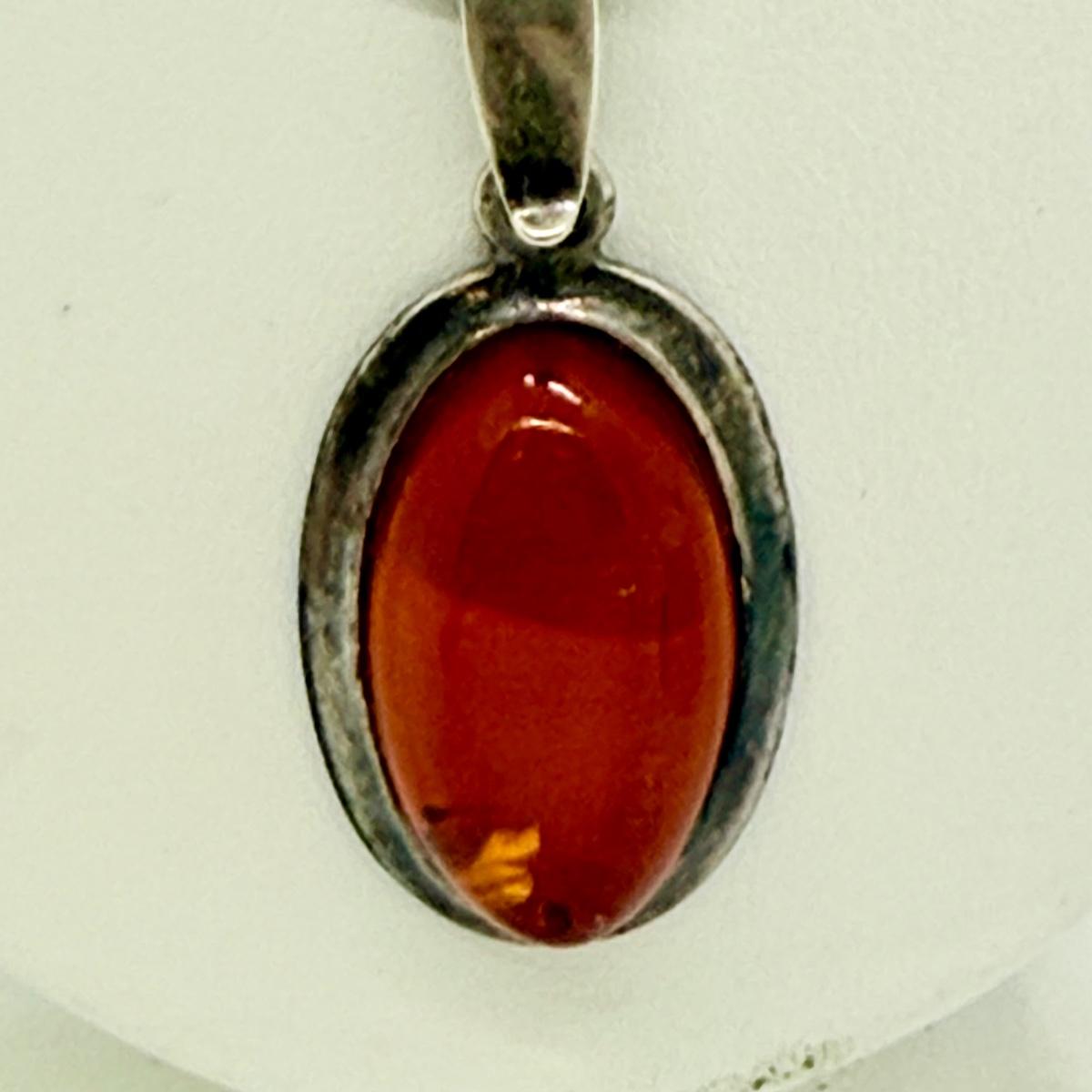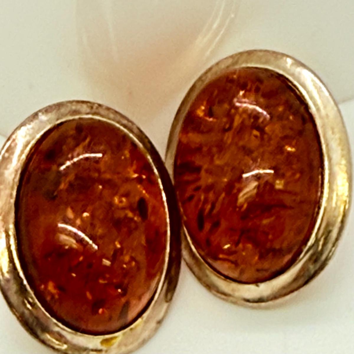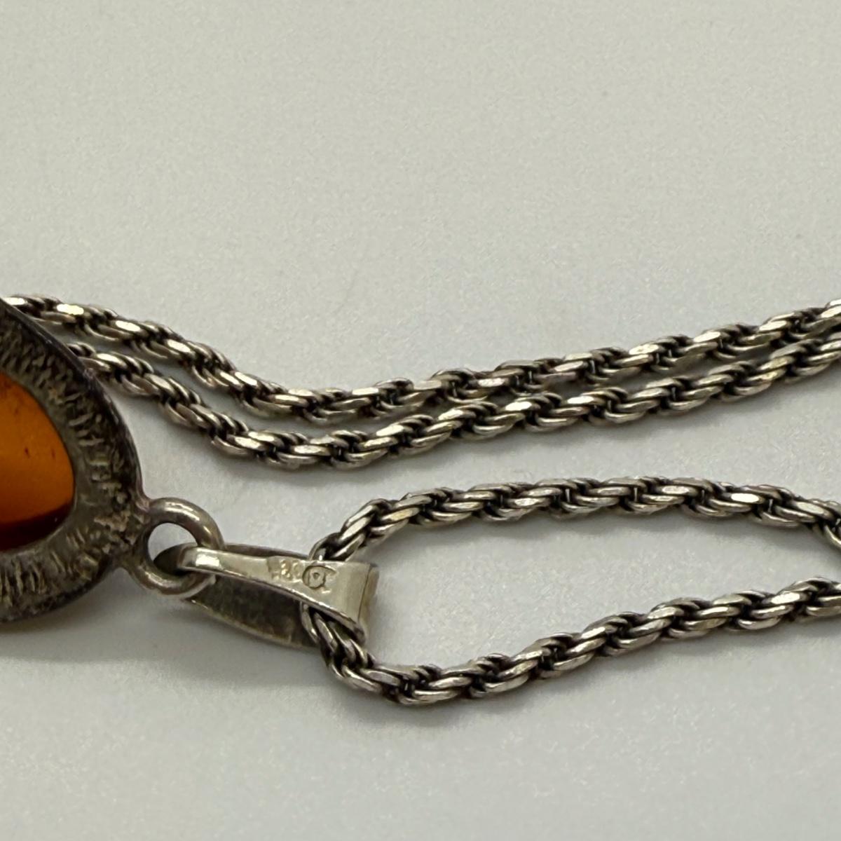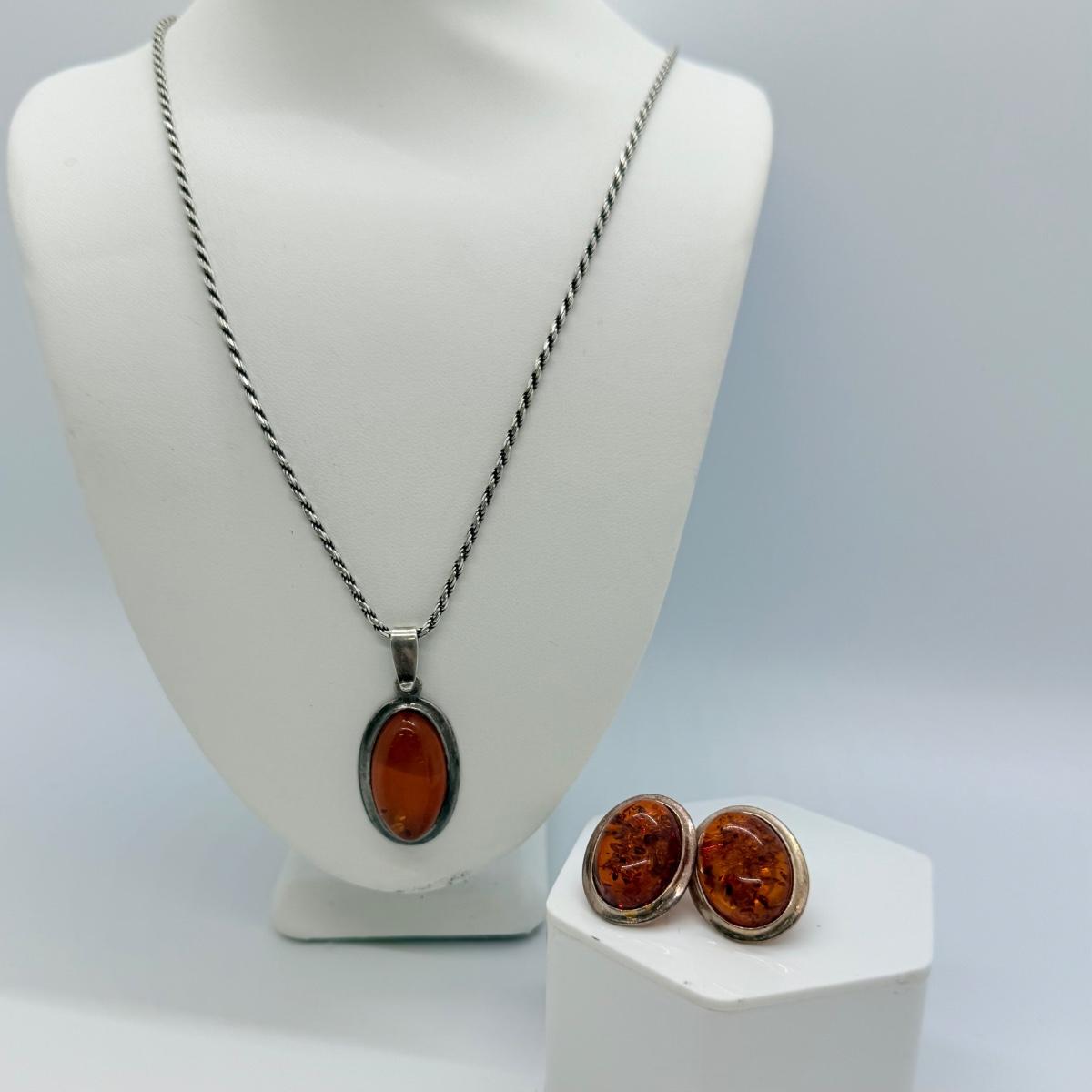 LOT 33: 20” 925 Rope with Amber Pendant and Matching Amber Pierced Earrings 15.1 gtw