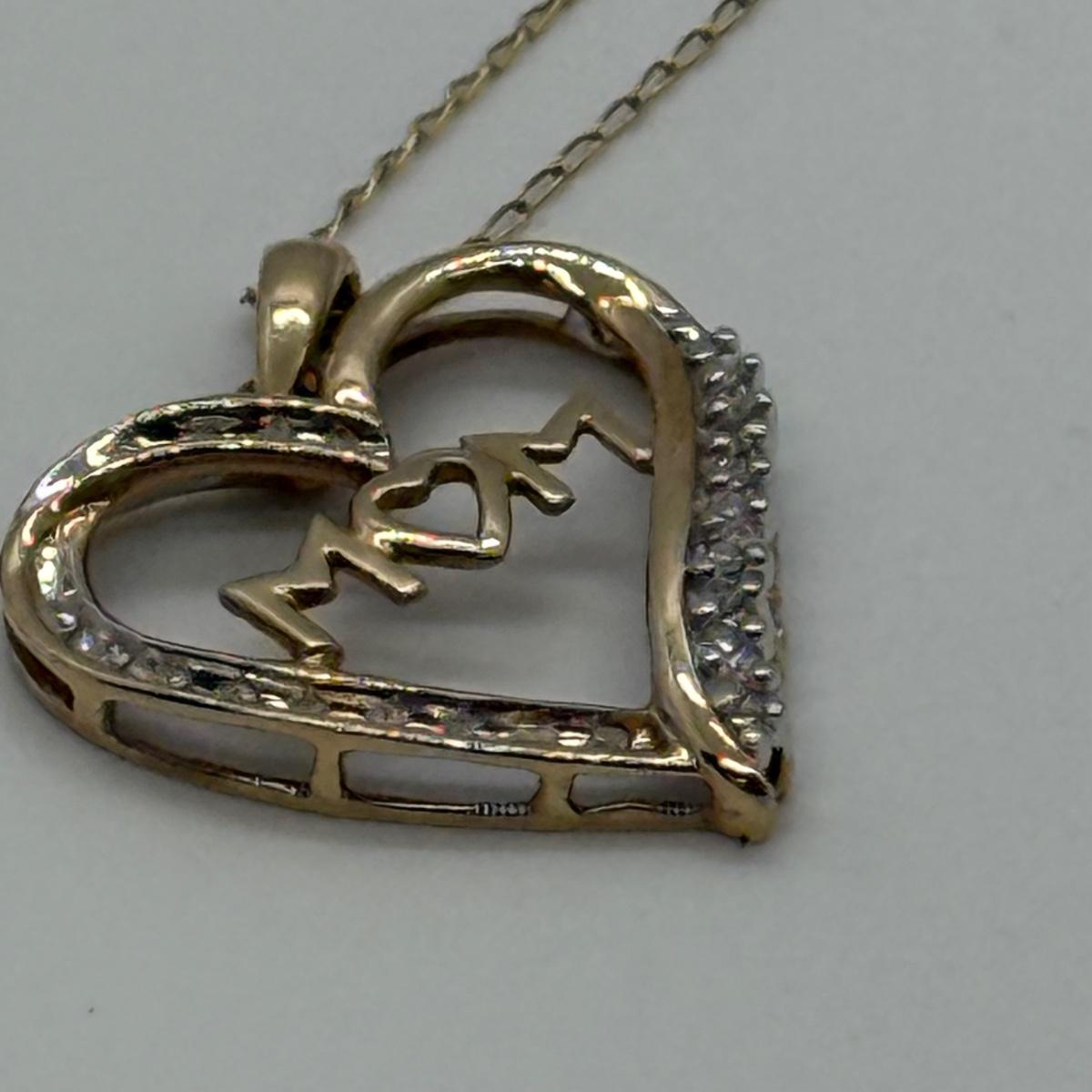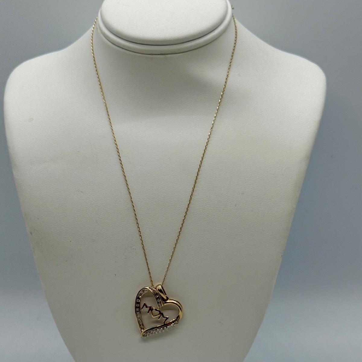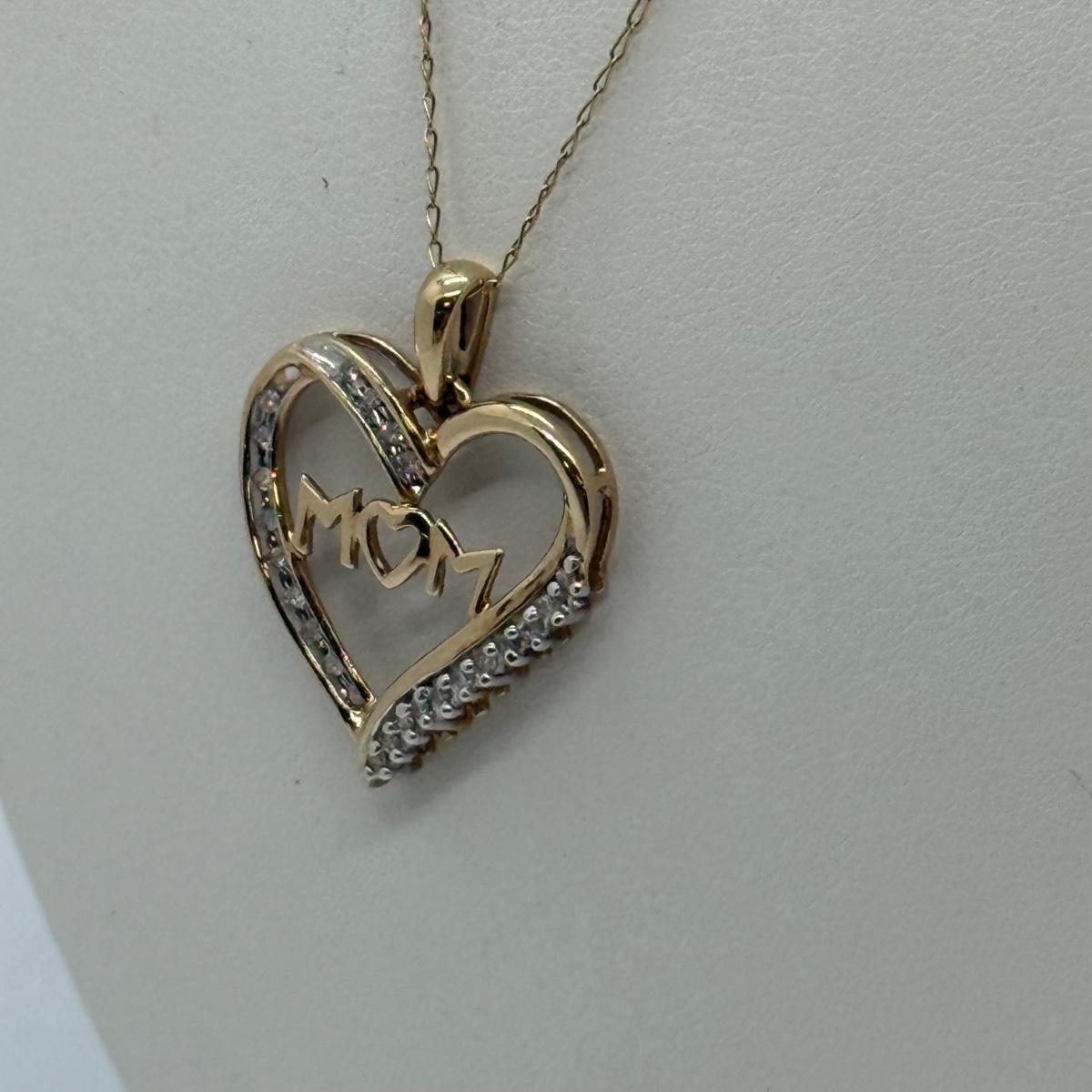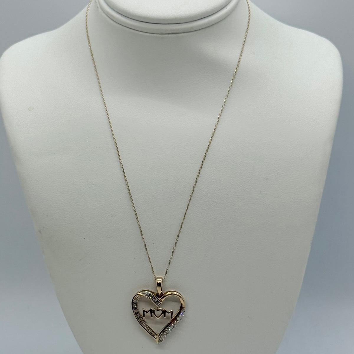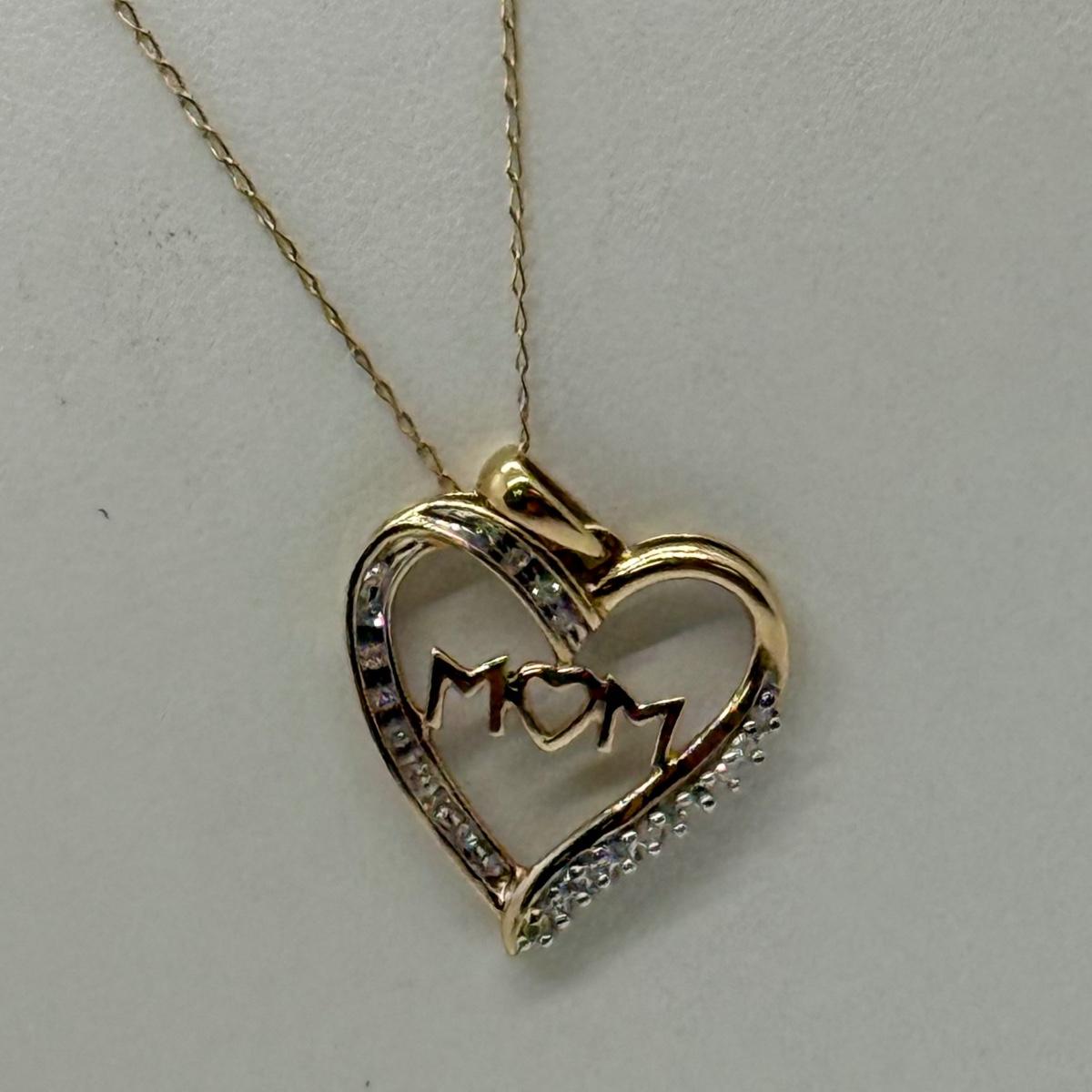 LOT 36: 14k Gold Heart and Diamond “Mom” Pendant 2.0gtw