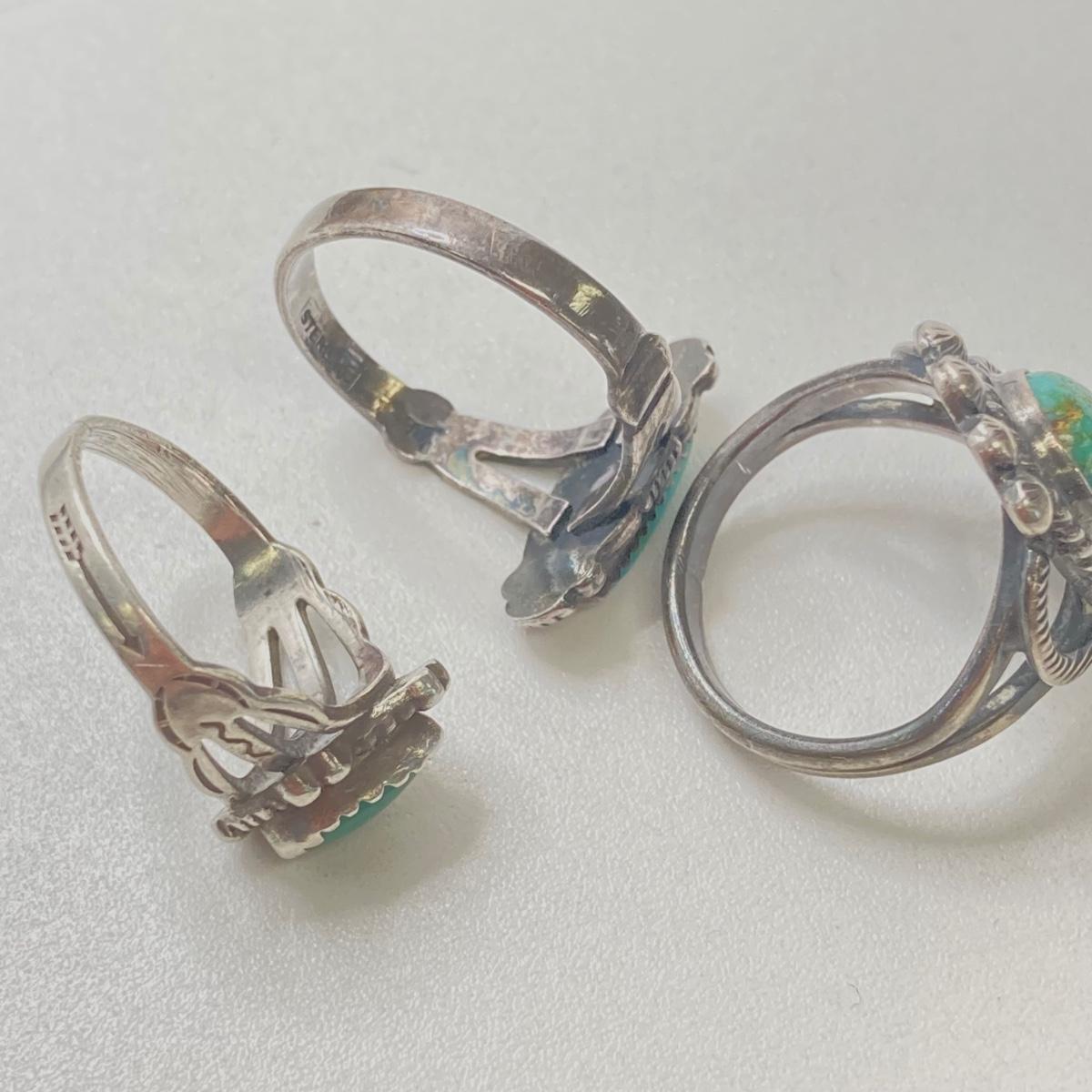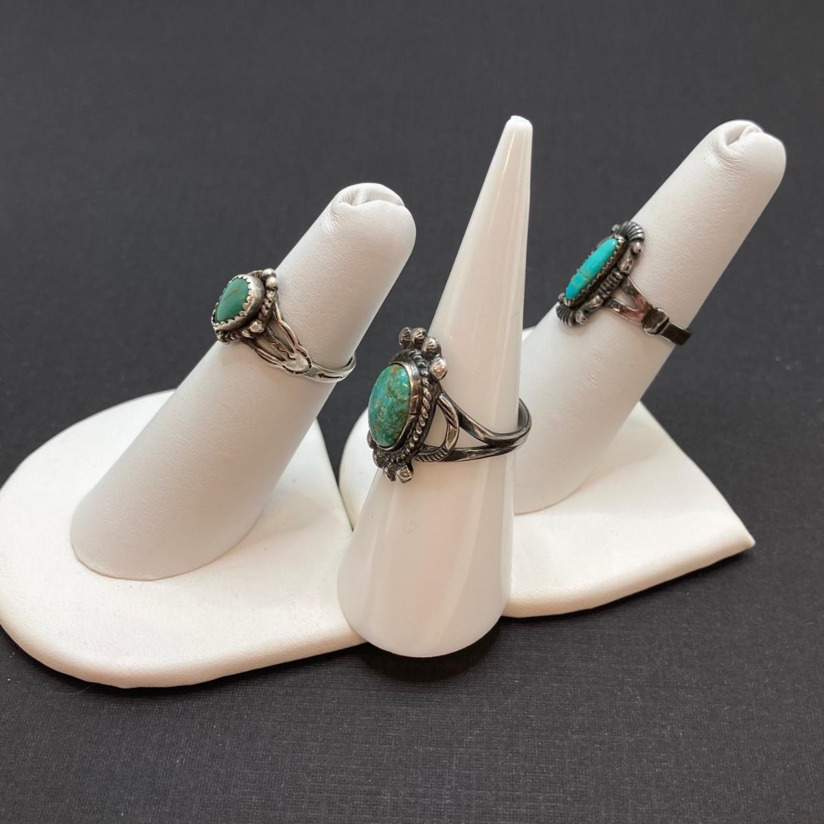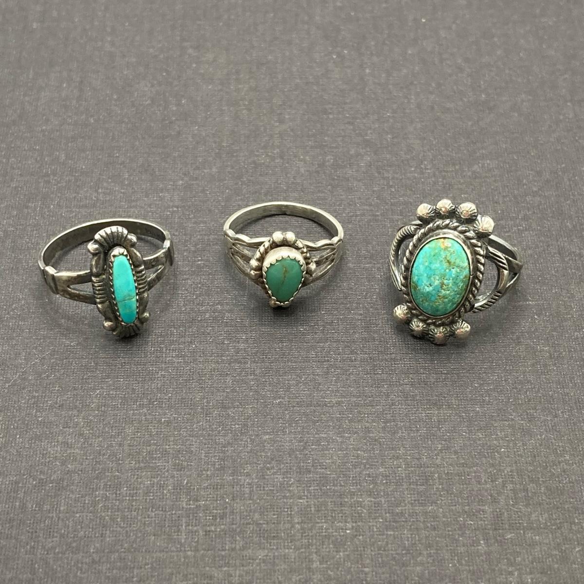 LOT 57: Three Sterling and Turquoise Rings Sizes 4, 4.5 and 6 - 9.3 gtw