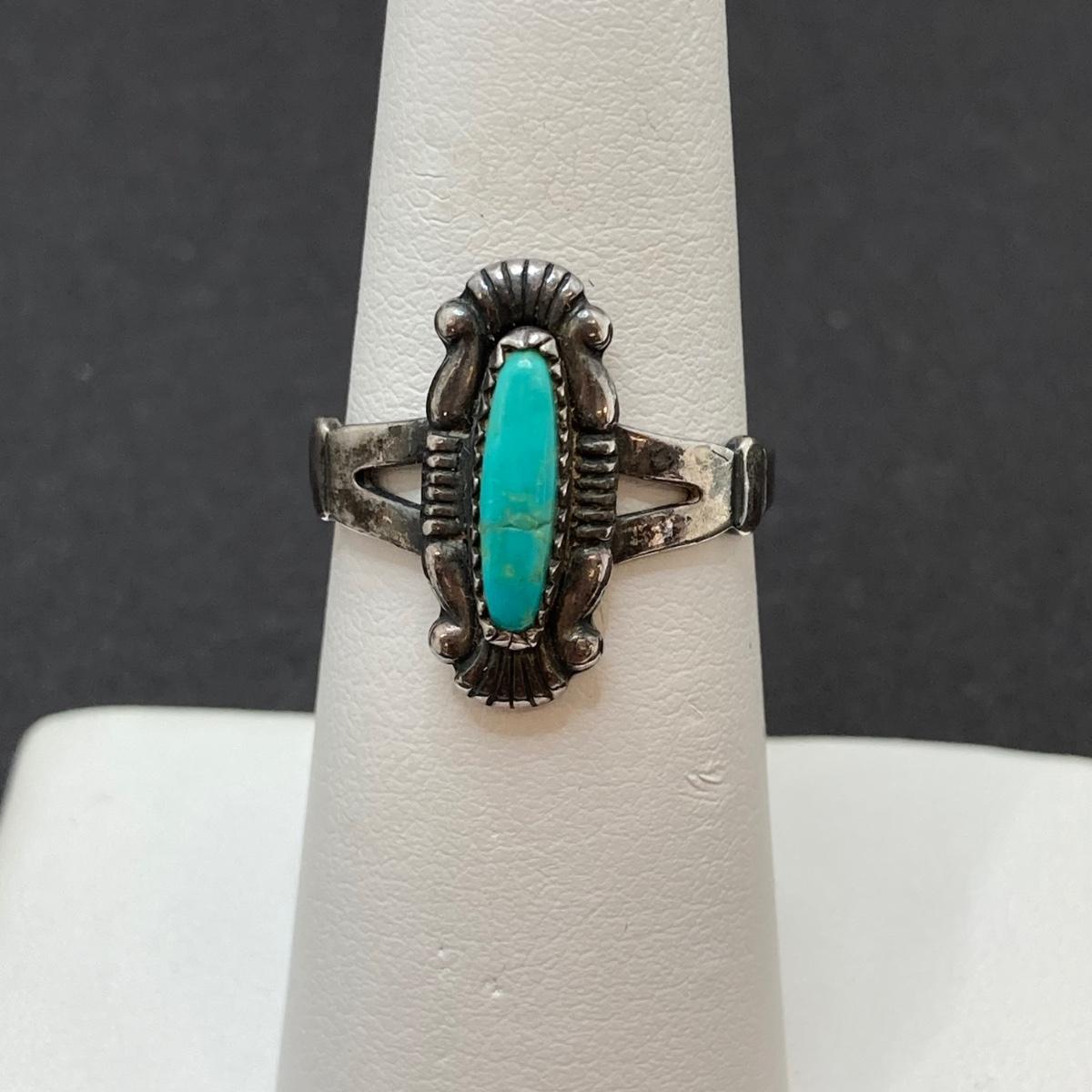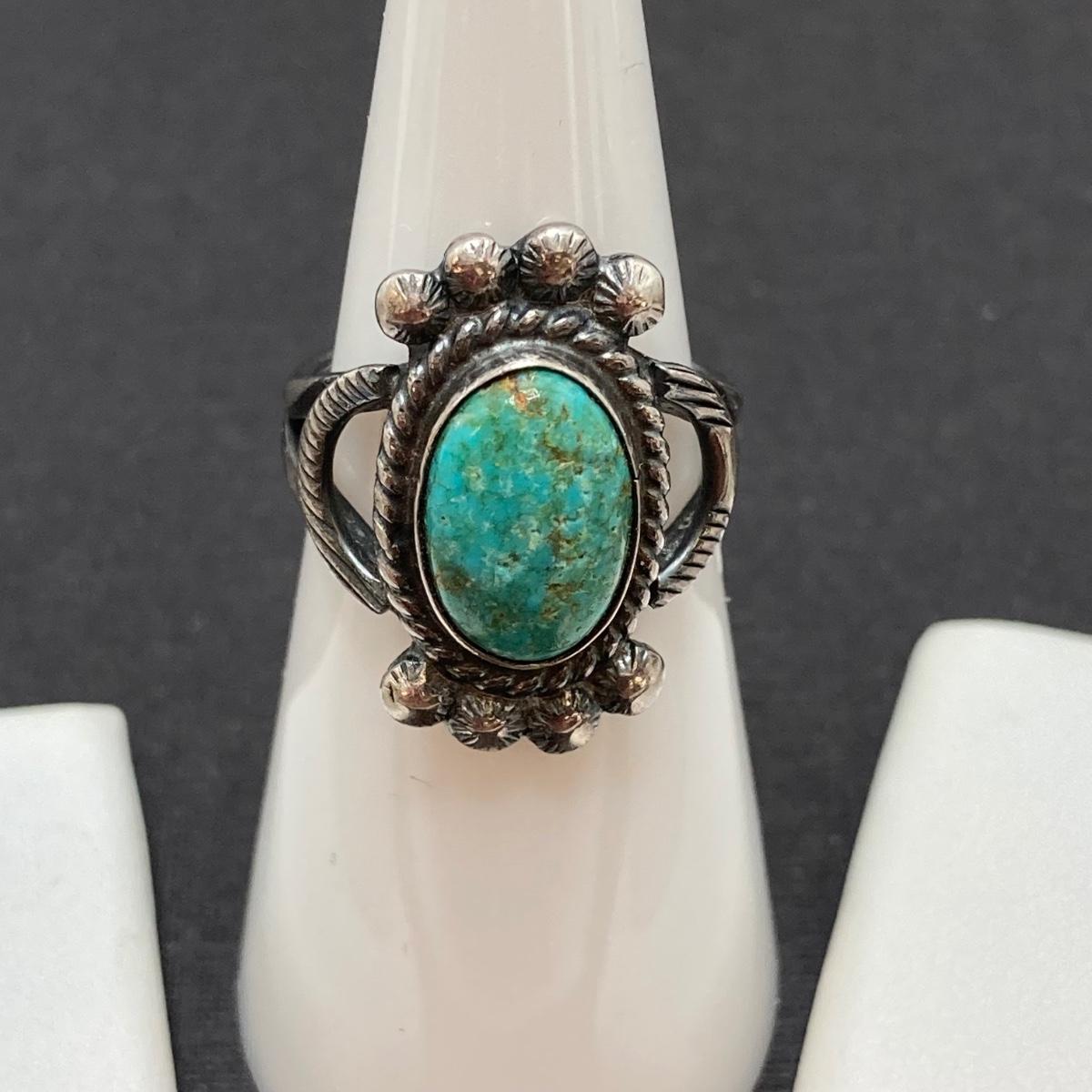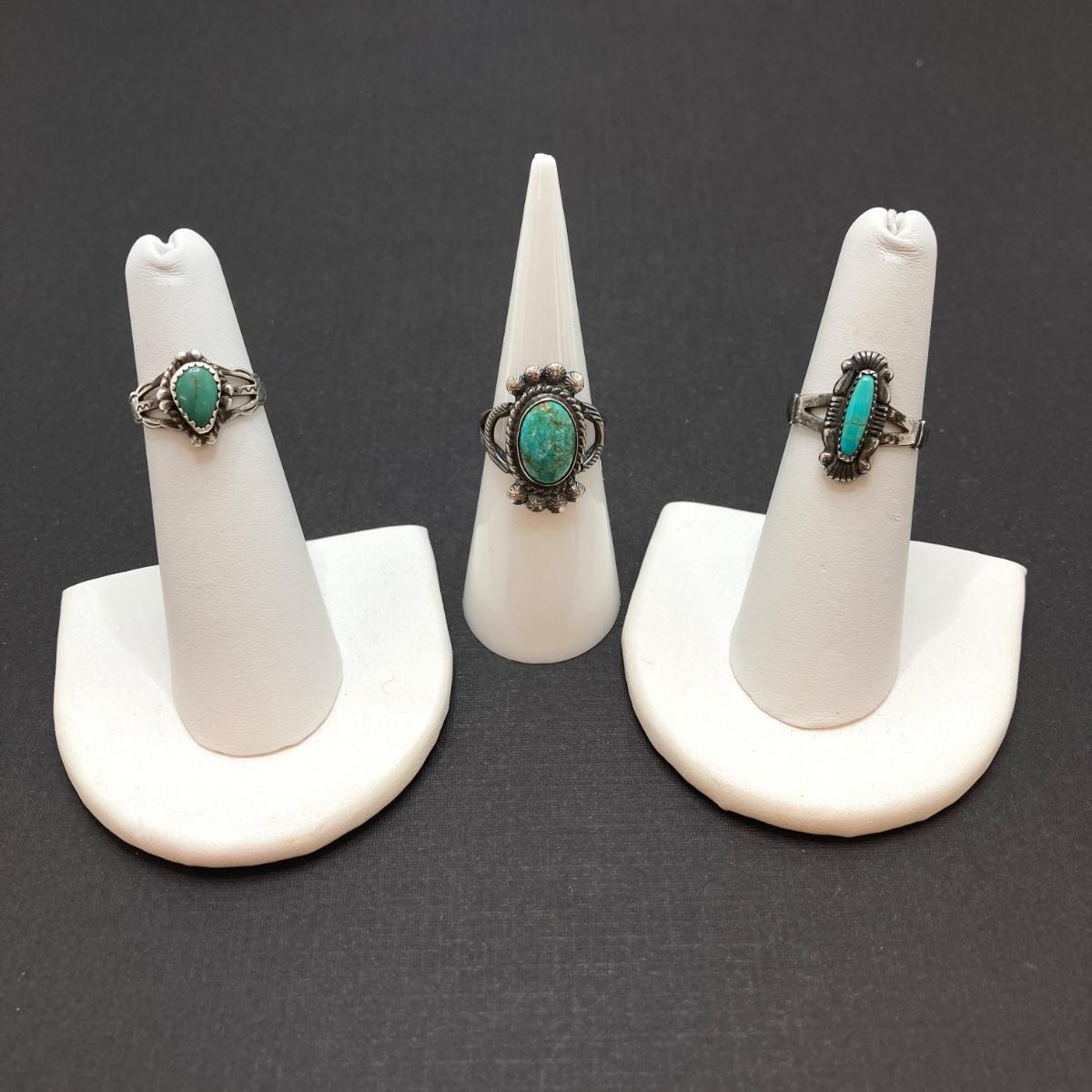 LOT 57: Three Sterling and Turquoise Rings Sizes 4, 4.5 and 6 - 9.3 gtw