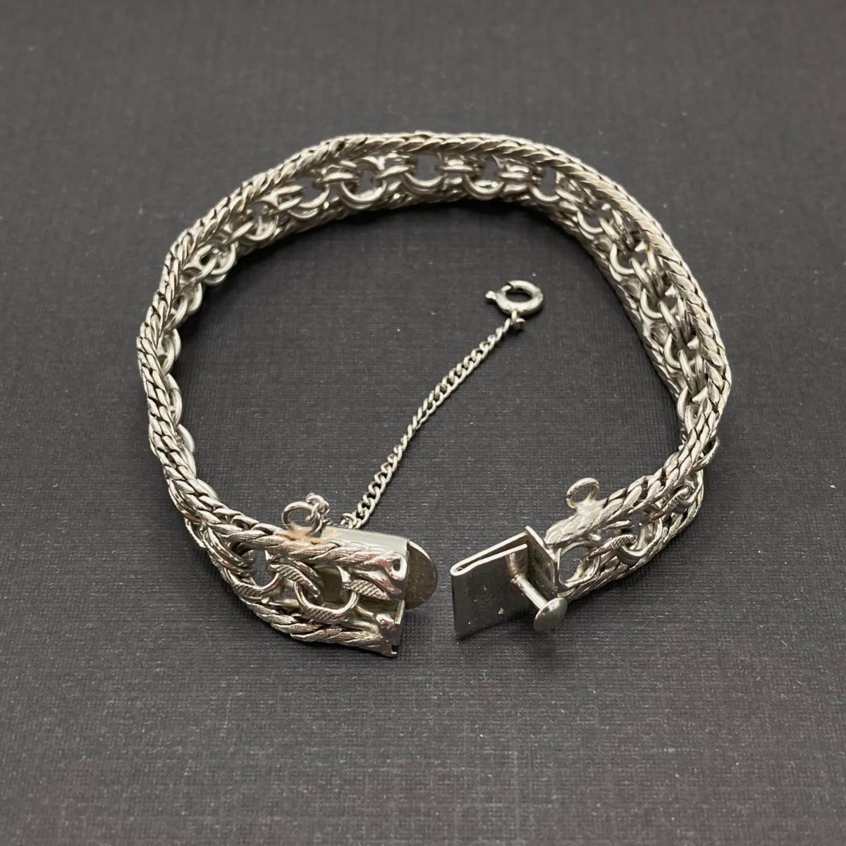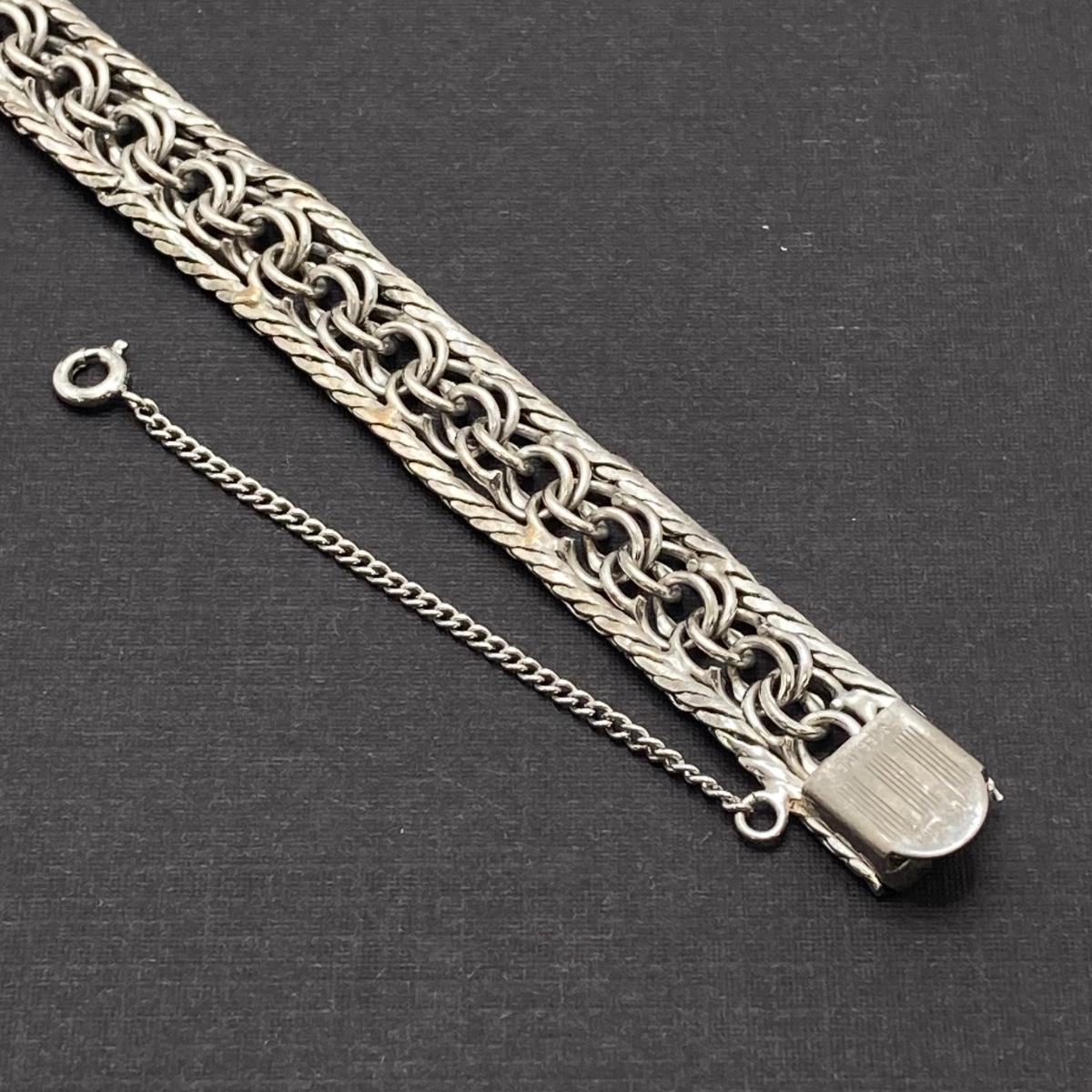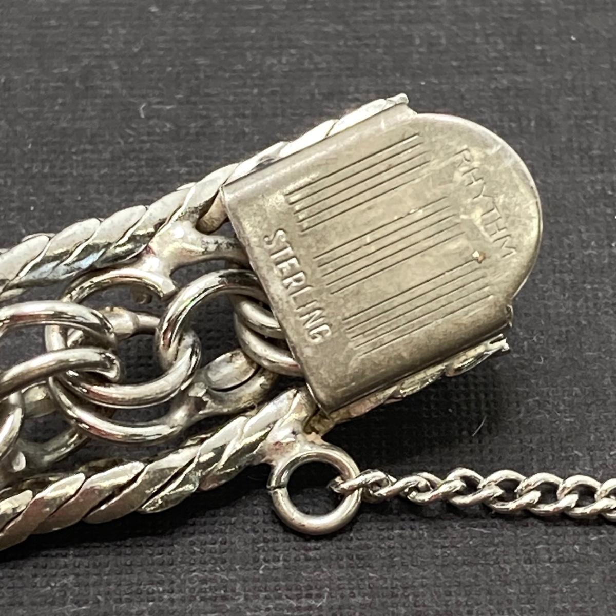 LOT 58: Vintage Rhythm Sterling Silver Double Link Figure 8 Charm Bracelet with Safety Chain 7" - 21 gtw