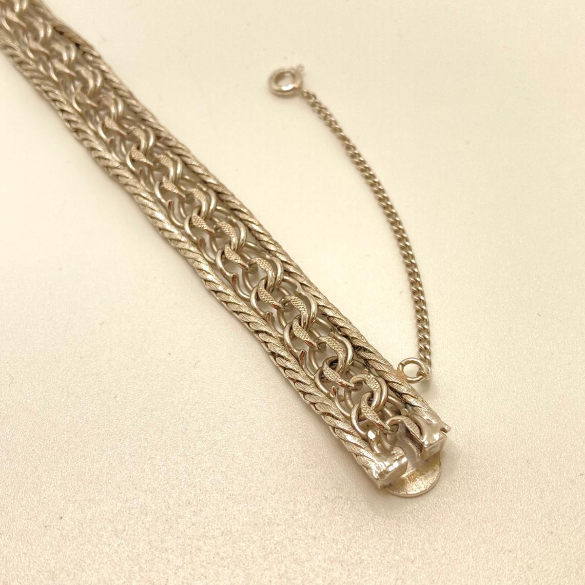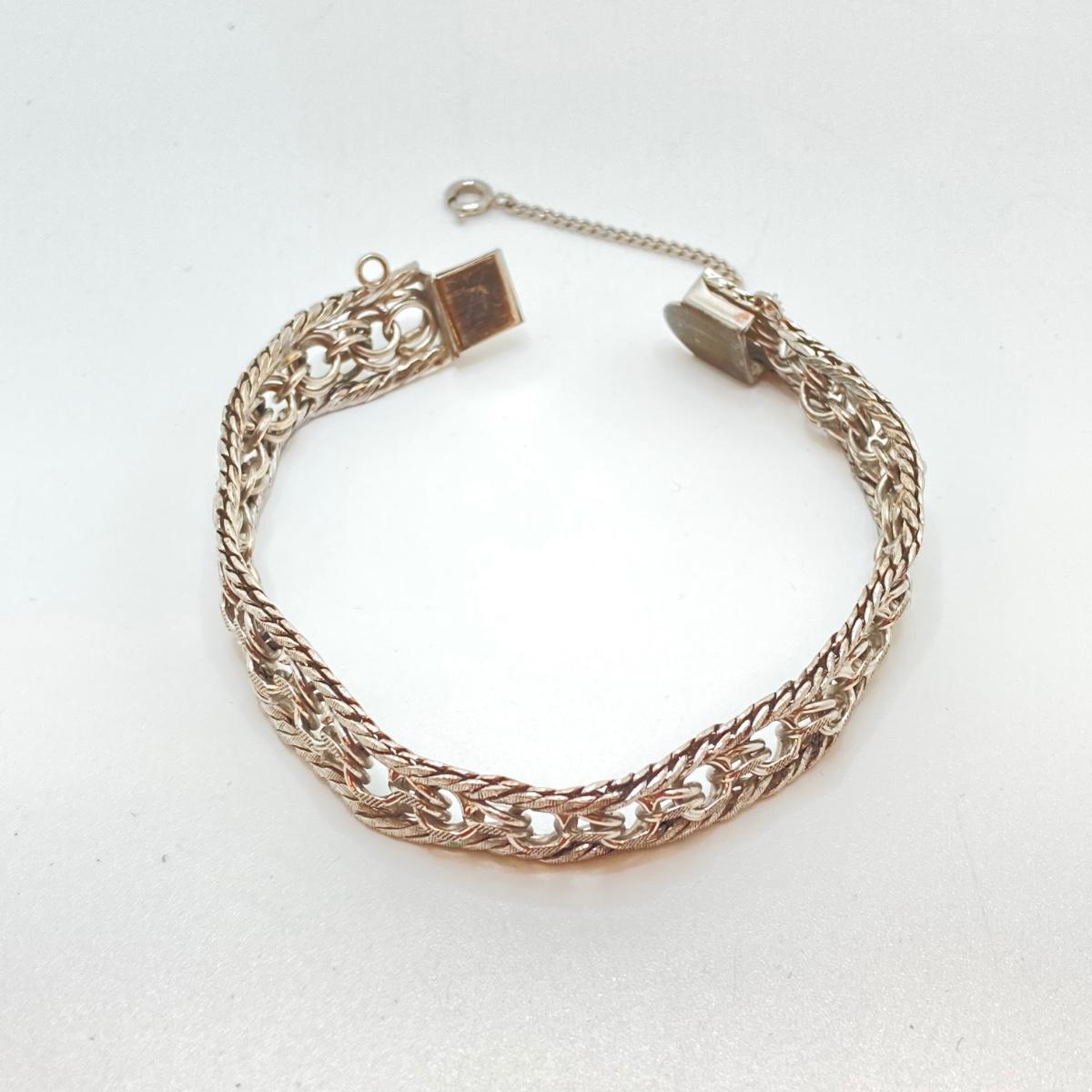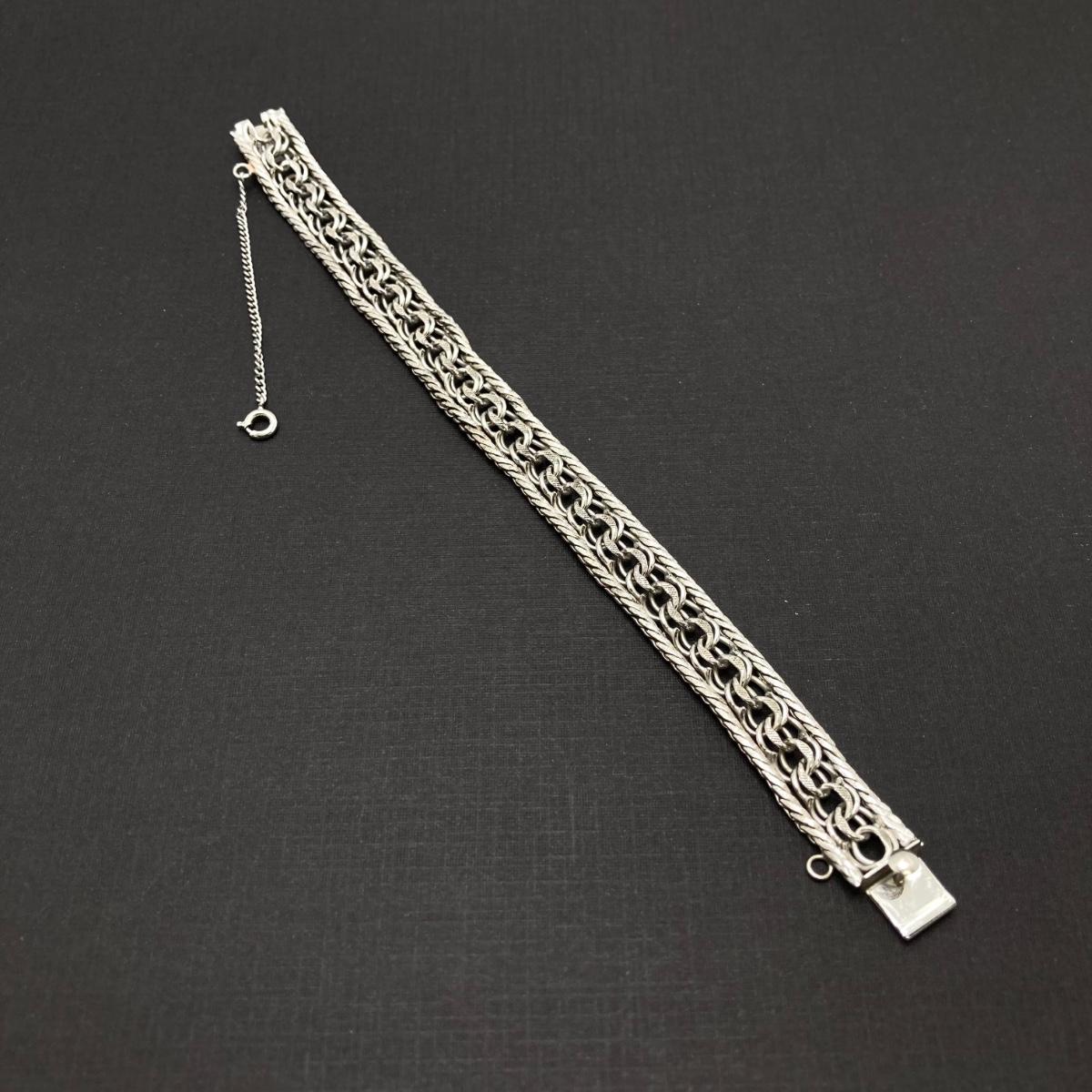 LOT 58: Vintage Rhythm Sterling Silver Double Link Figure 8 Charm Bracelet with Safety Chain 7" - 21 gtw