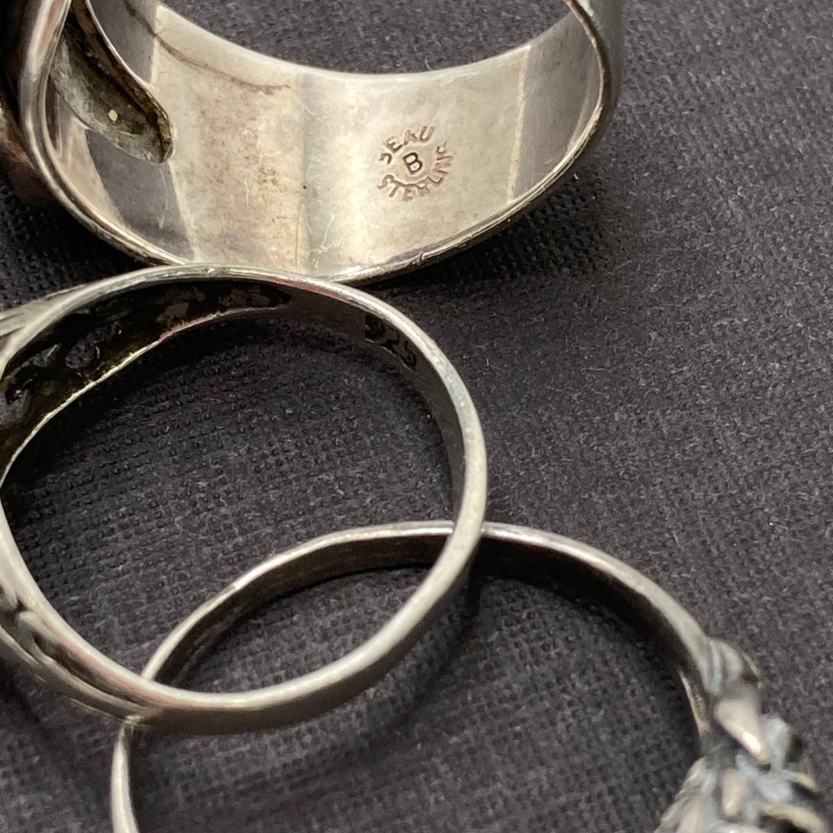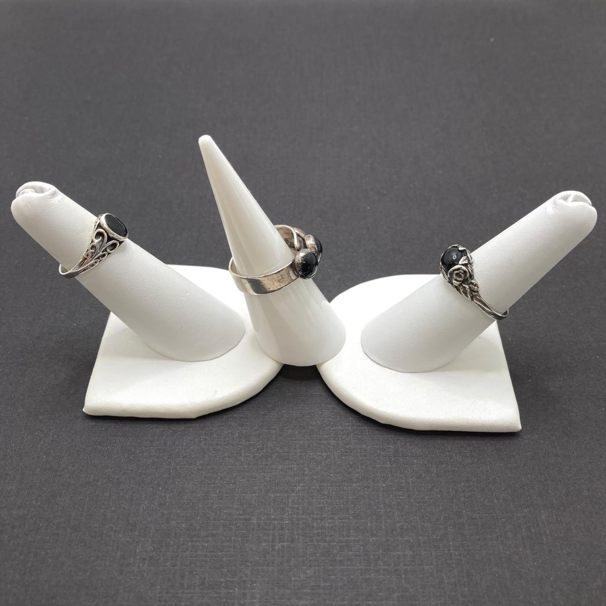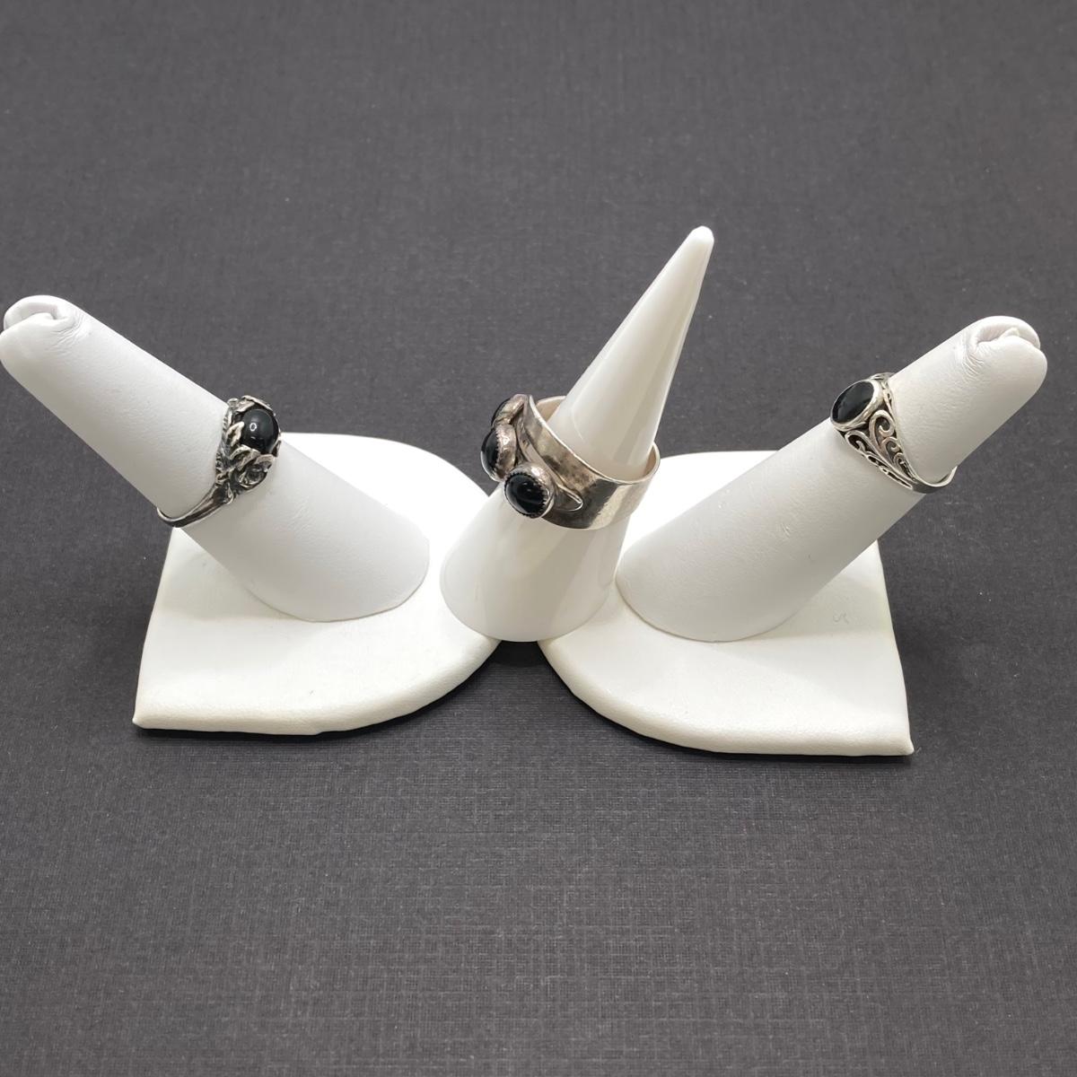 LOT 59: Three Sterling and Black Onyx Rings Sizes 4.5, 6 and 7 - 8.8 gtw