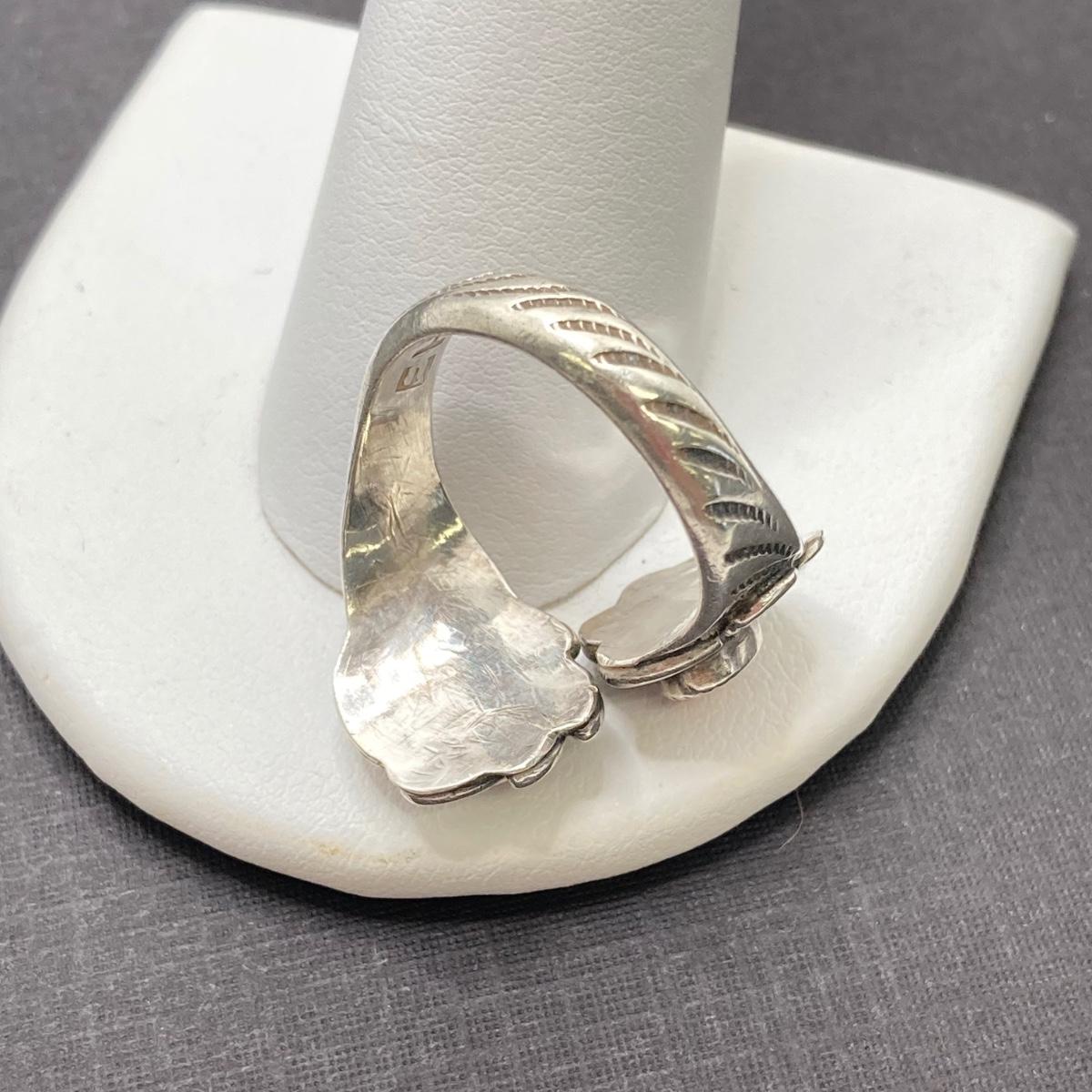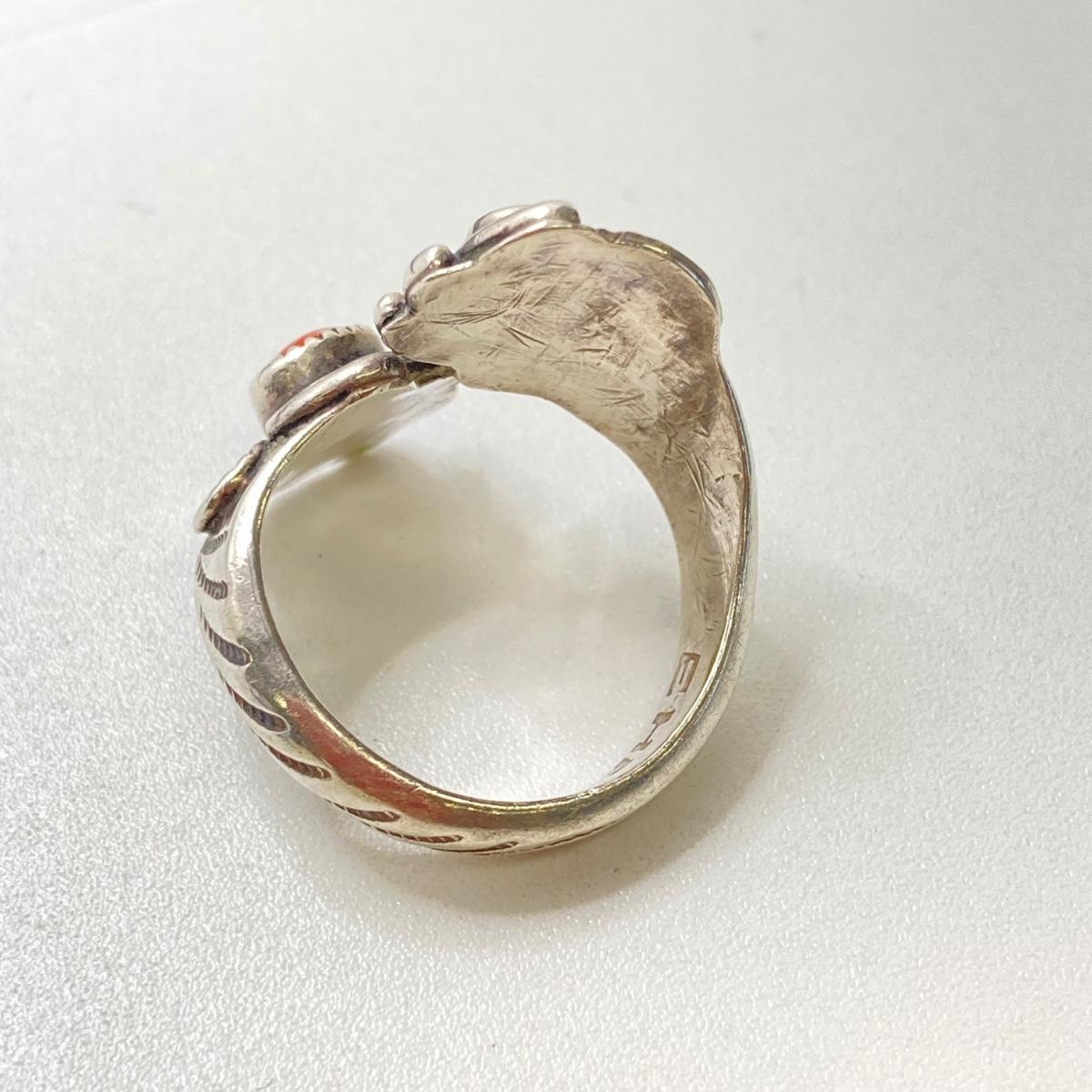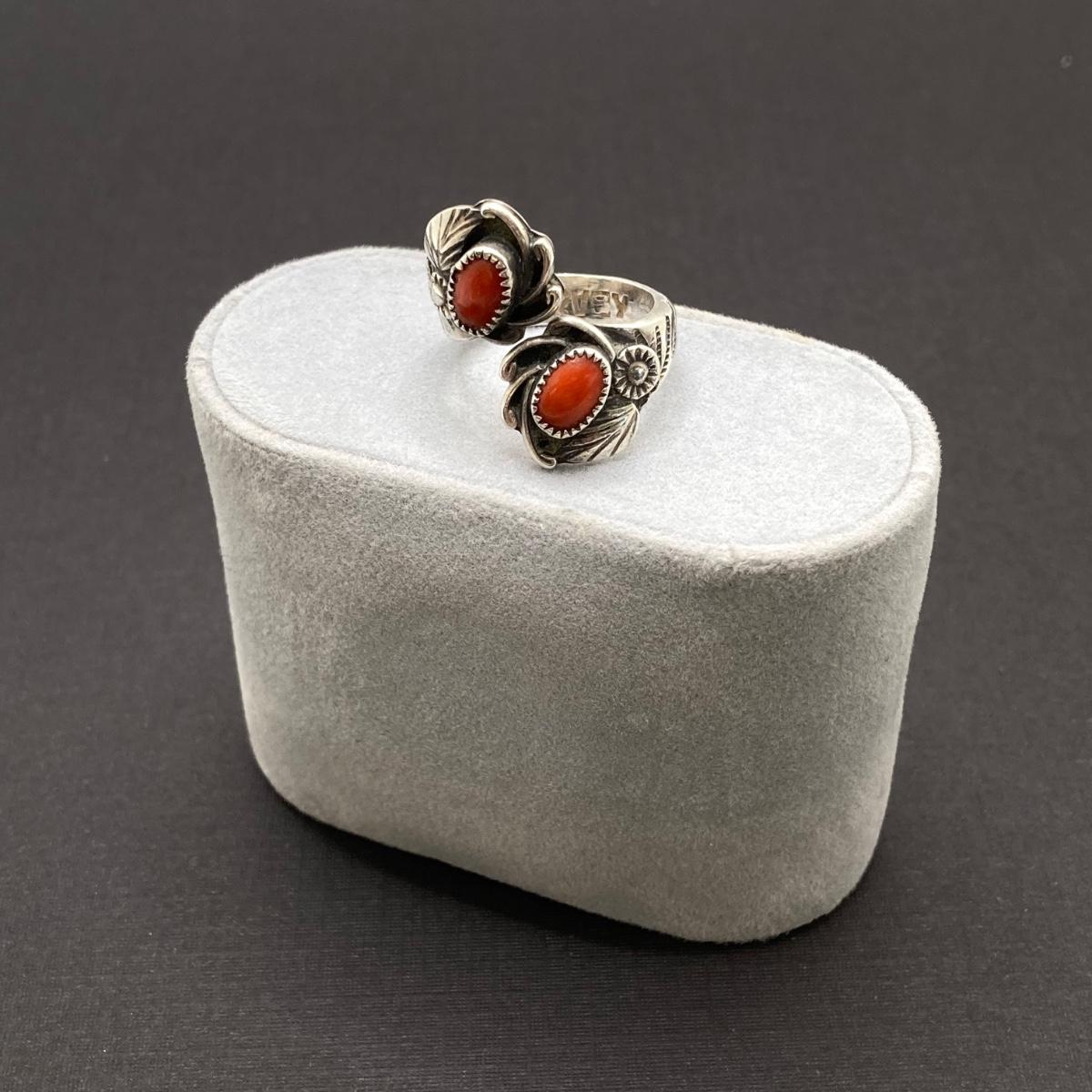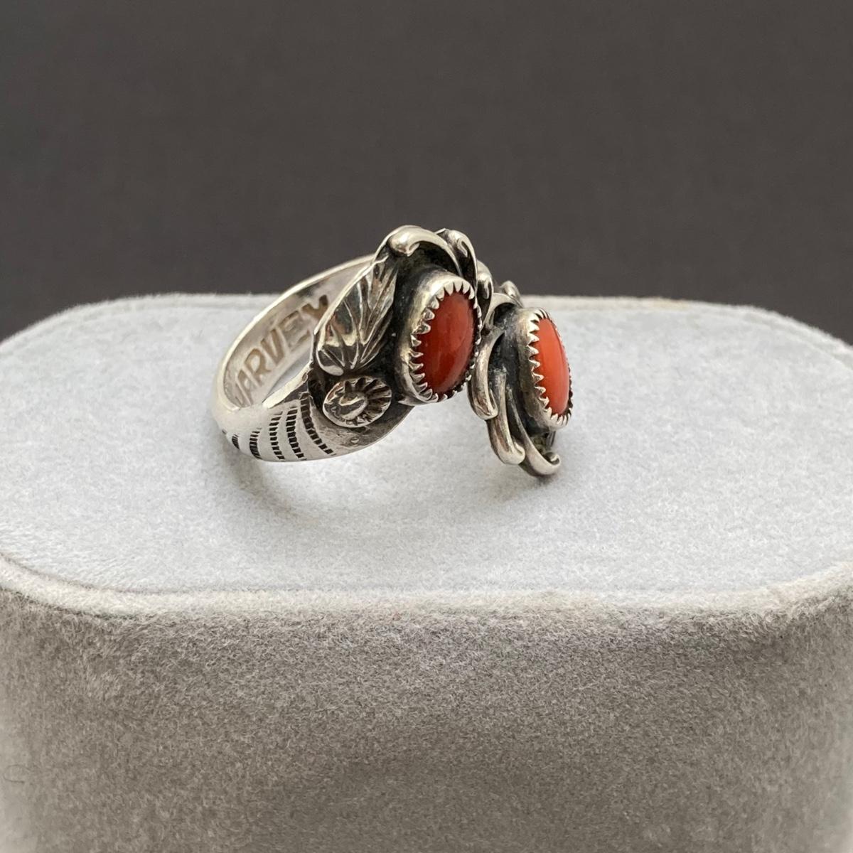 LOT 60: Vintage 1960's - 1970's E. Harvey (Emerson Harvey) Native American Bypass Silver and Coral Ring Sz 6.5 - 5.6 gtw