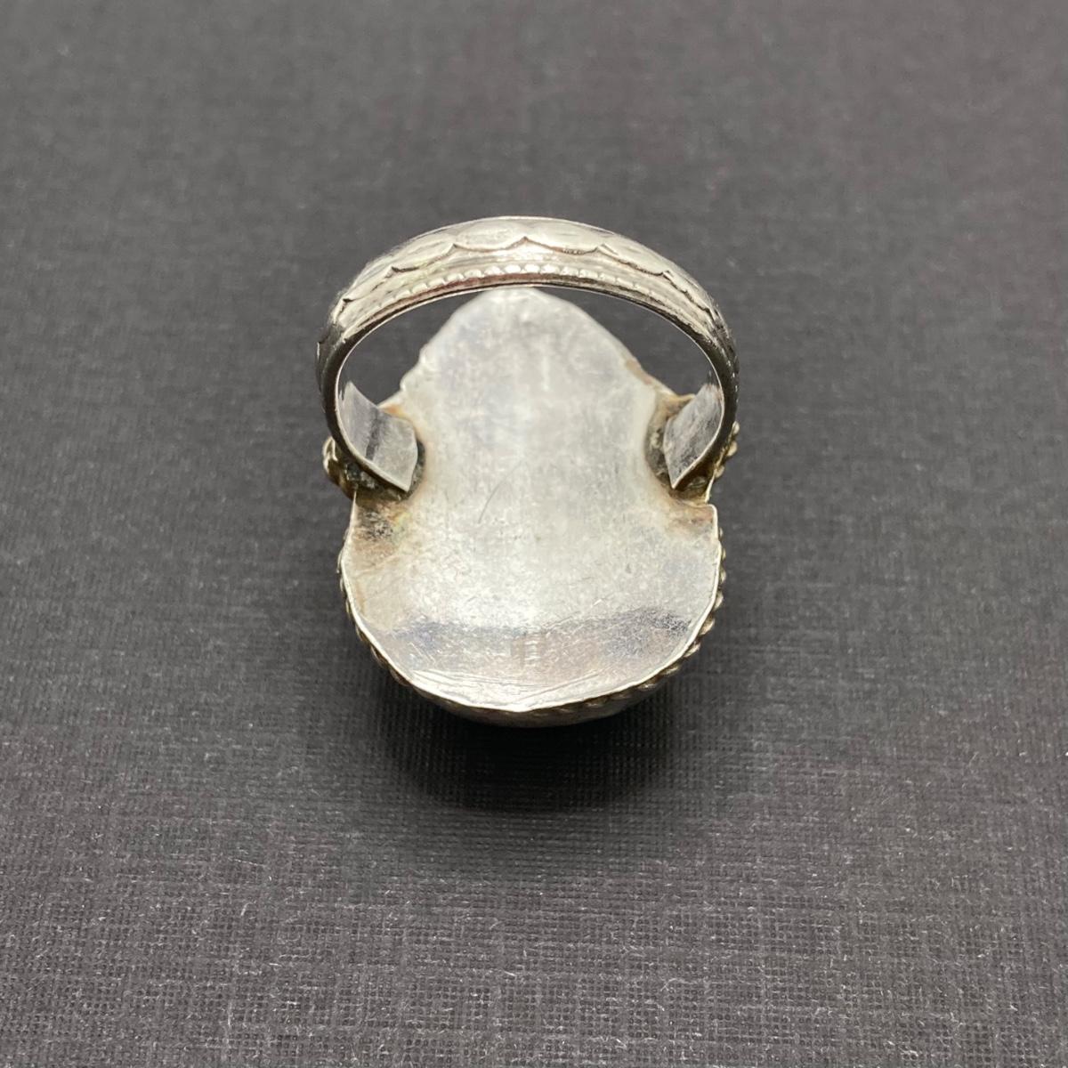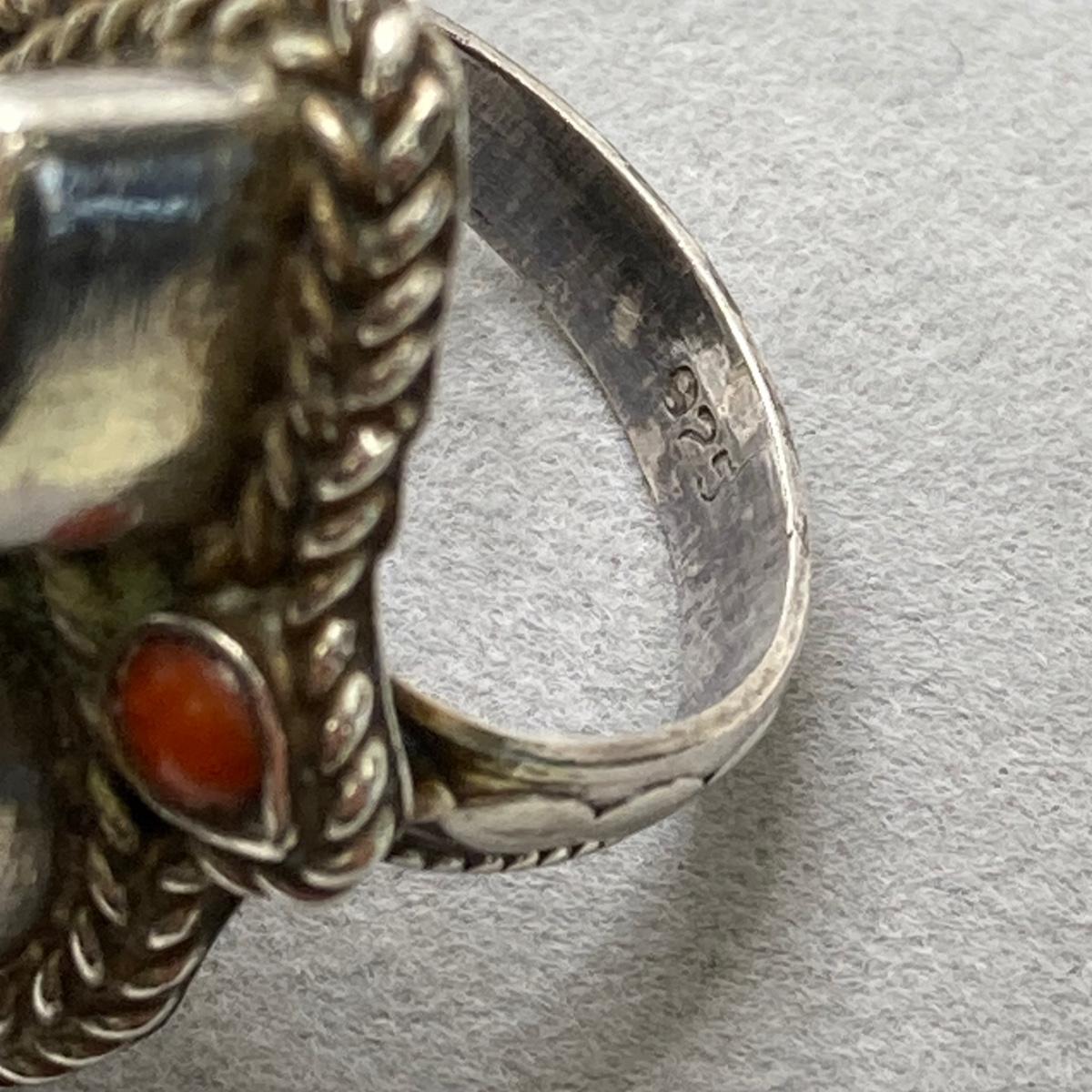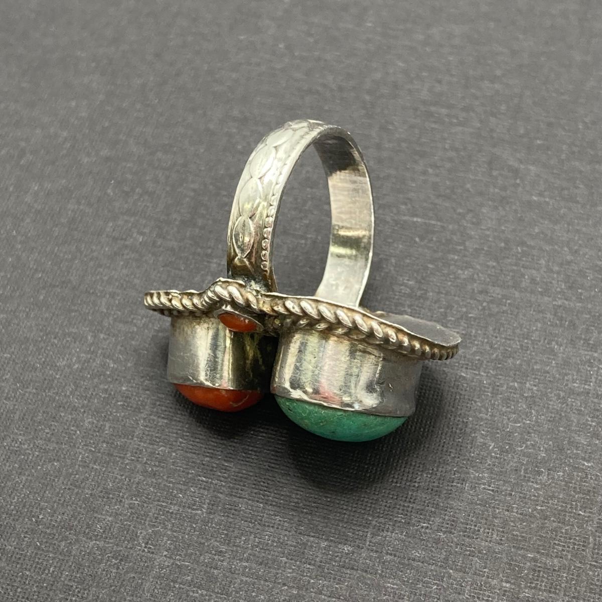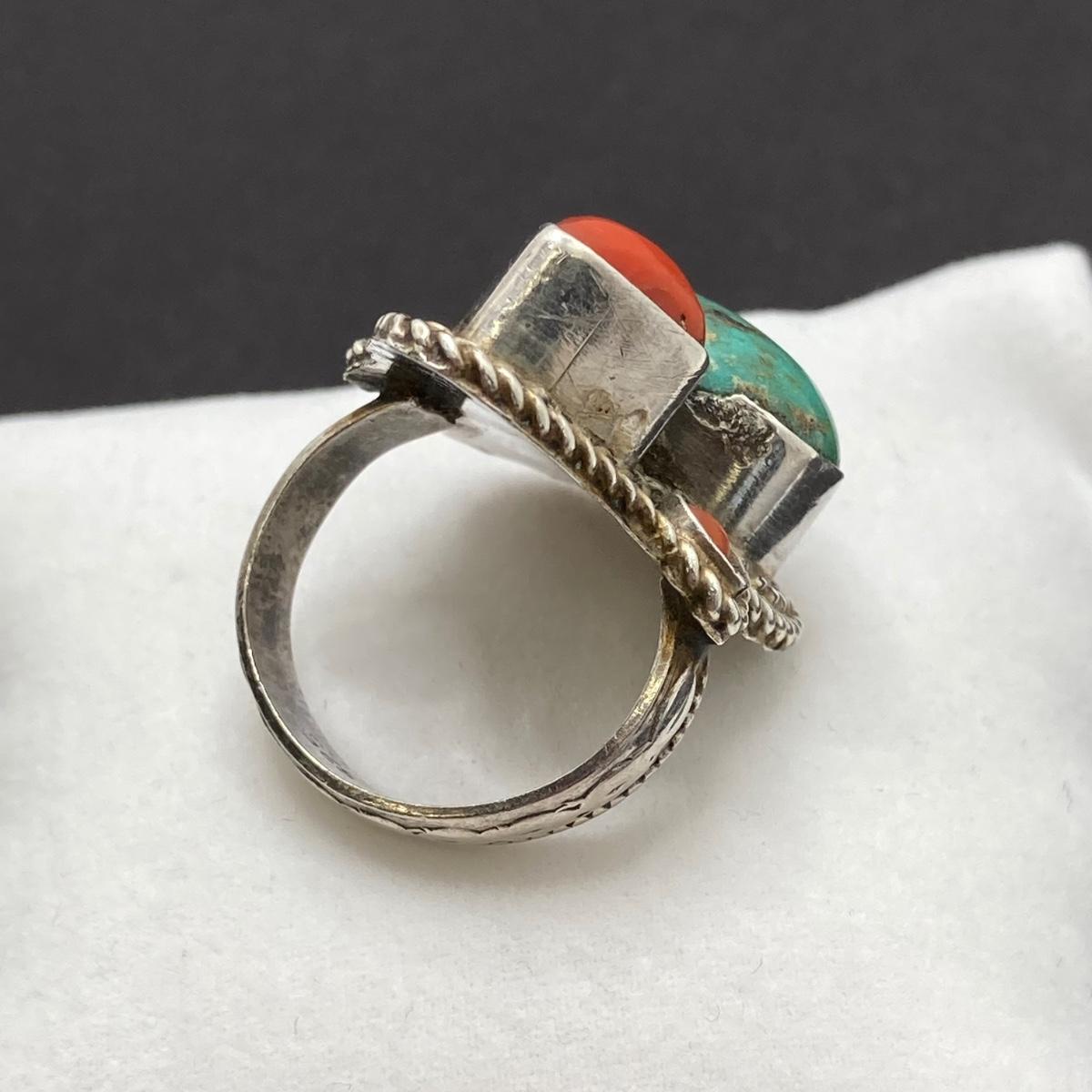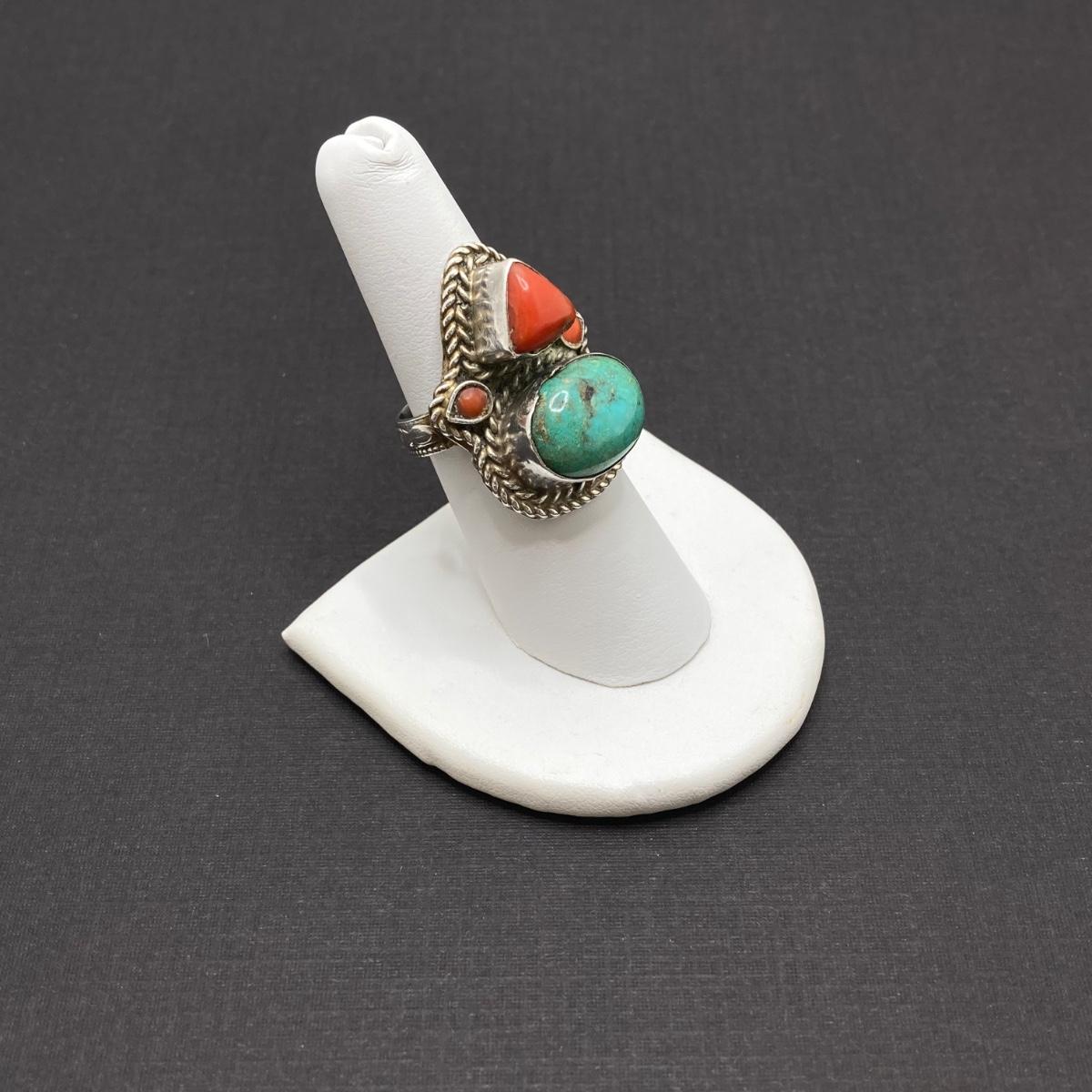LOT 64: Vintage Sterling Silver 925 Native American Turquoise and Coral Stone Ring Sz 7, 1.25" in Height and 12.3 gtw