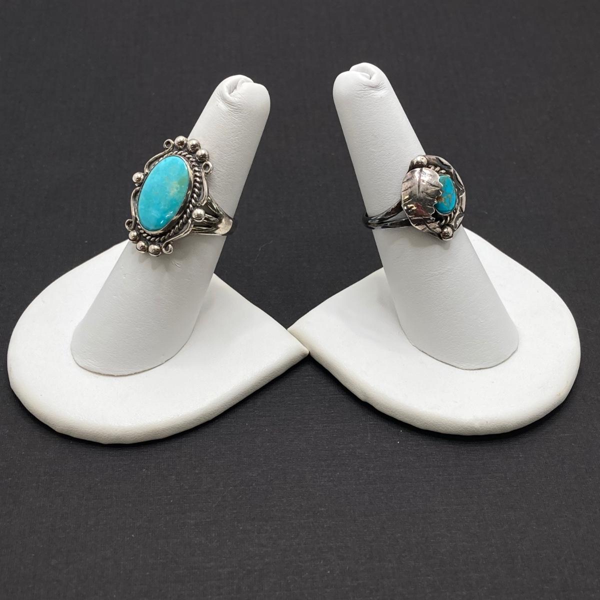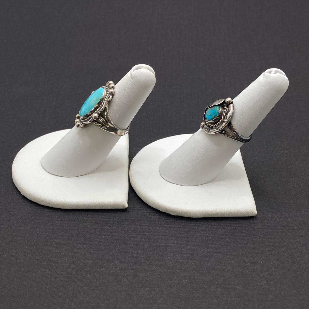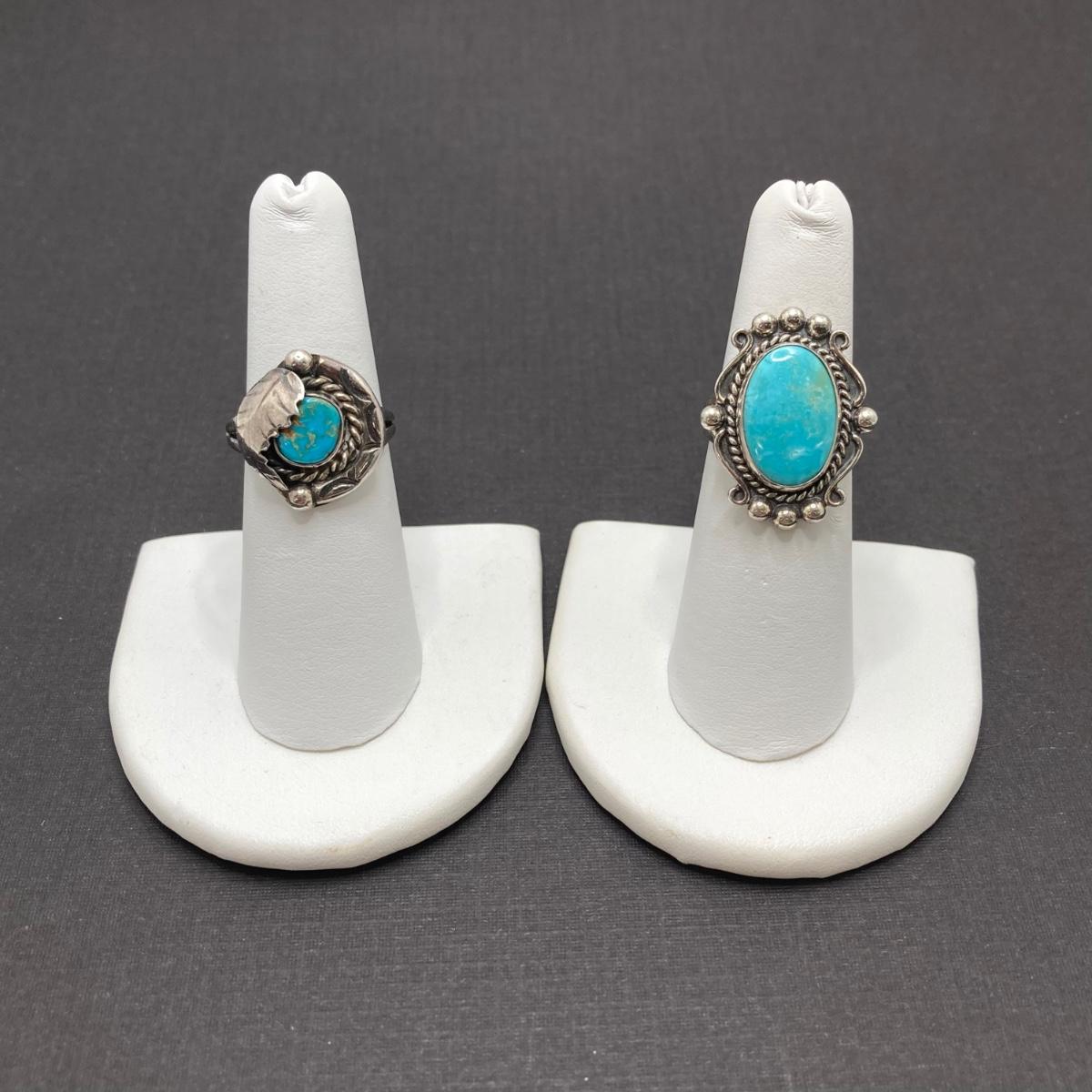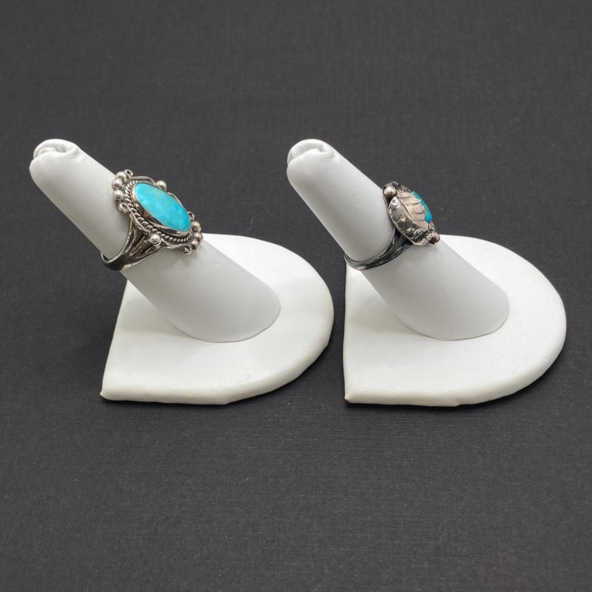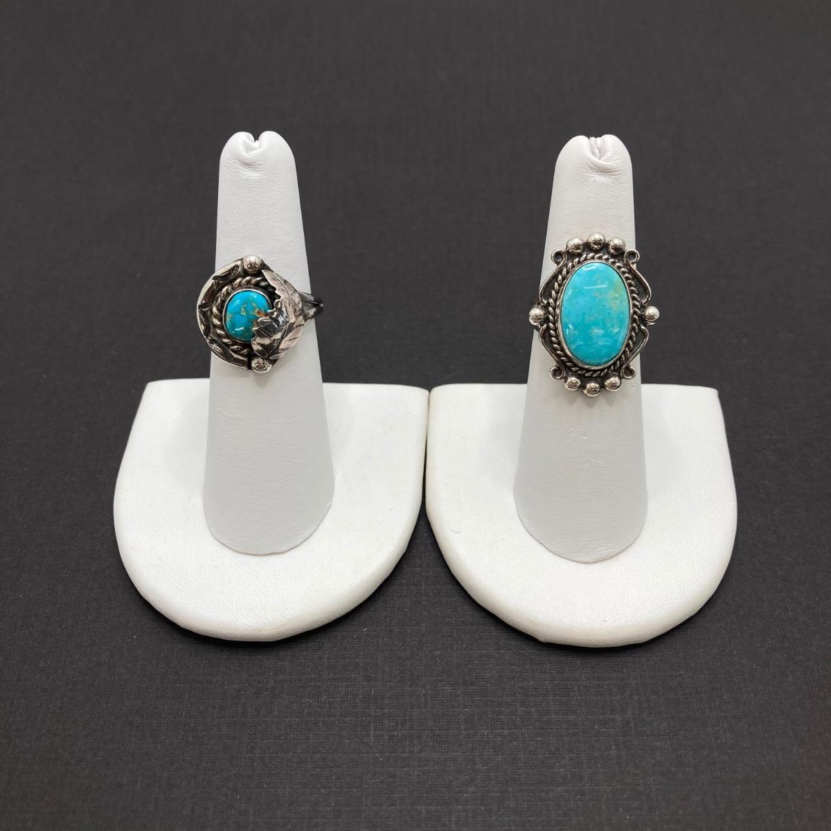 LOT 70: Pair of Sterling and Turquoise Rings Sz 6 - 11.6 gtw