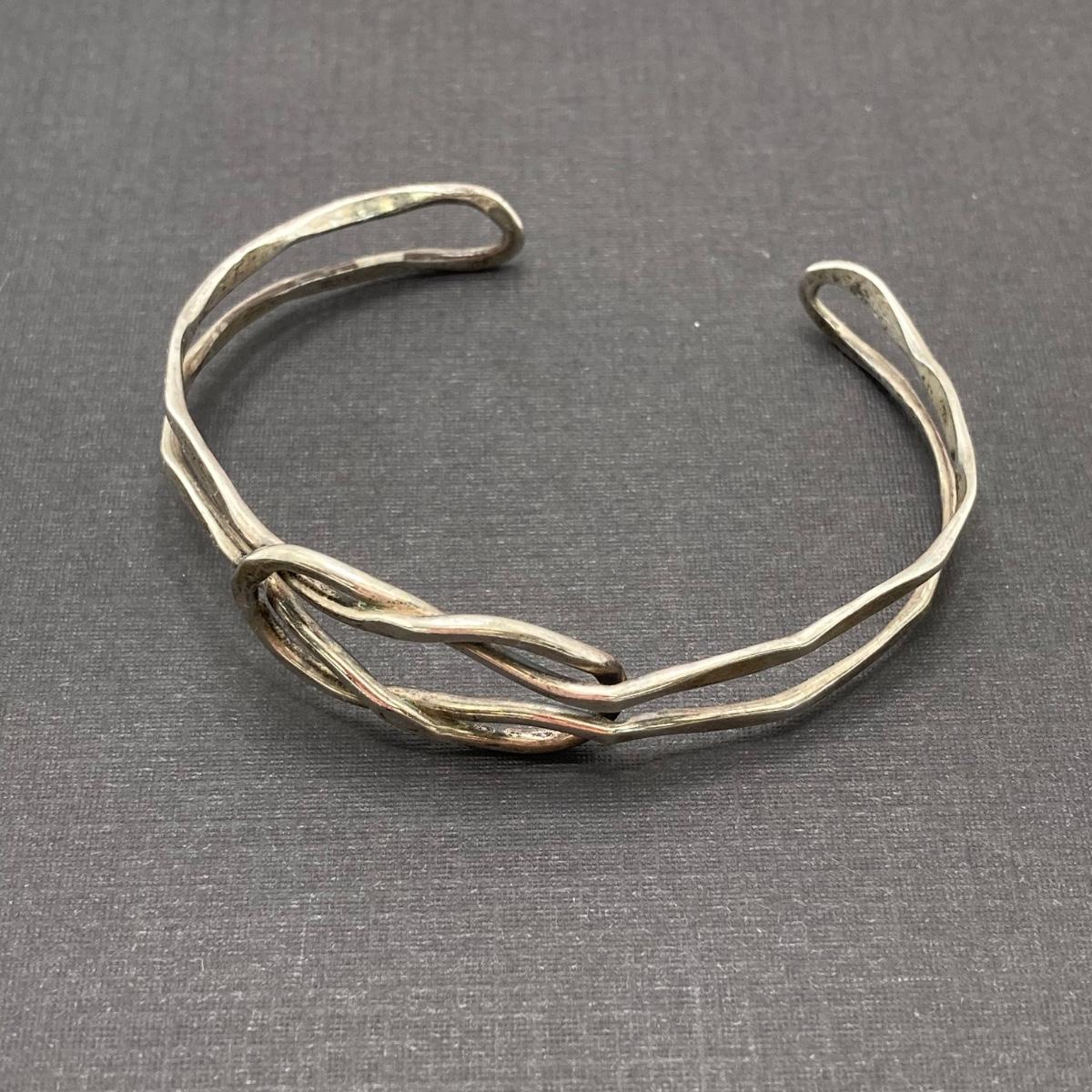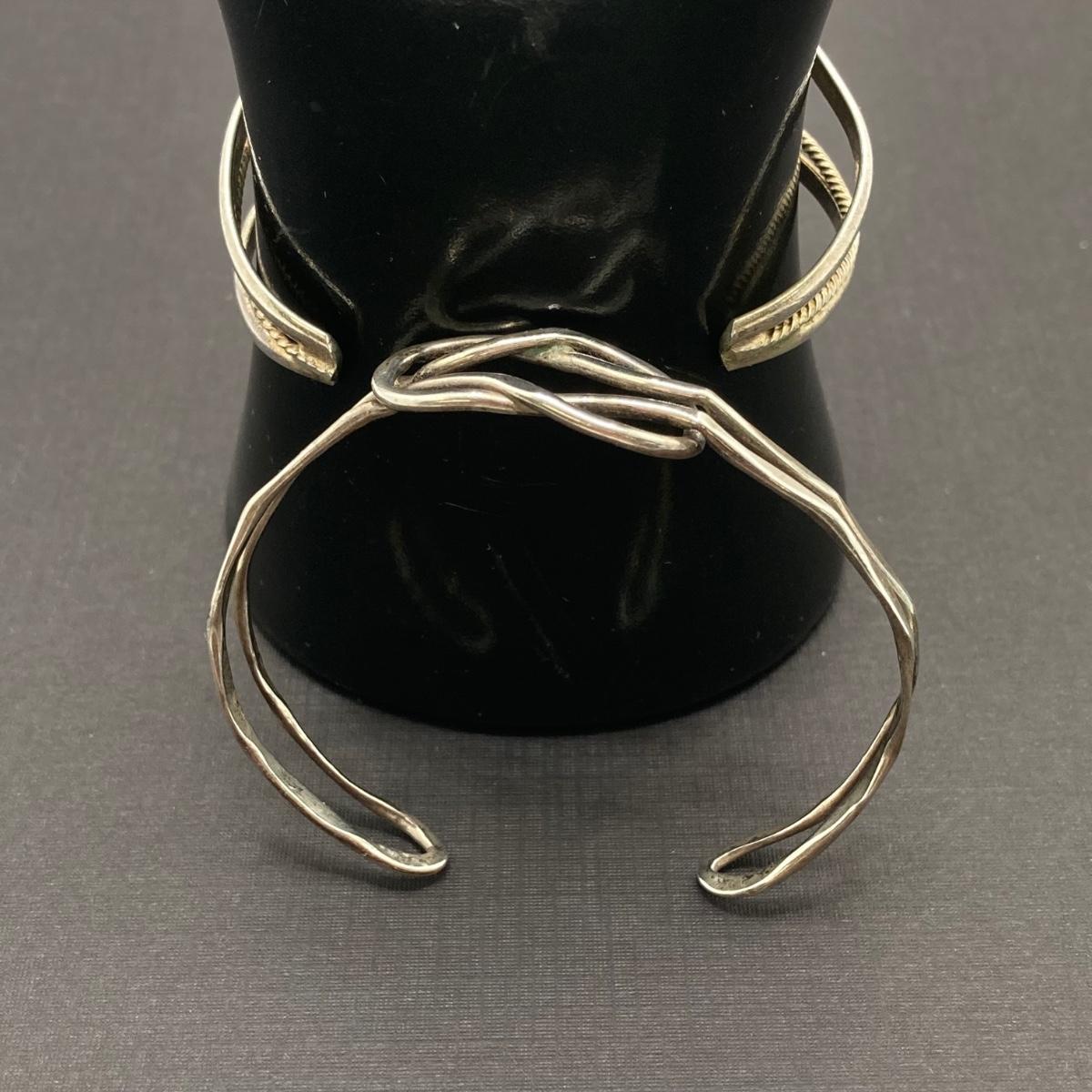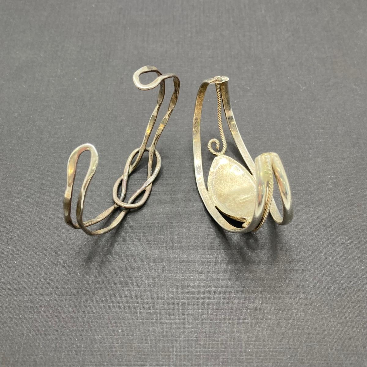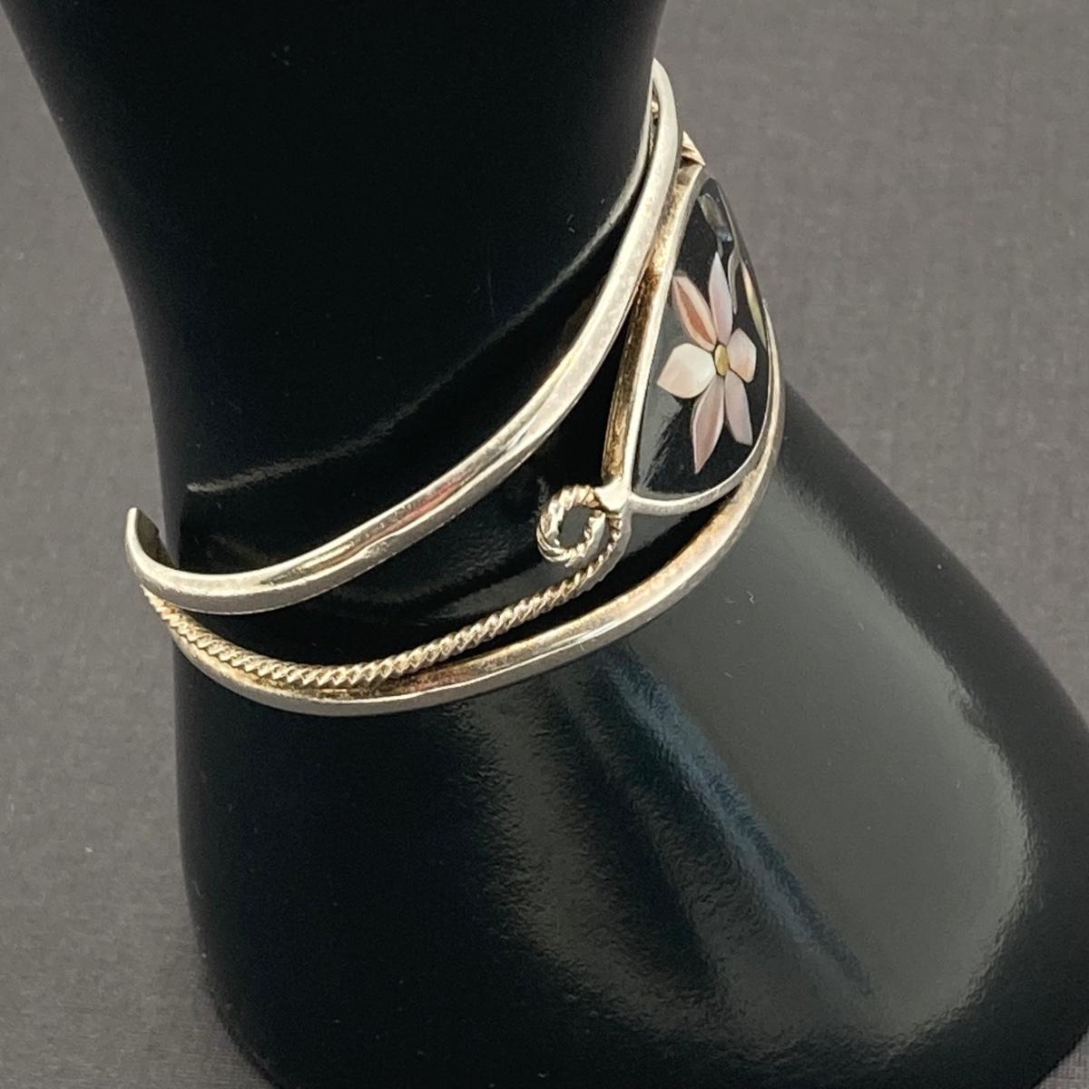 LOT 75: Vintage Cuff Bracelets - Abalone and Mother of Pearl Inlay Flower Mexico and Artisan Love Knot