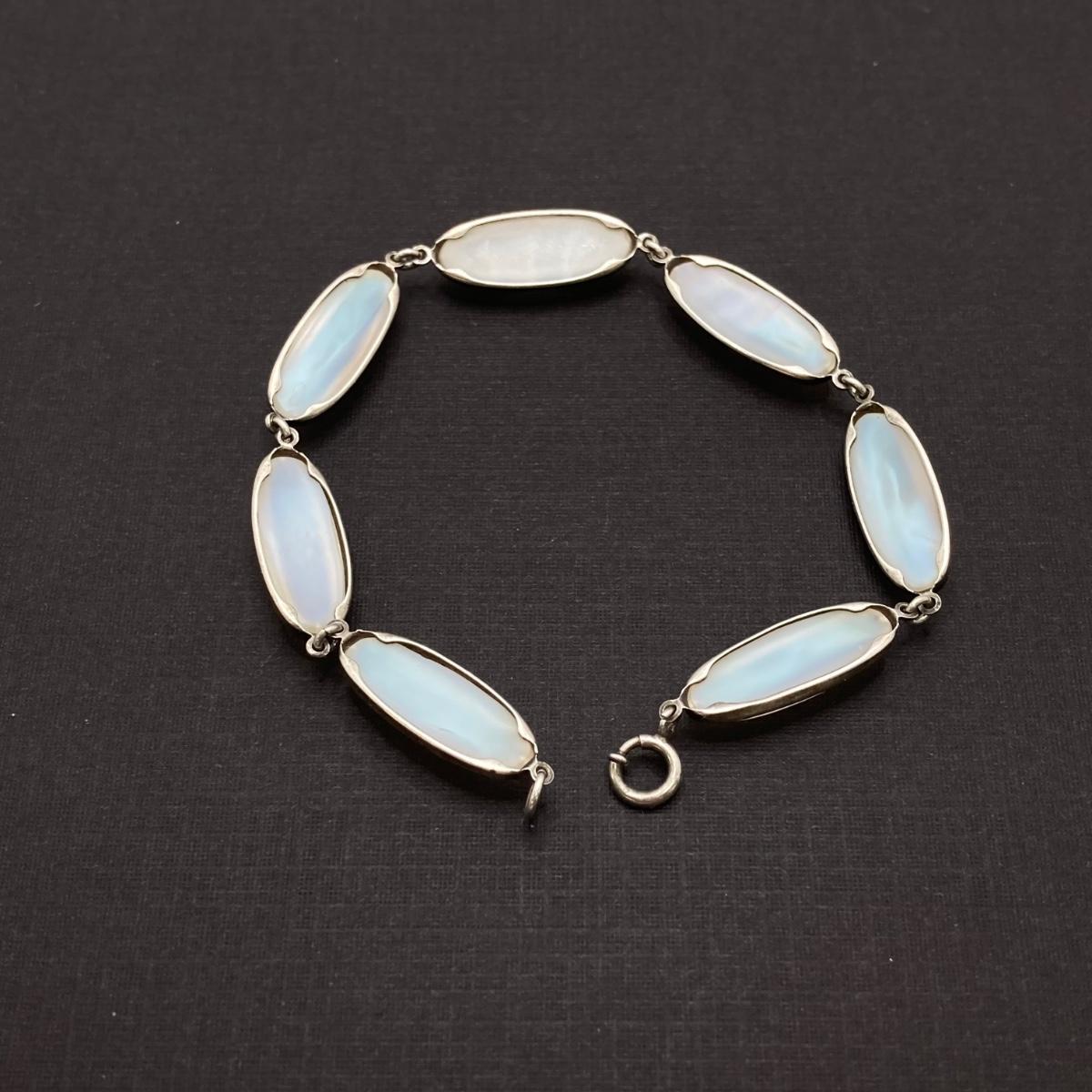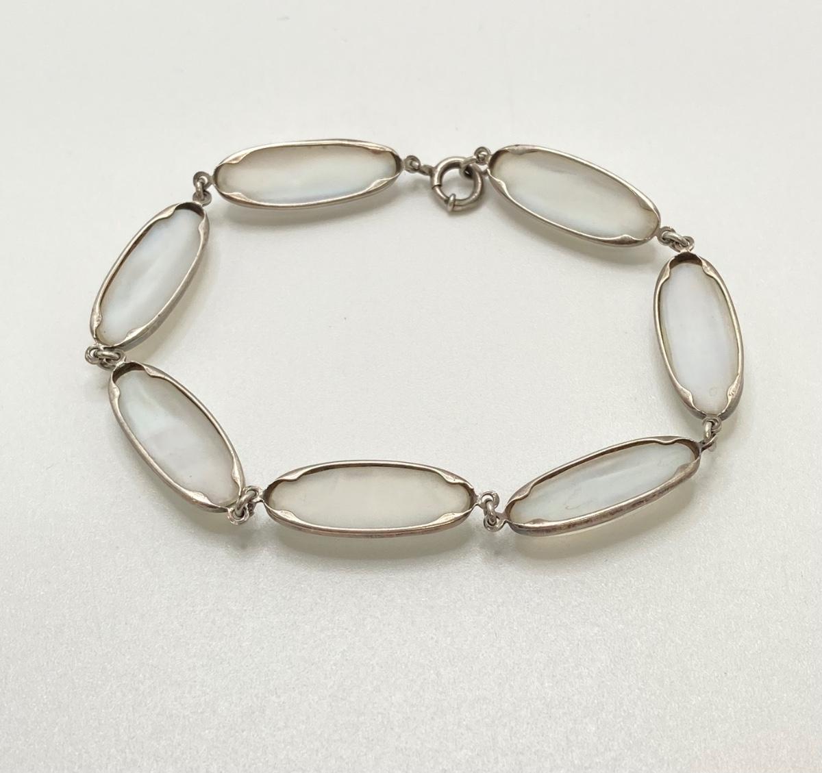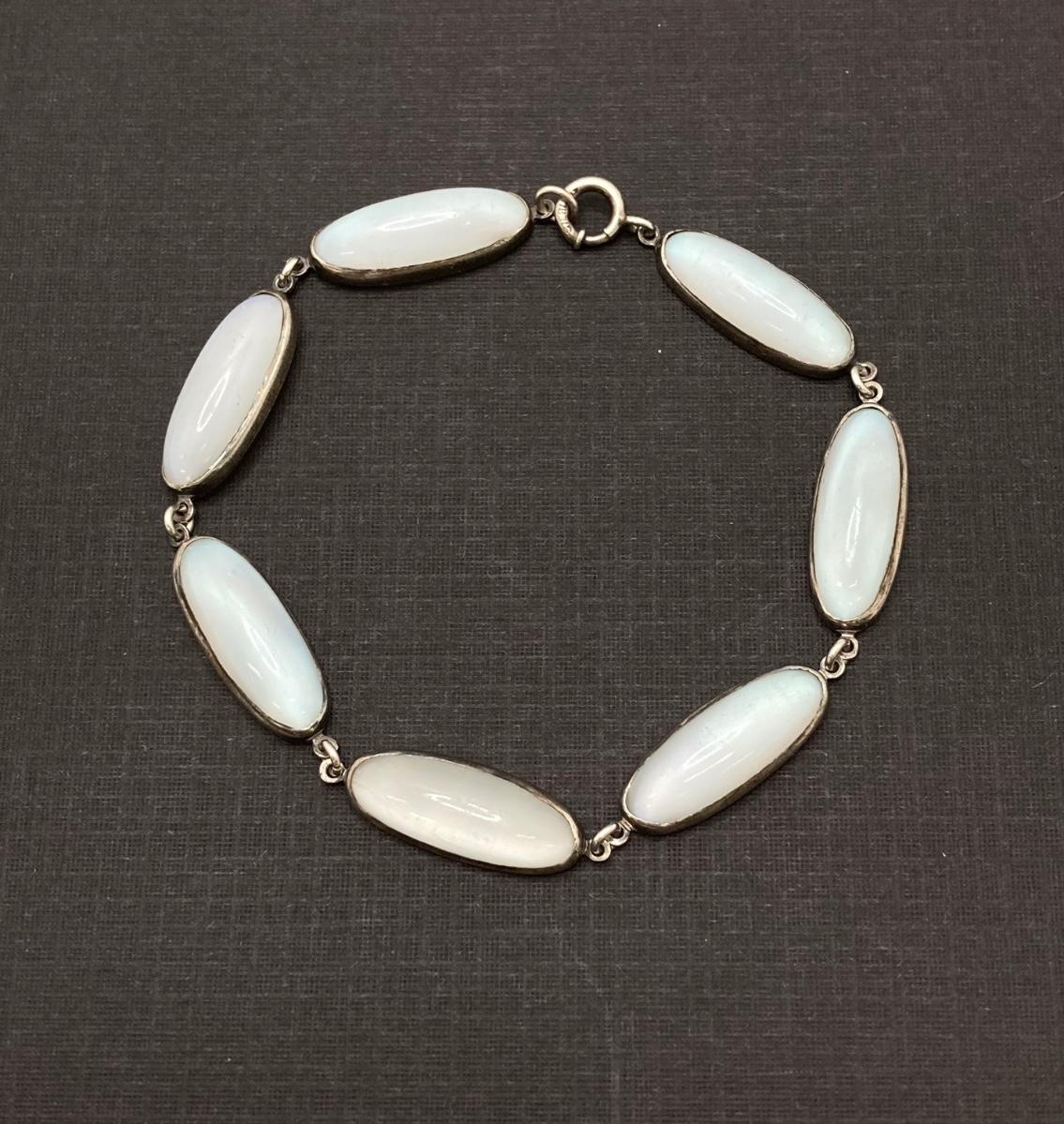 LOT 81: Vintage Sterling Silver Mother of Pearl Bracelet - 7.25"