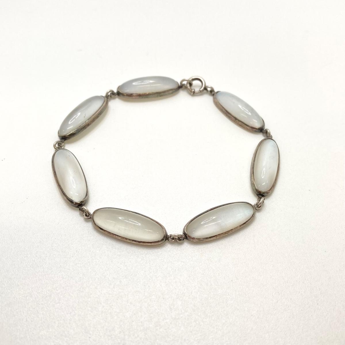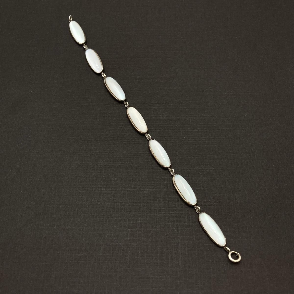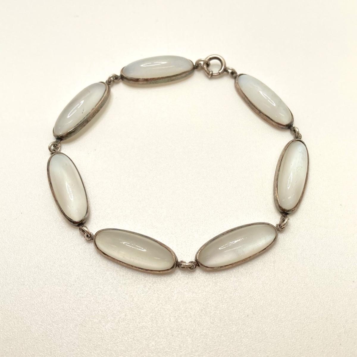 LOT 81: Vintage Sterling Silver Mother of Pearl Bracelet - 7.25"
