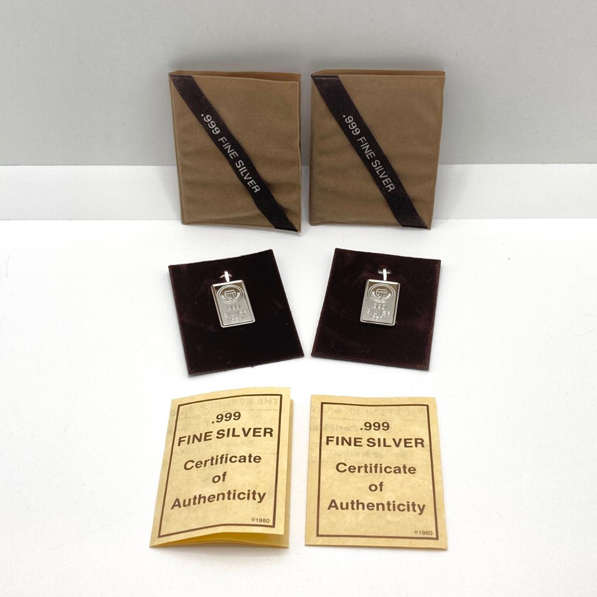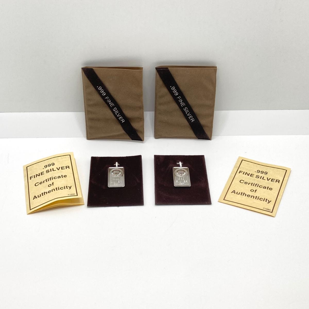 LOT 84: Pair of .999 Fine Silver Ingots / Pendants with Certificate of Authenticity 3.98 grams each