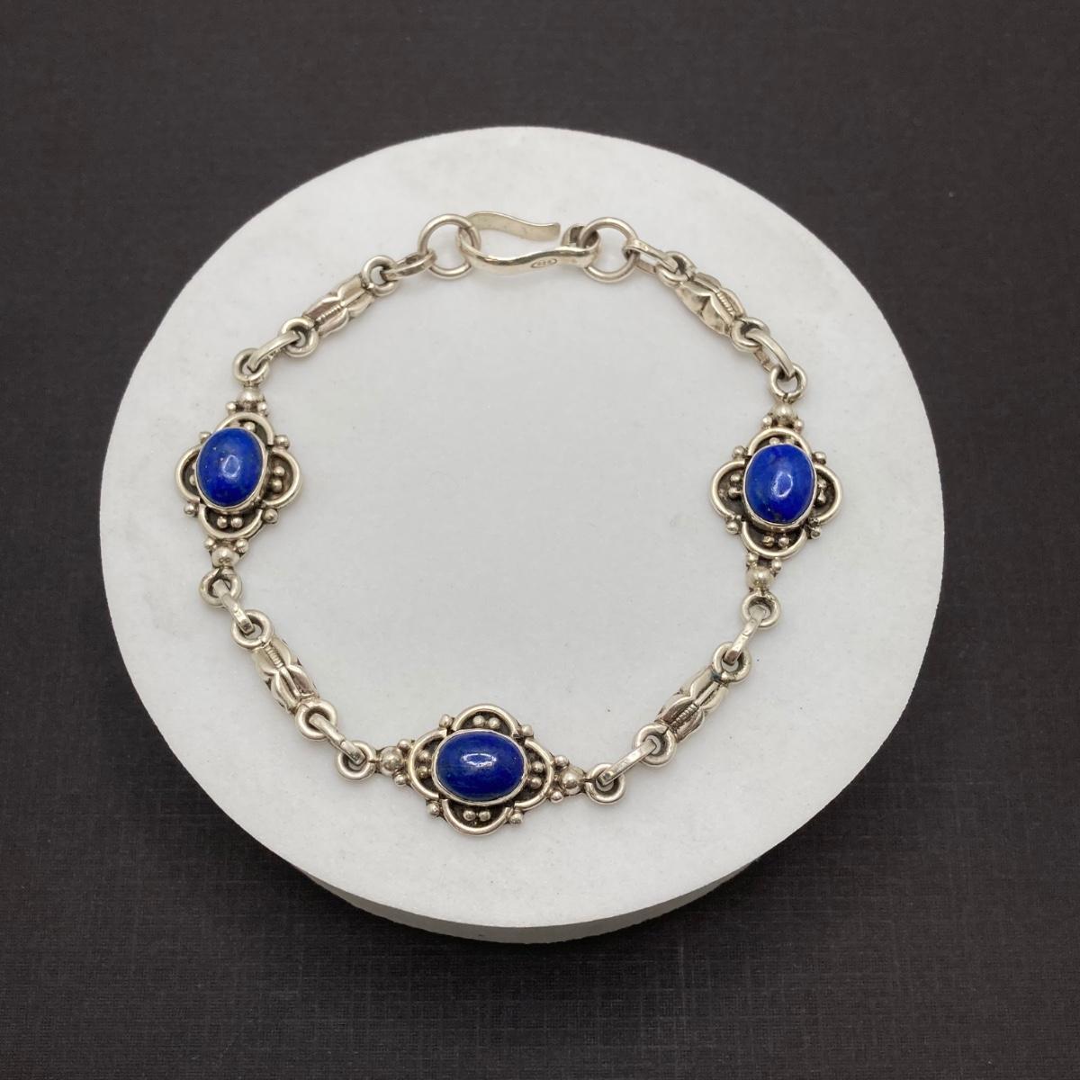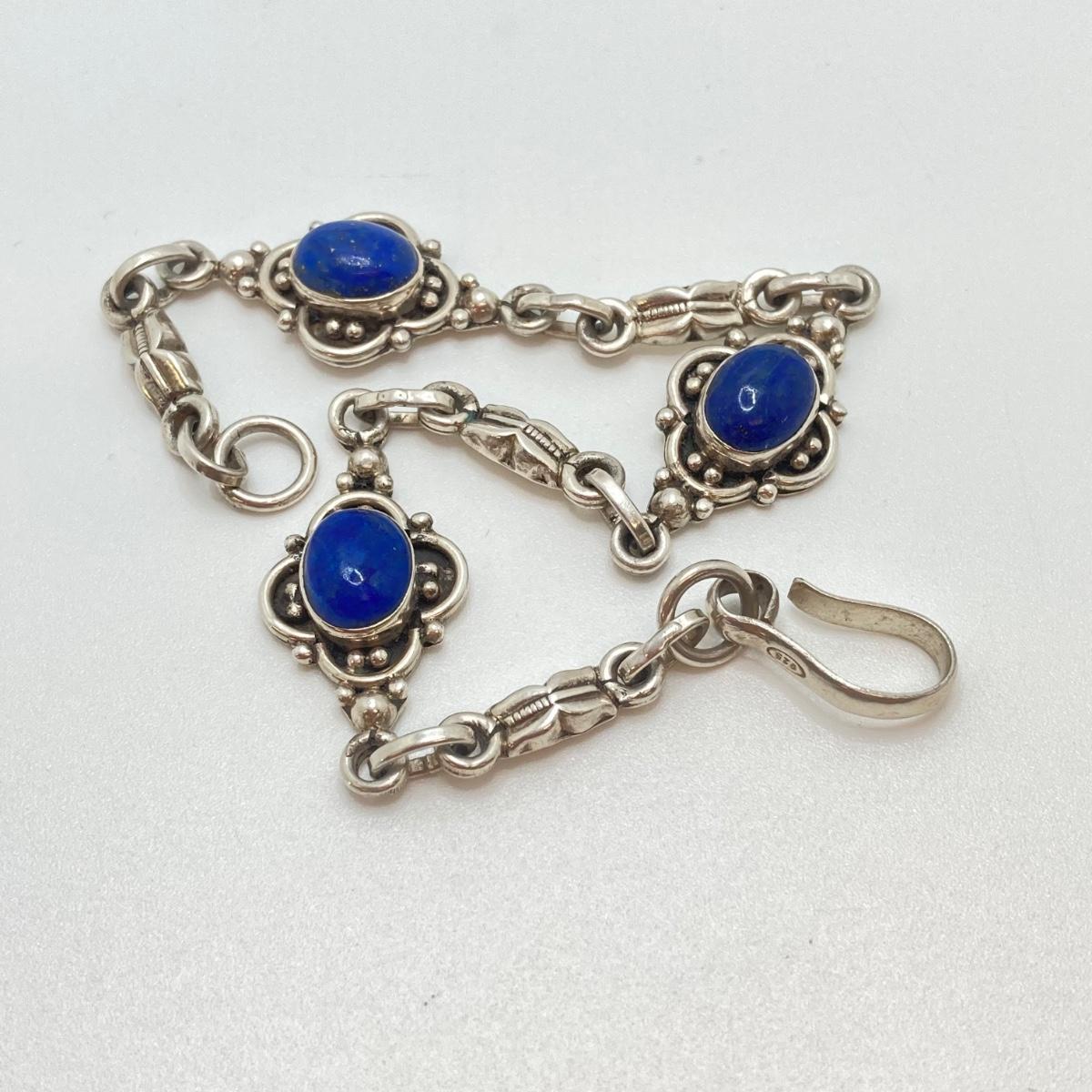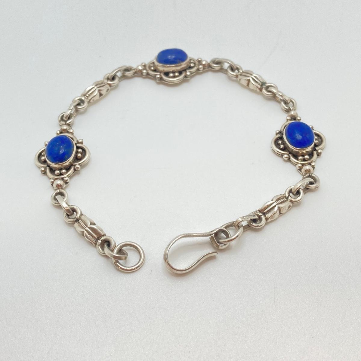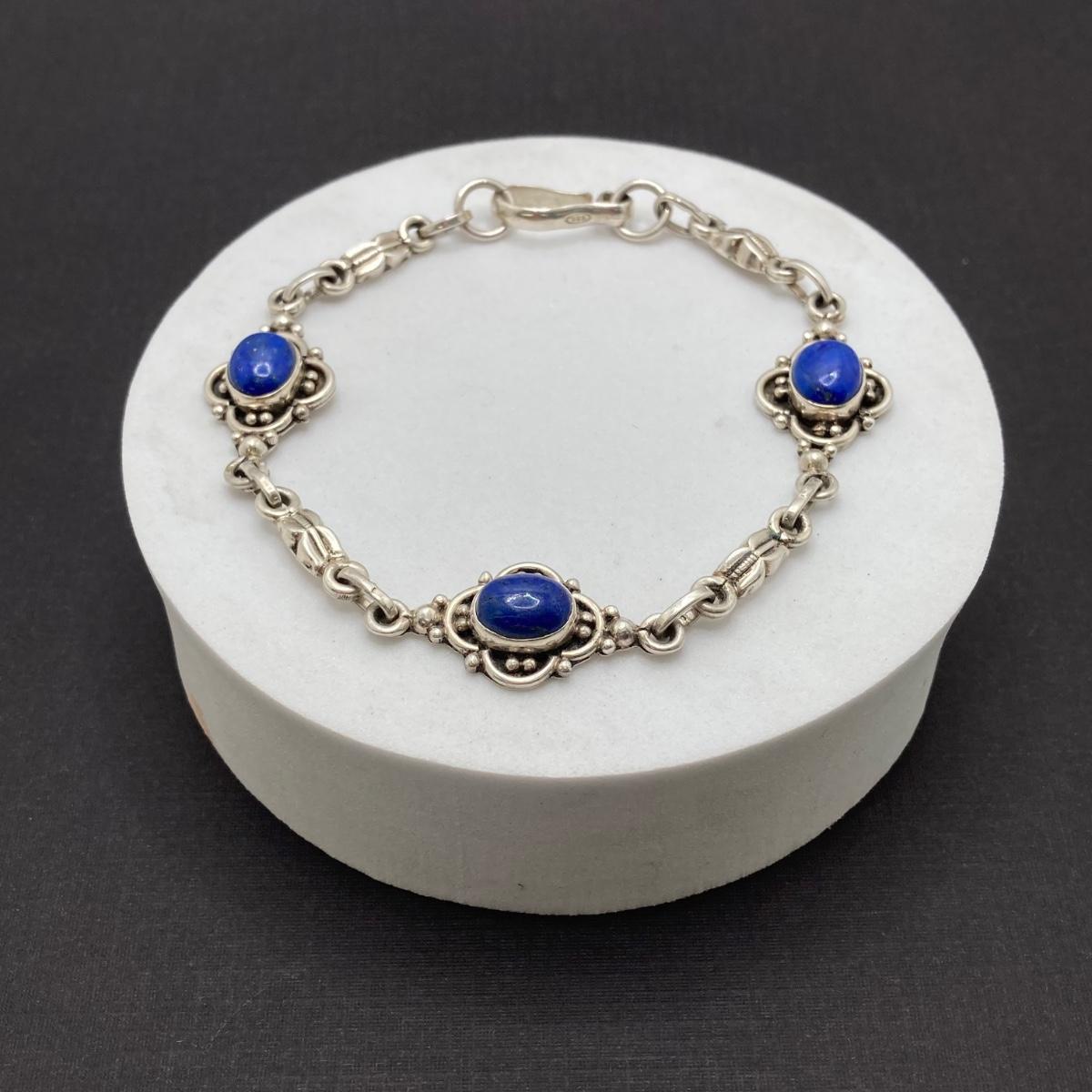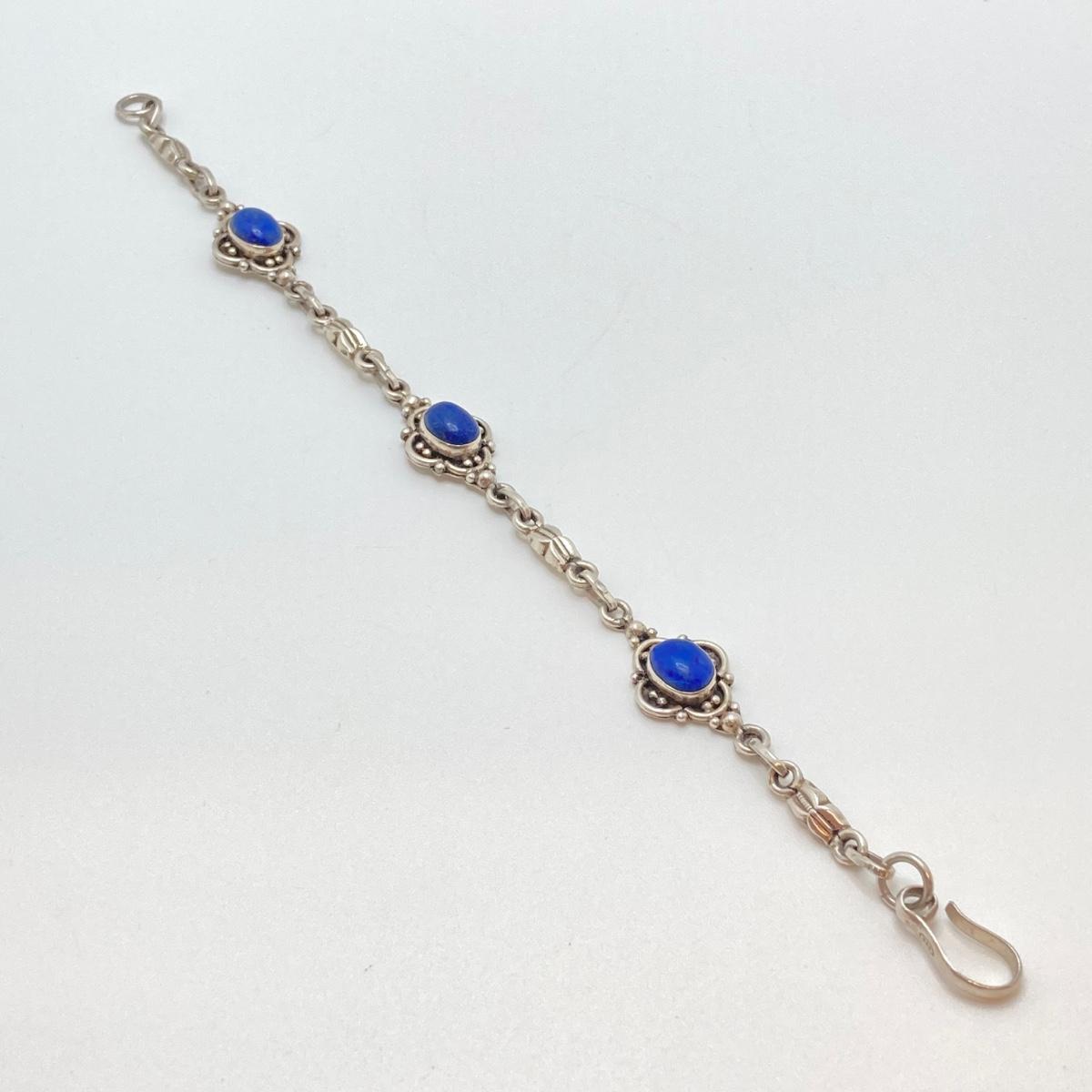 LOT 85: Vintage Sterling Silver and Blue Lapis Gemstone Bracelet 8" - 16.9 gtw