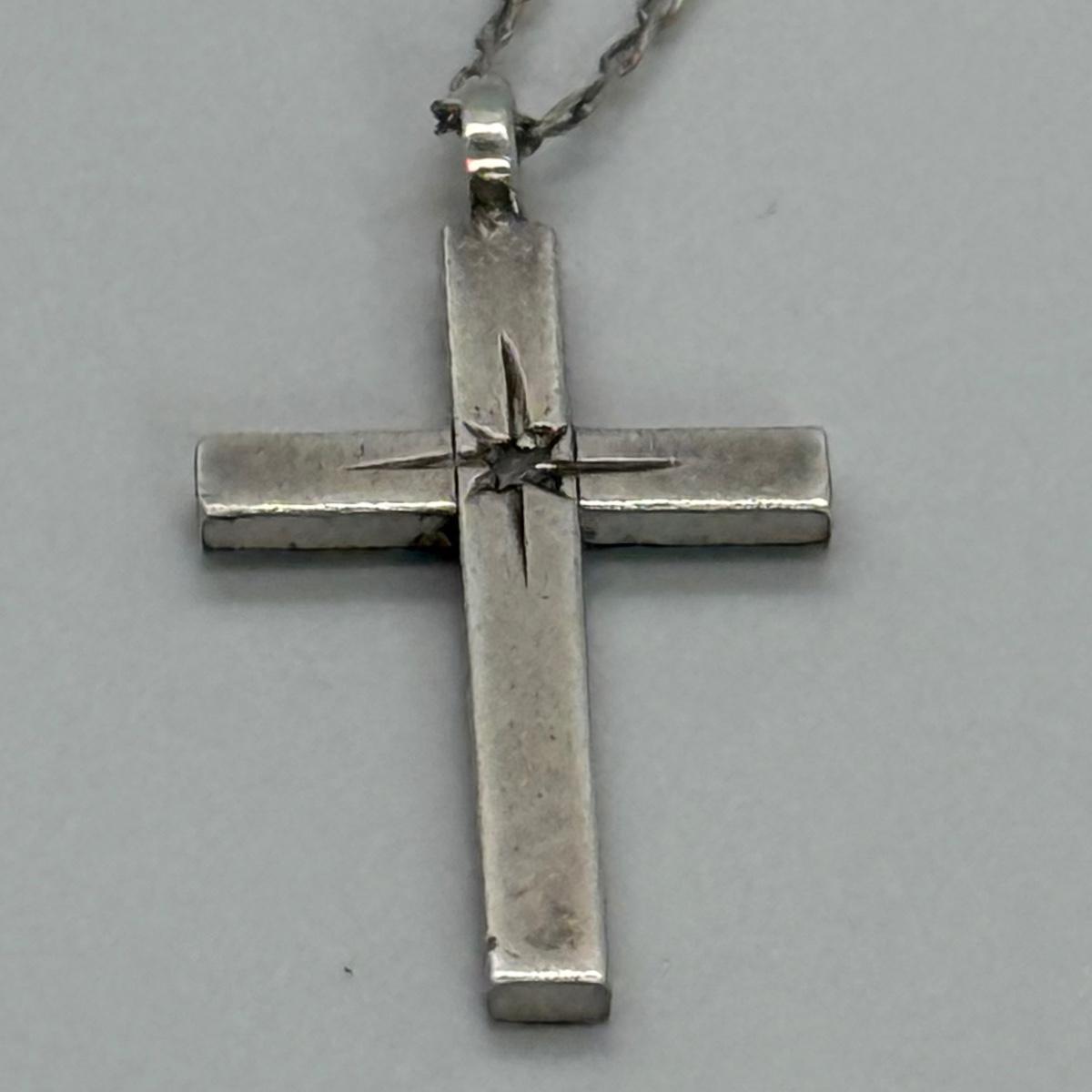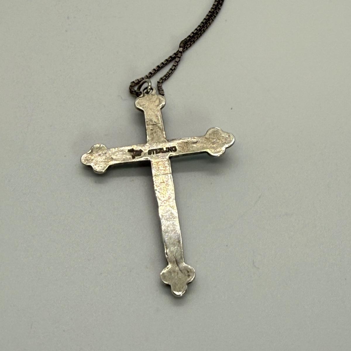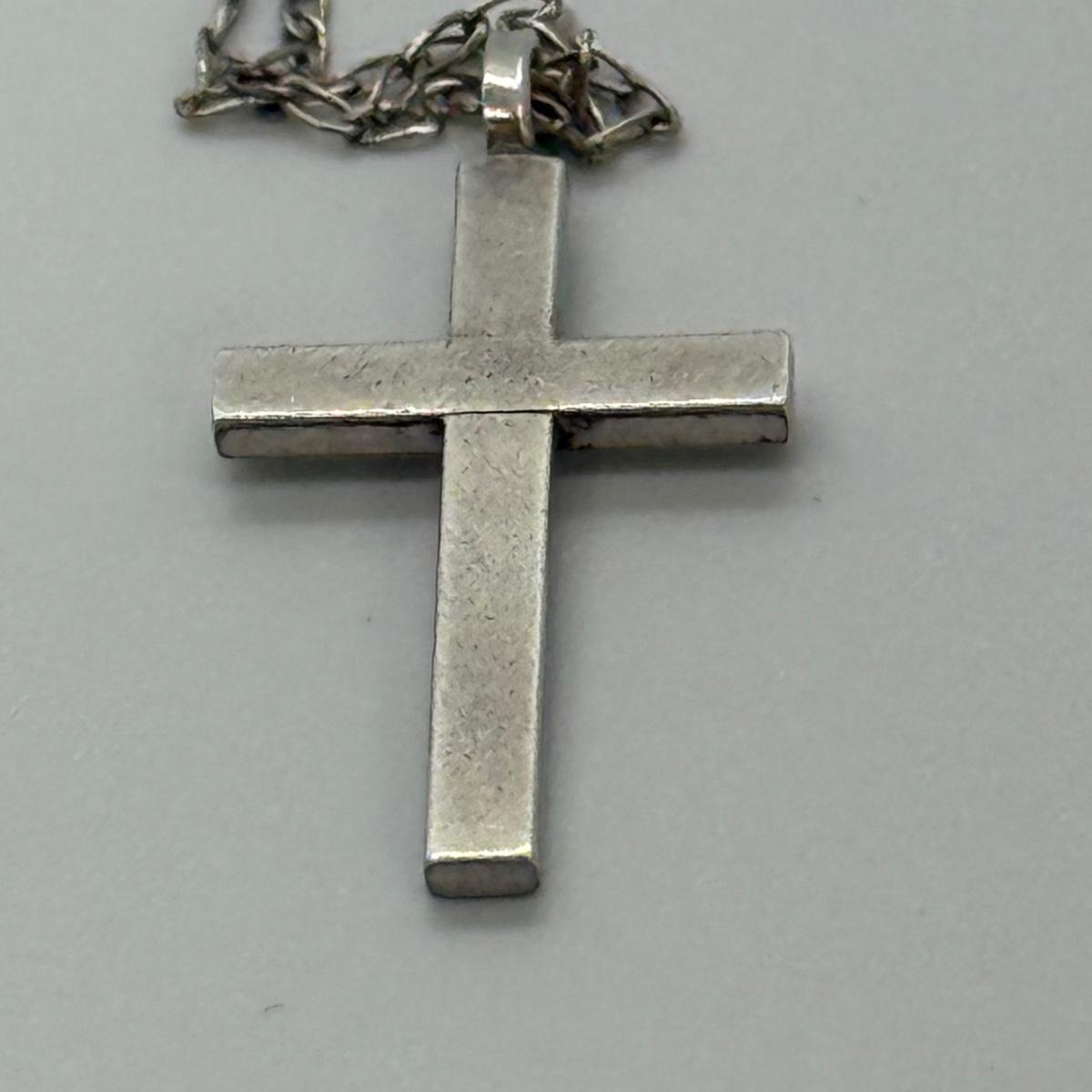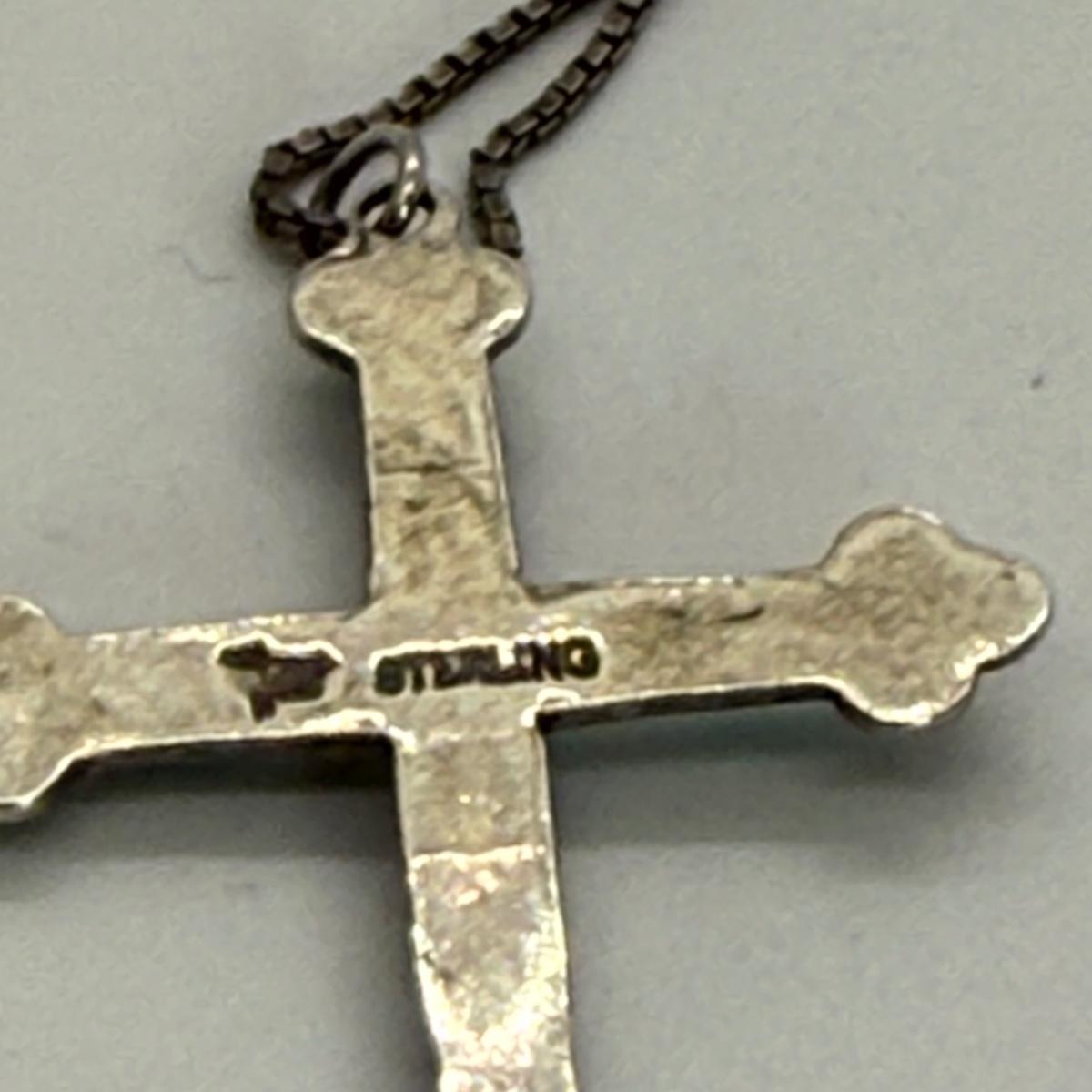 LOT 117: 925 Fine 20” Chain with Cross Pendant 2.4g and 925 Fine Box 24” Chain with Turquoise Cross 4.3 gtw