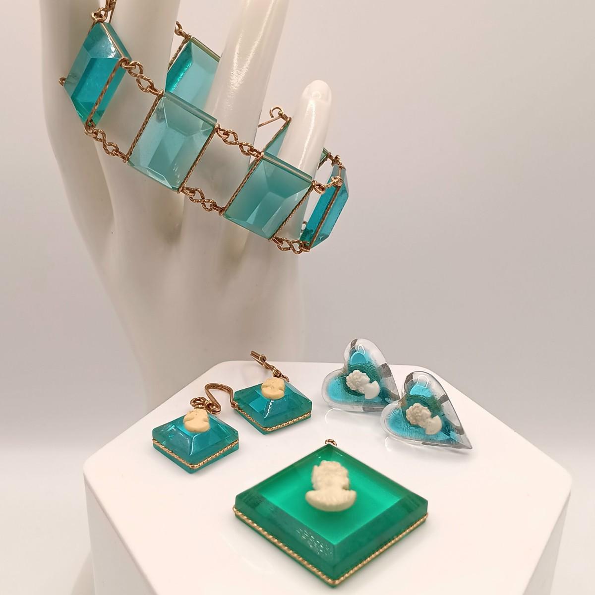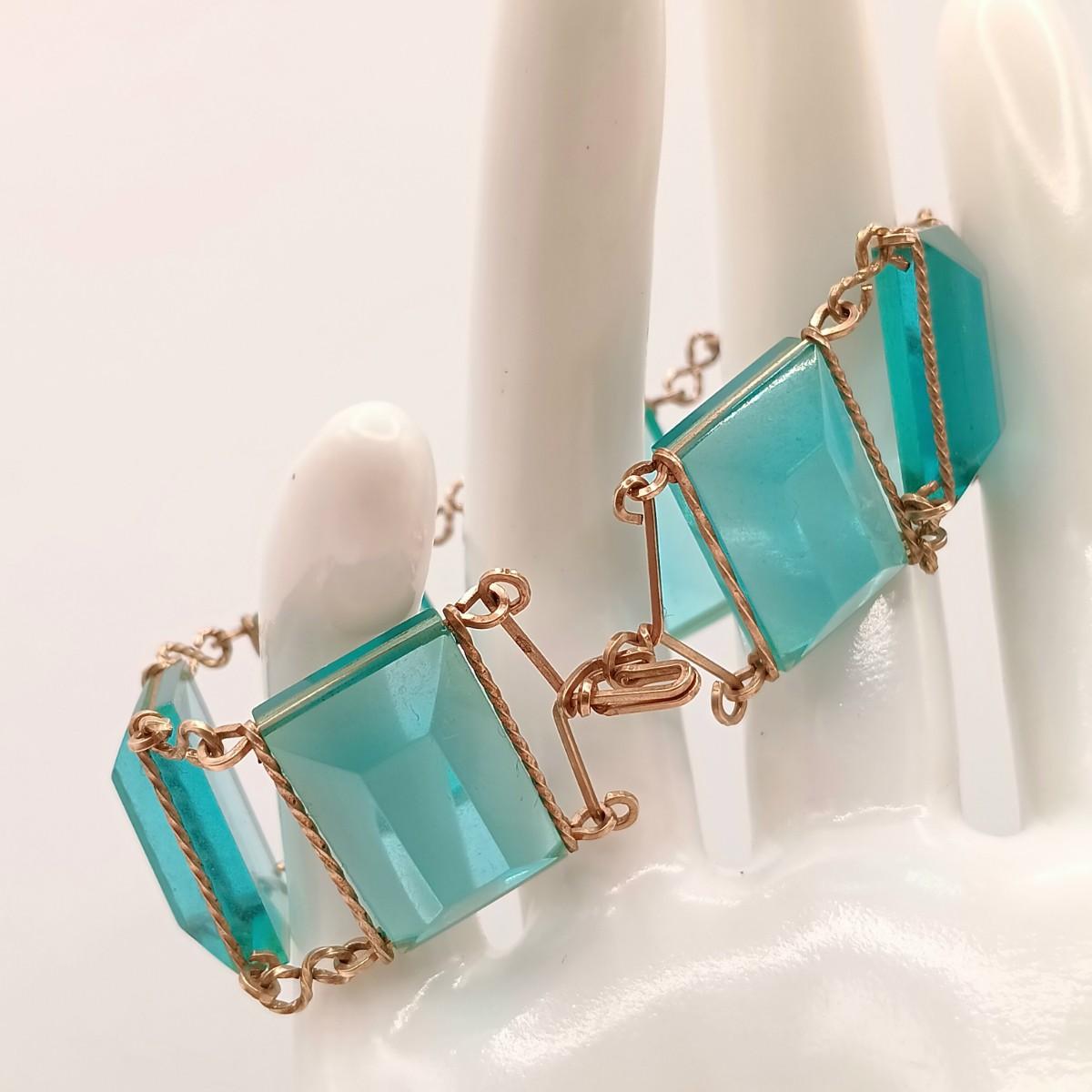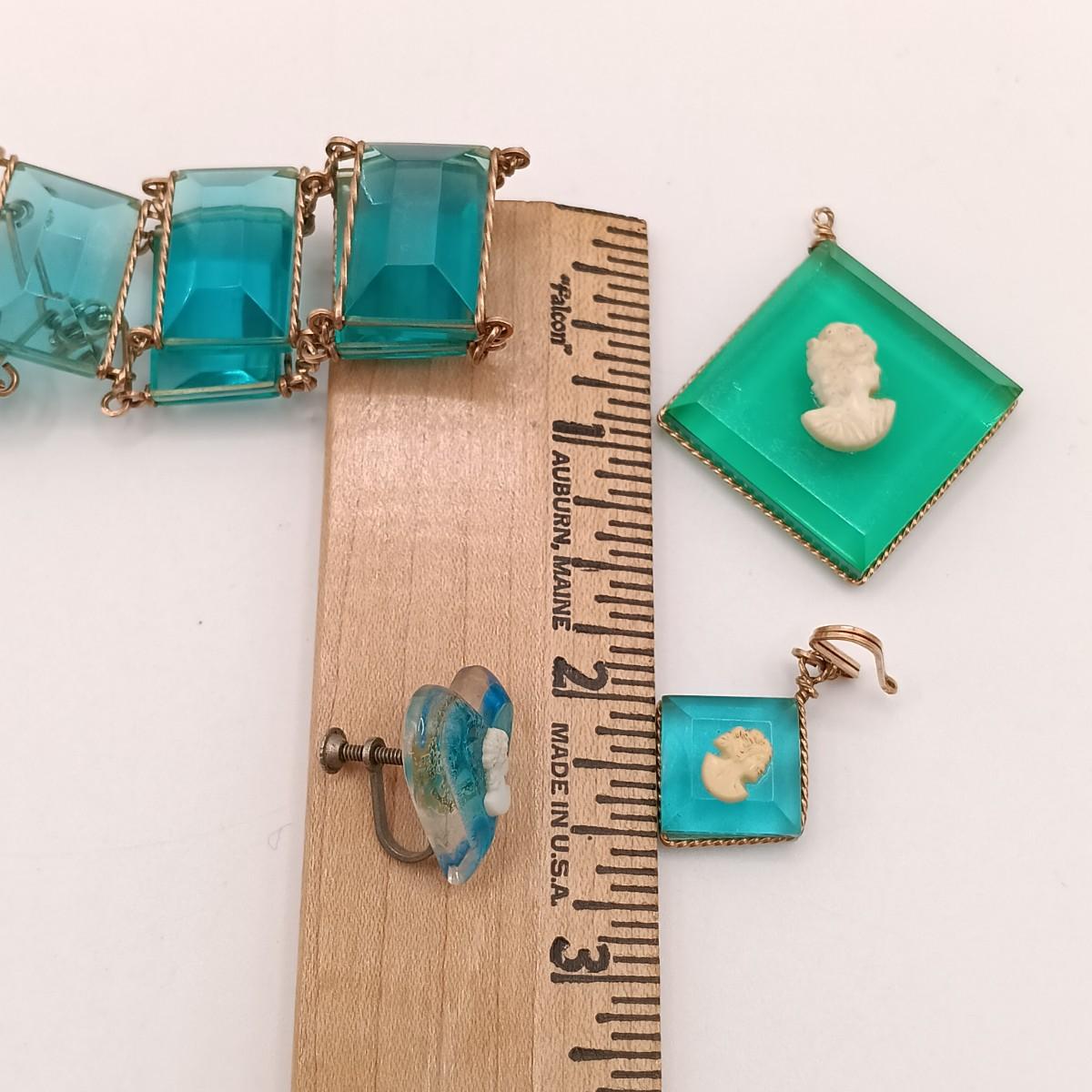 LOT 122: Vintage Gold-Tone Wire and Blue Resin Jewelry Set