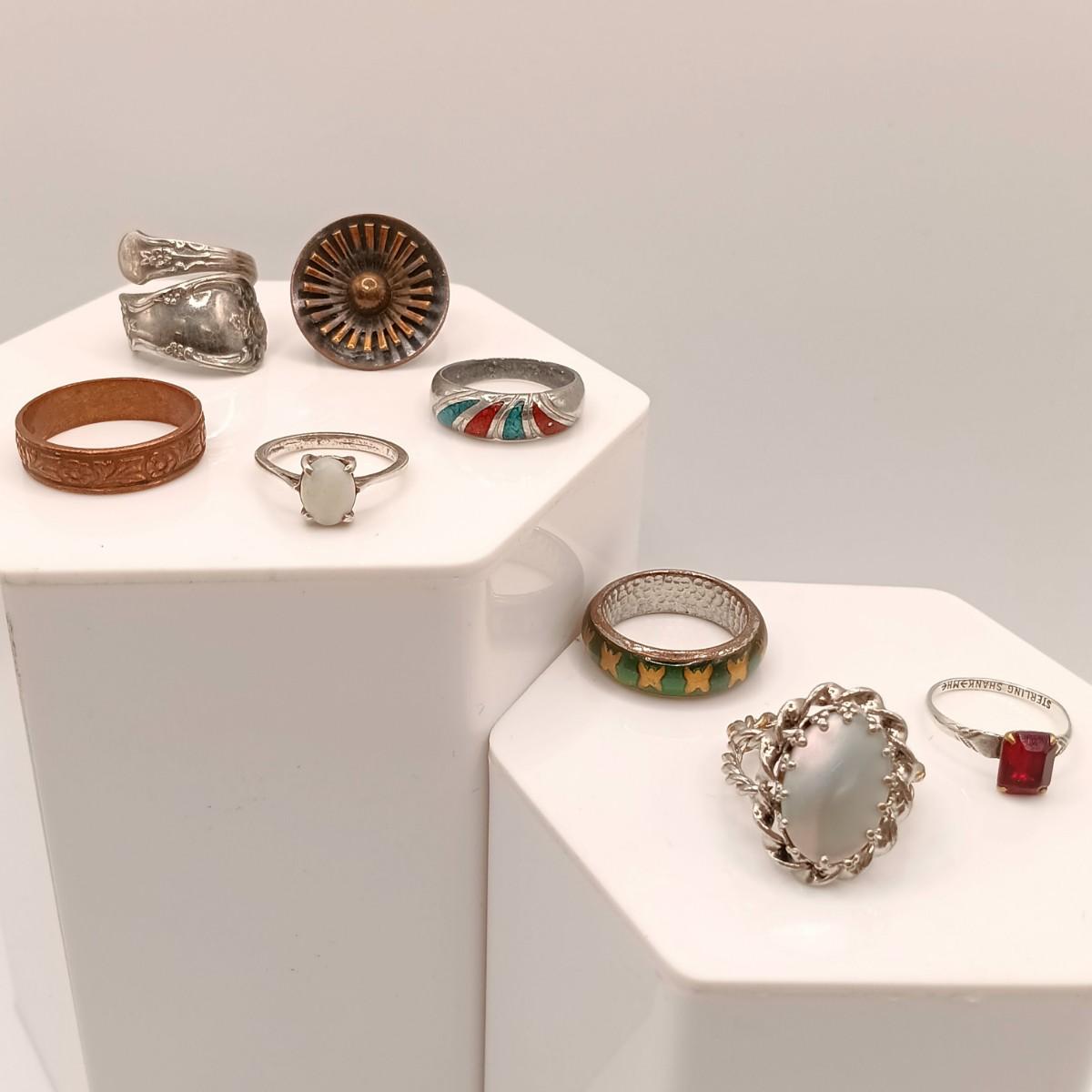 LOT 128: Set of (4) Sterling Silver Rings with (4) Others Sizes 5 & 6