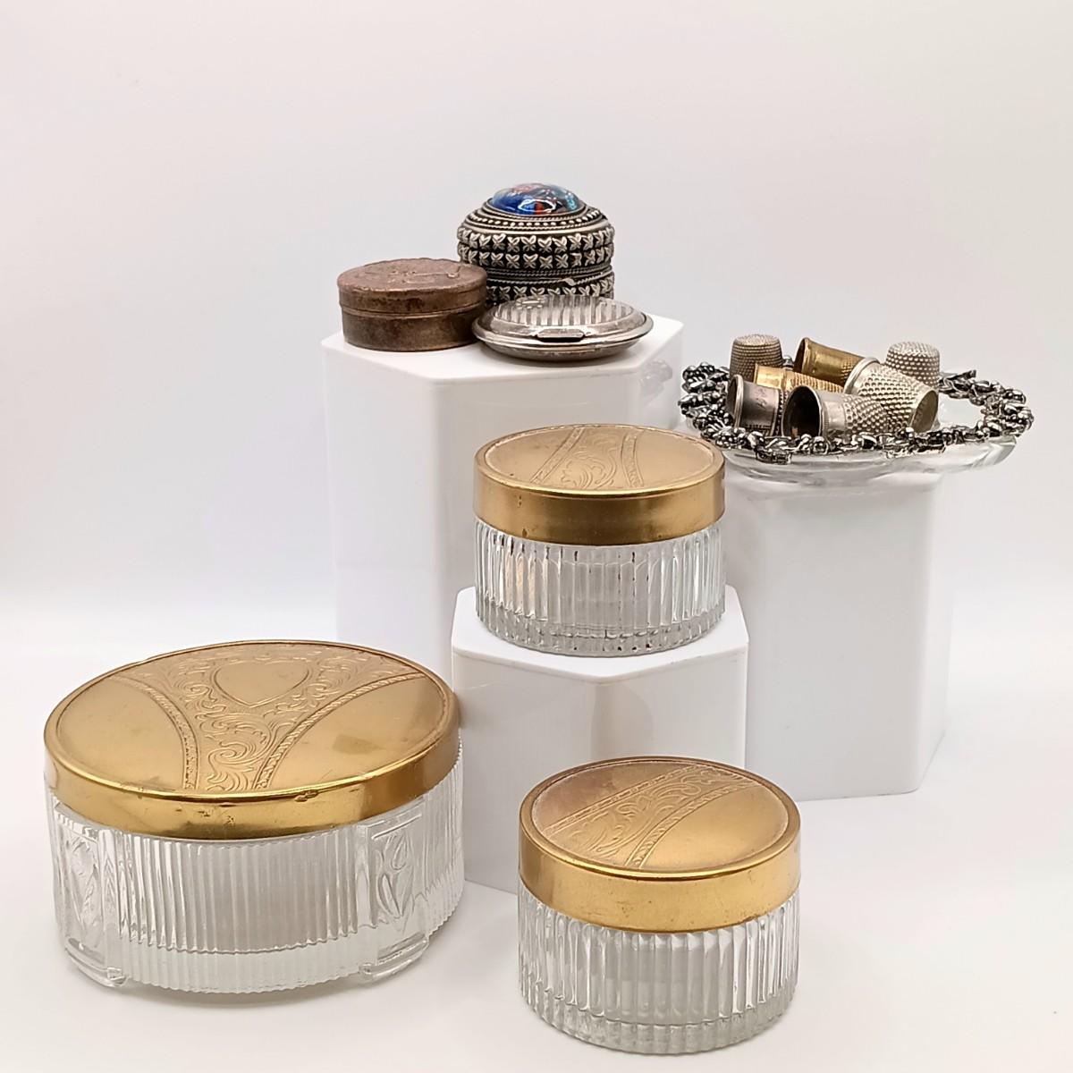 LOT 134: Antique Art Deco 1920s Cara Nome Langlois Compact, Glass Vanity Jars & More