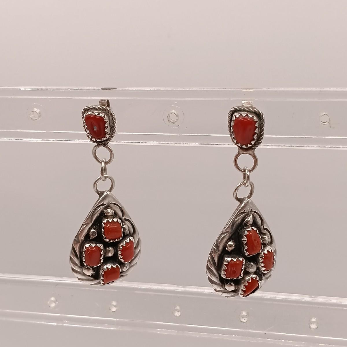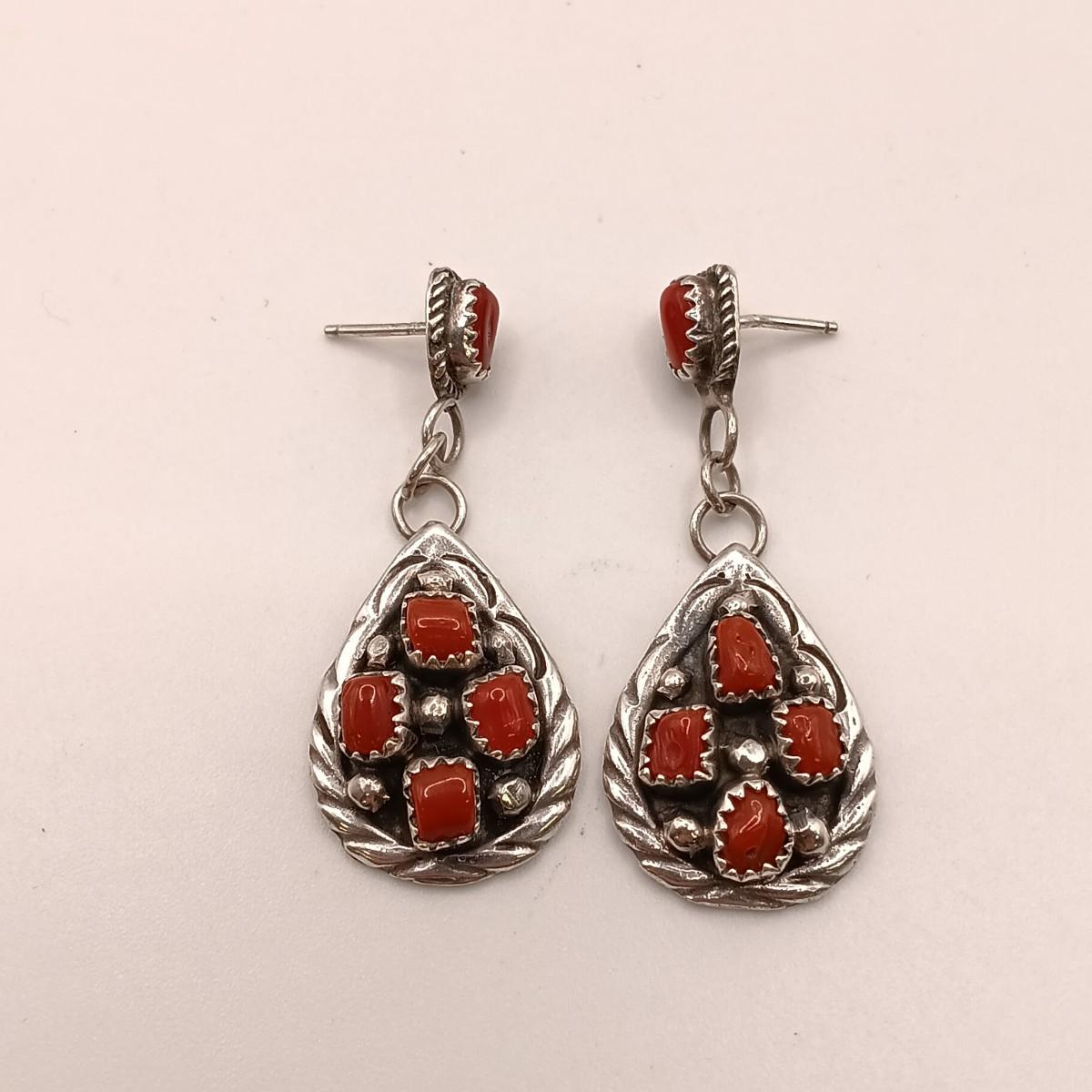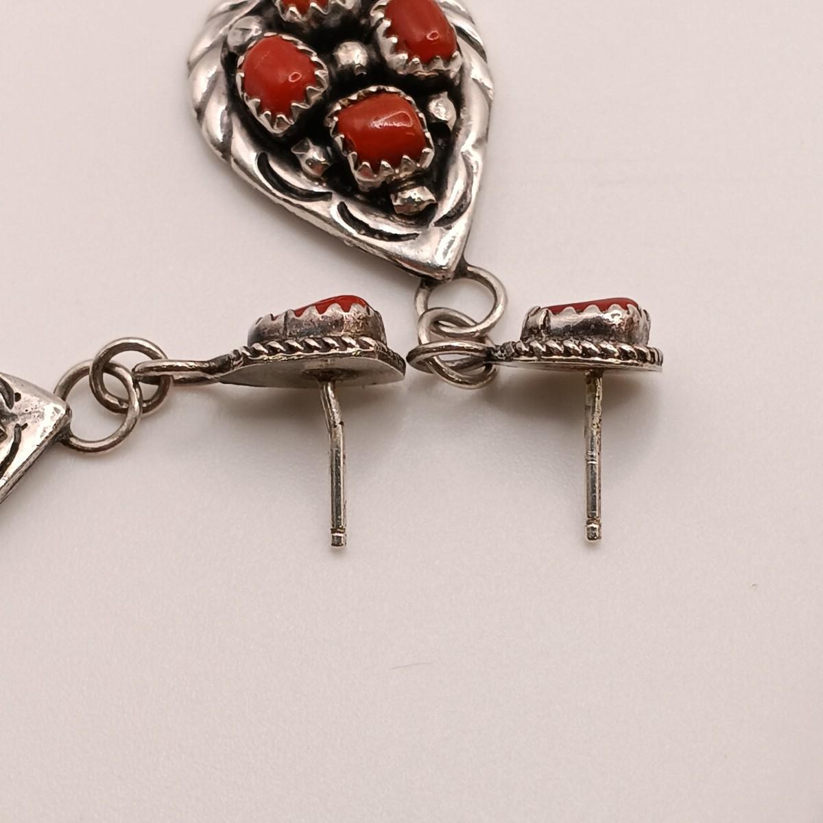 LOT 145: Sterling 925 Silver & Coral Native American Earrings 11.9gtw