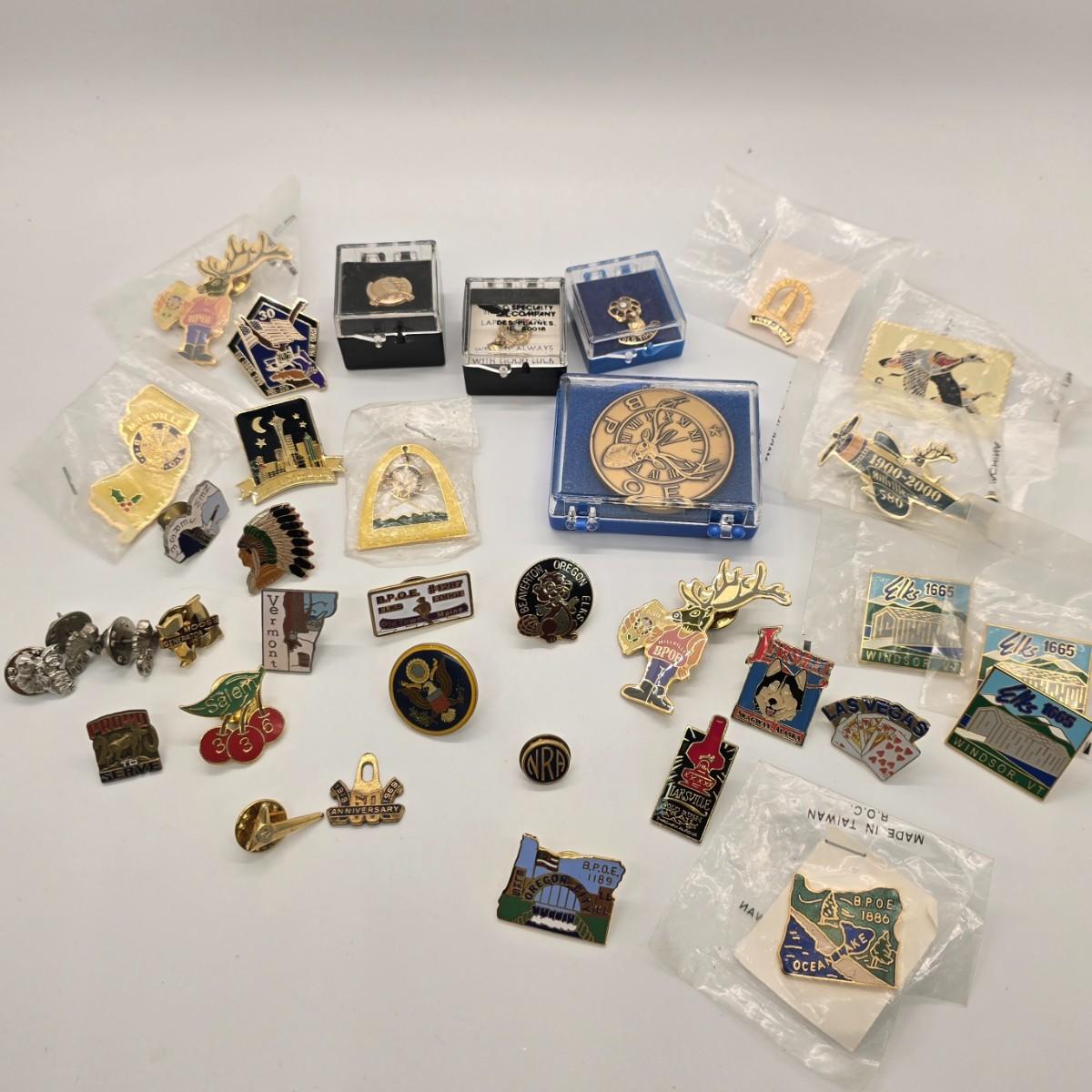 LOT 152jewelry: Large Lot of Elk's Lodge Lapel Pins, Lodge Coin and more