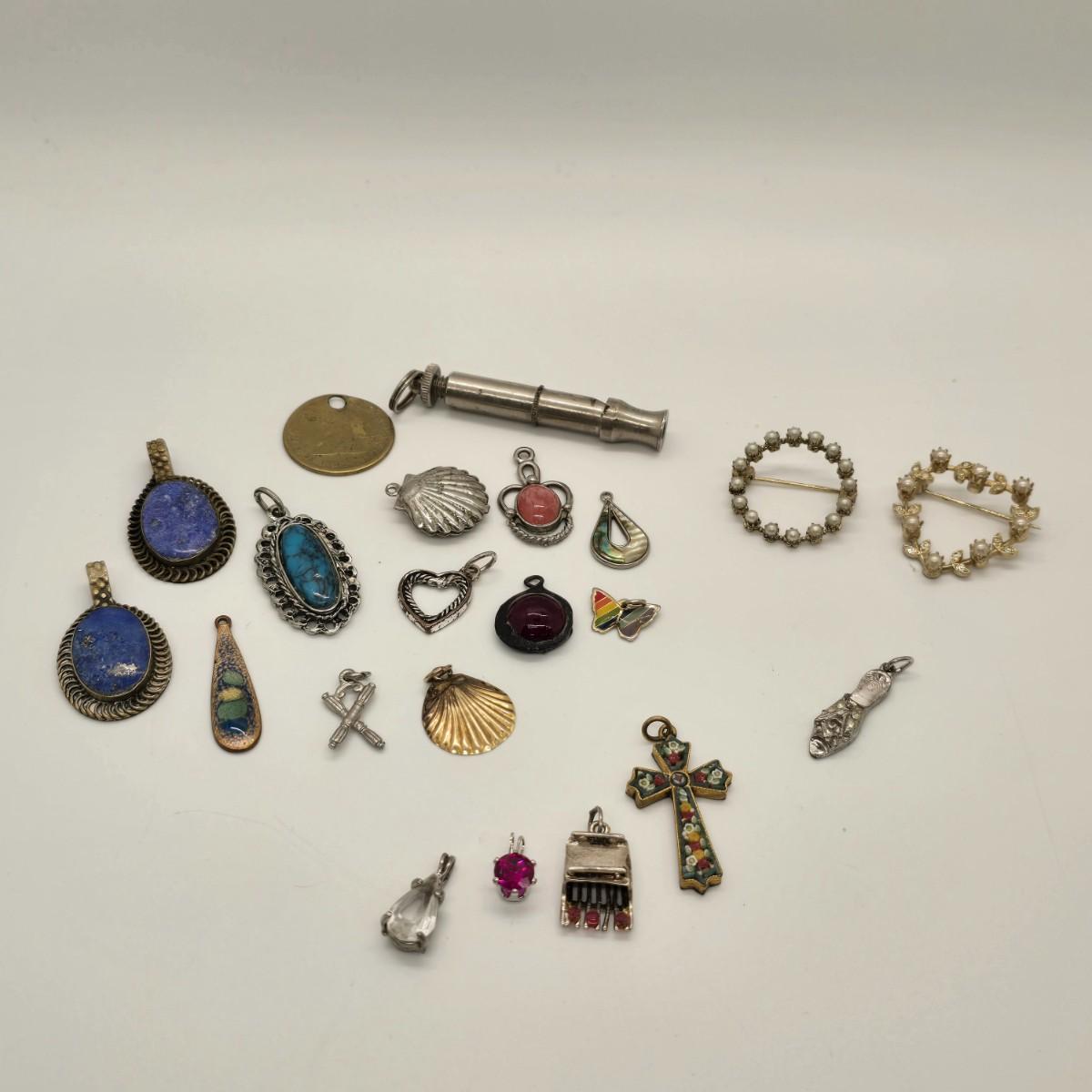 LOT 153jewelry: Various Themed Pendants with Pearl Brooches and Whistle