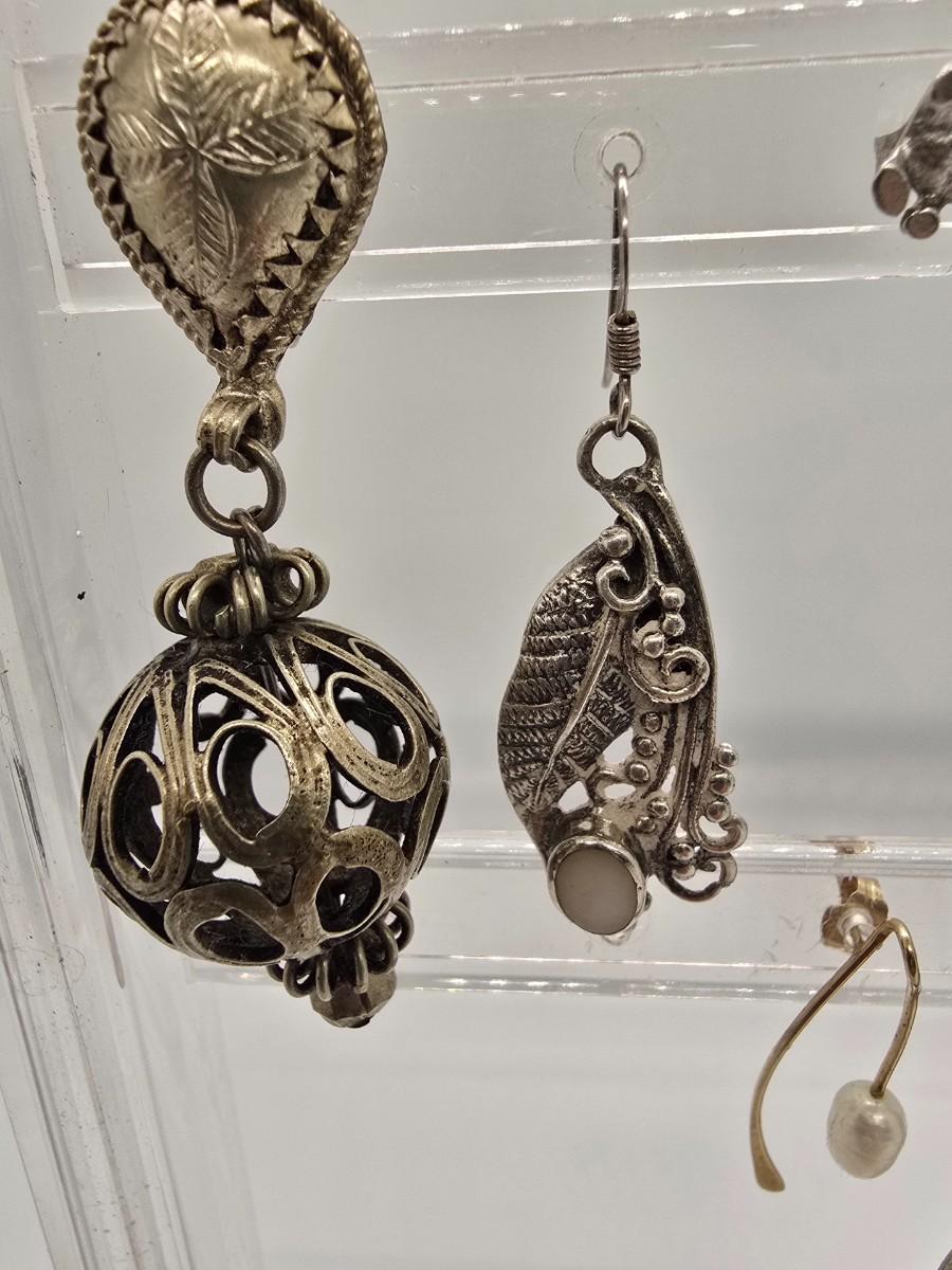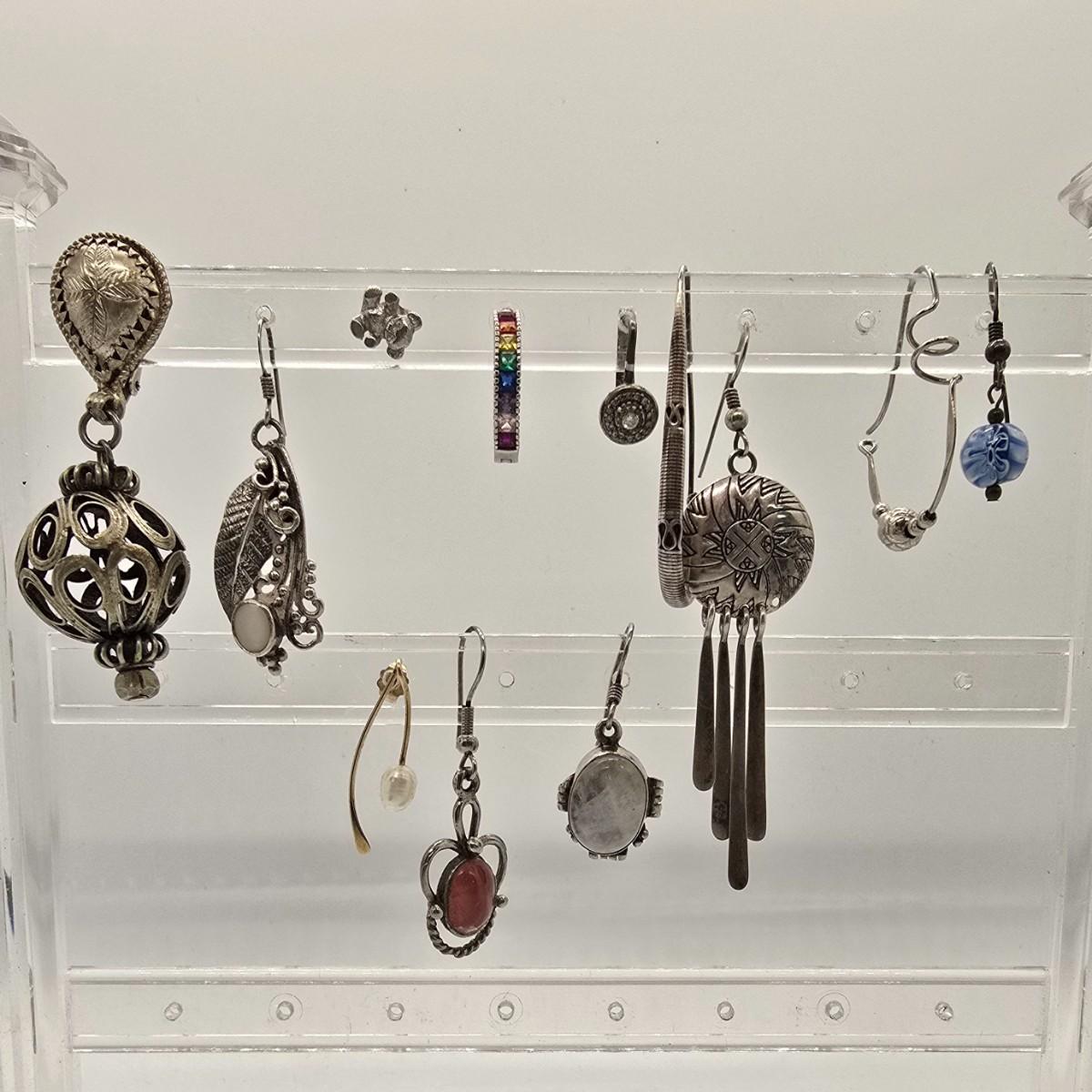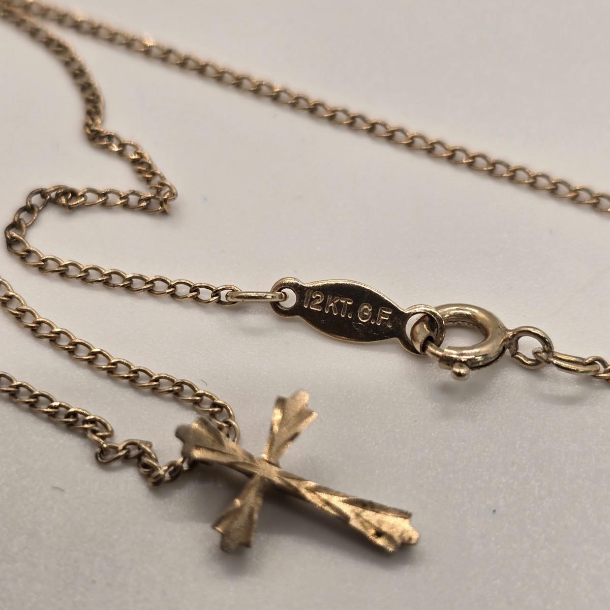 LOT 161jewelry: Gold Filled Cross and Stone Pendants with Odd Lot of Single Earrings, Hat Pin, and Earring Backs