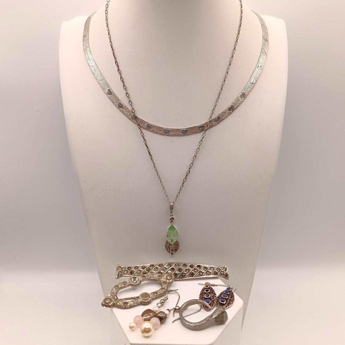 LOT 164: Vintage Silver-Tone Herringbone Heart Neckalce, Peridot-Tone Pendant Necklace & More some sterling