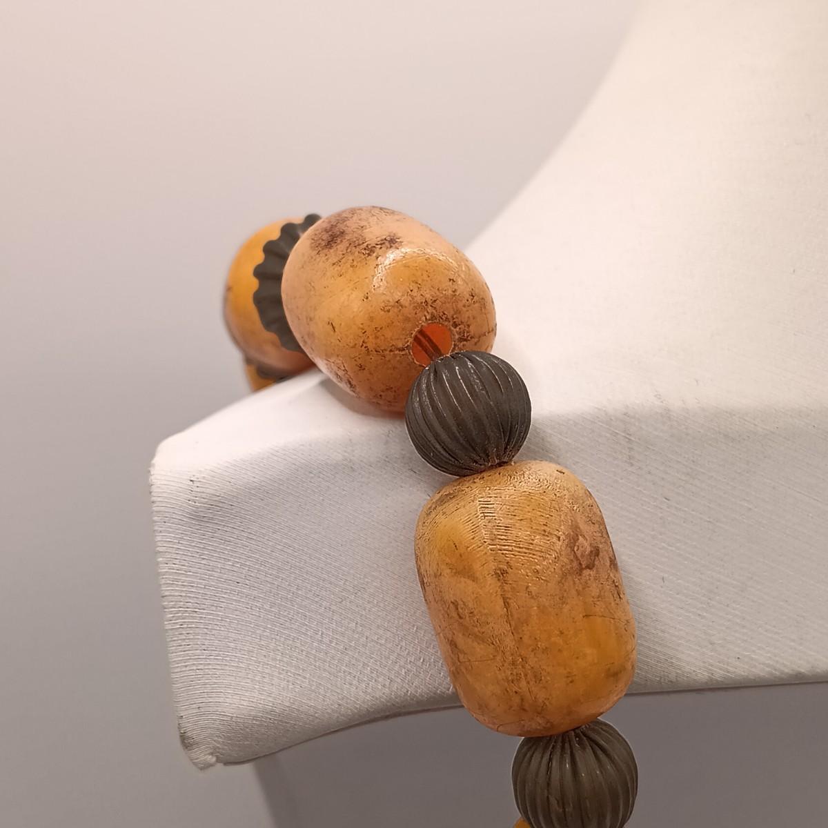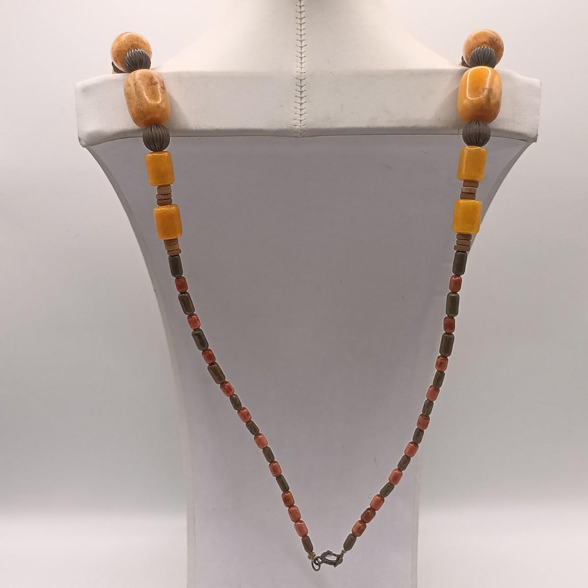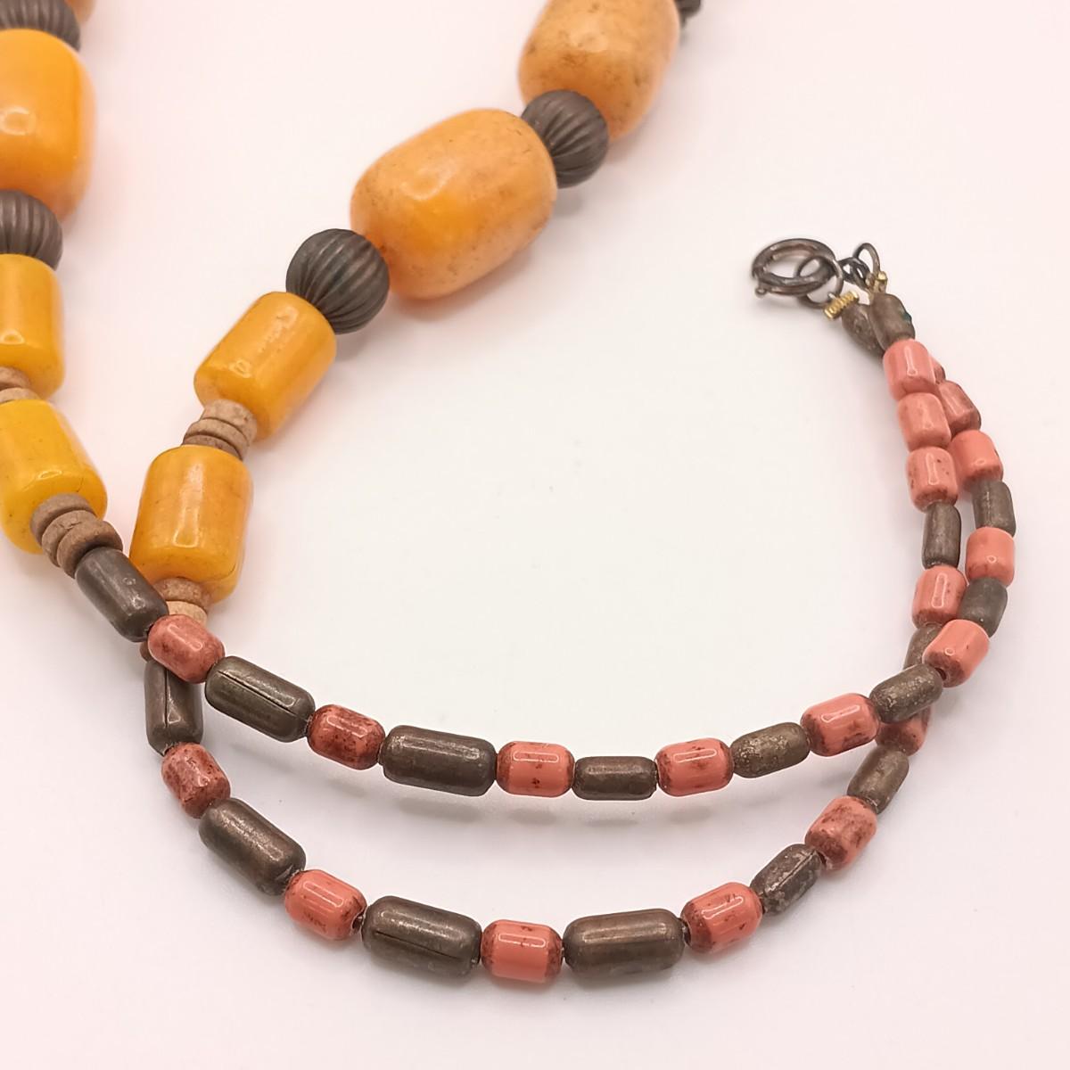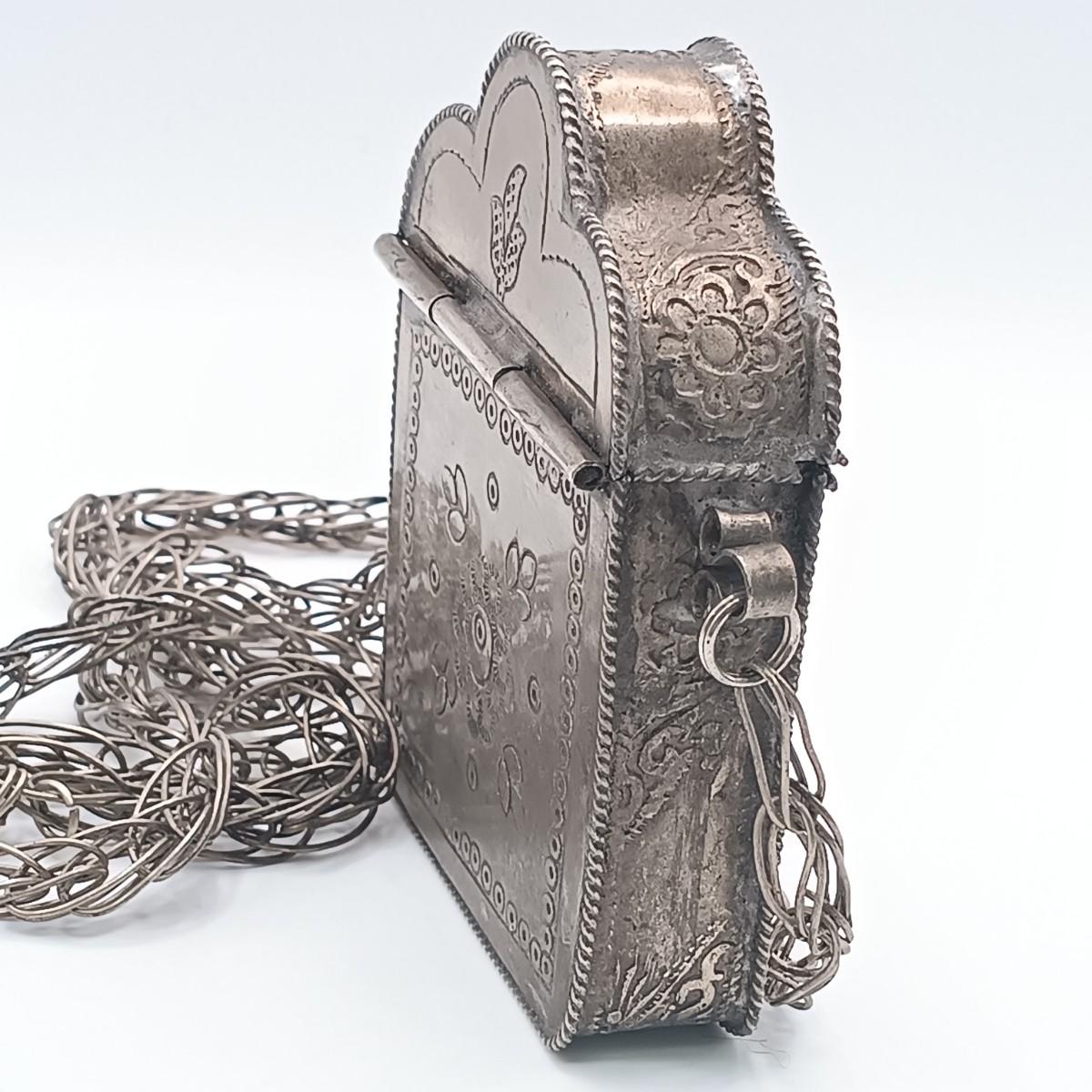 The large silver-tone pendant on the Yemeni necklace is dented on one side.