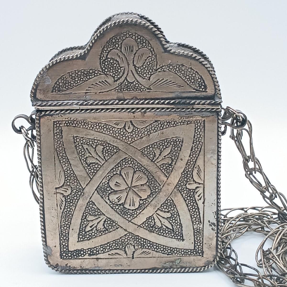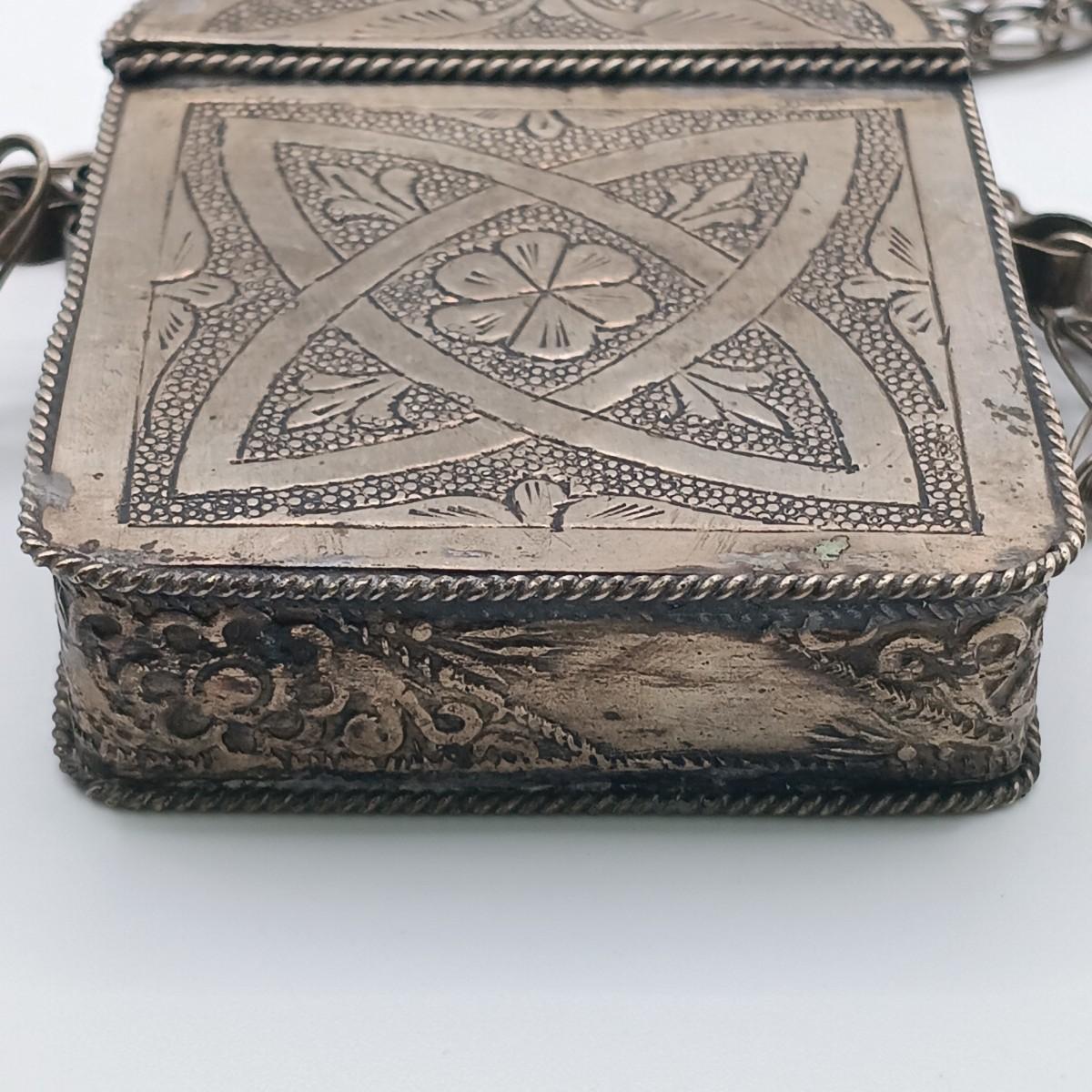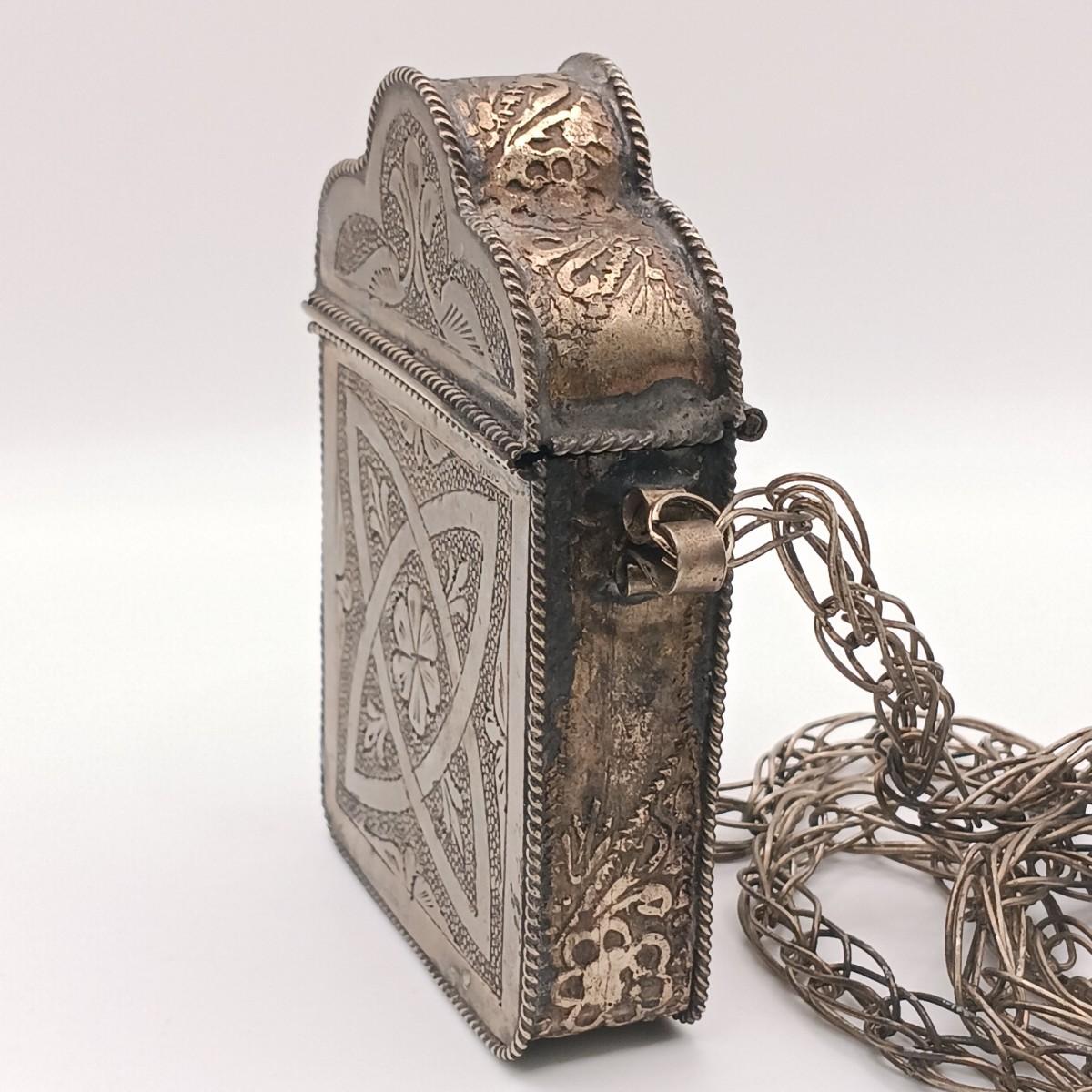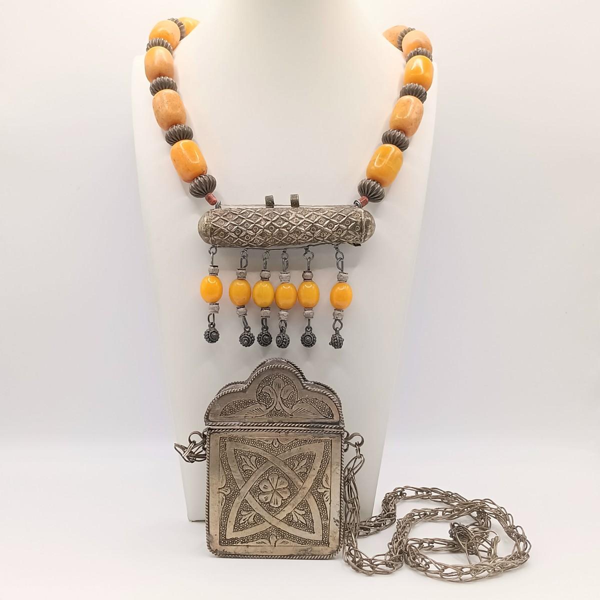 LOT 173: Vintage Quran Travel Box with Yemeni Silver-Tone and Bakelite Necklace