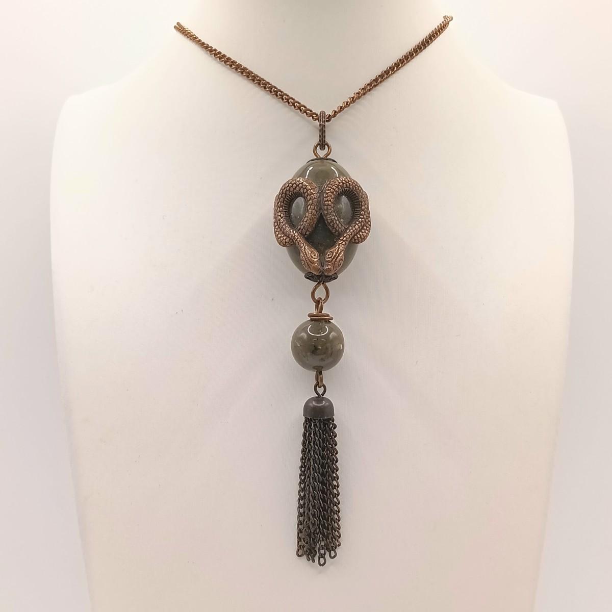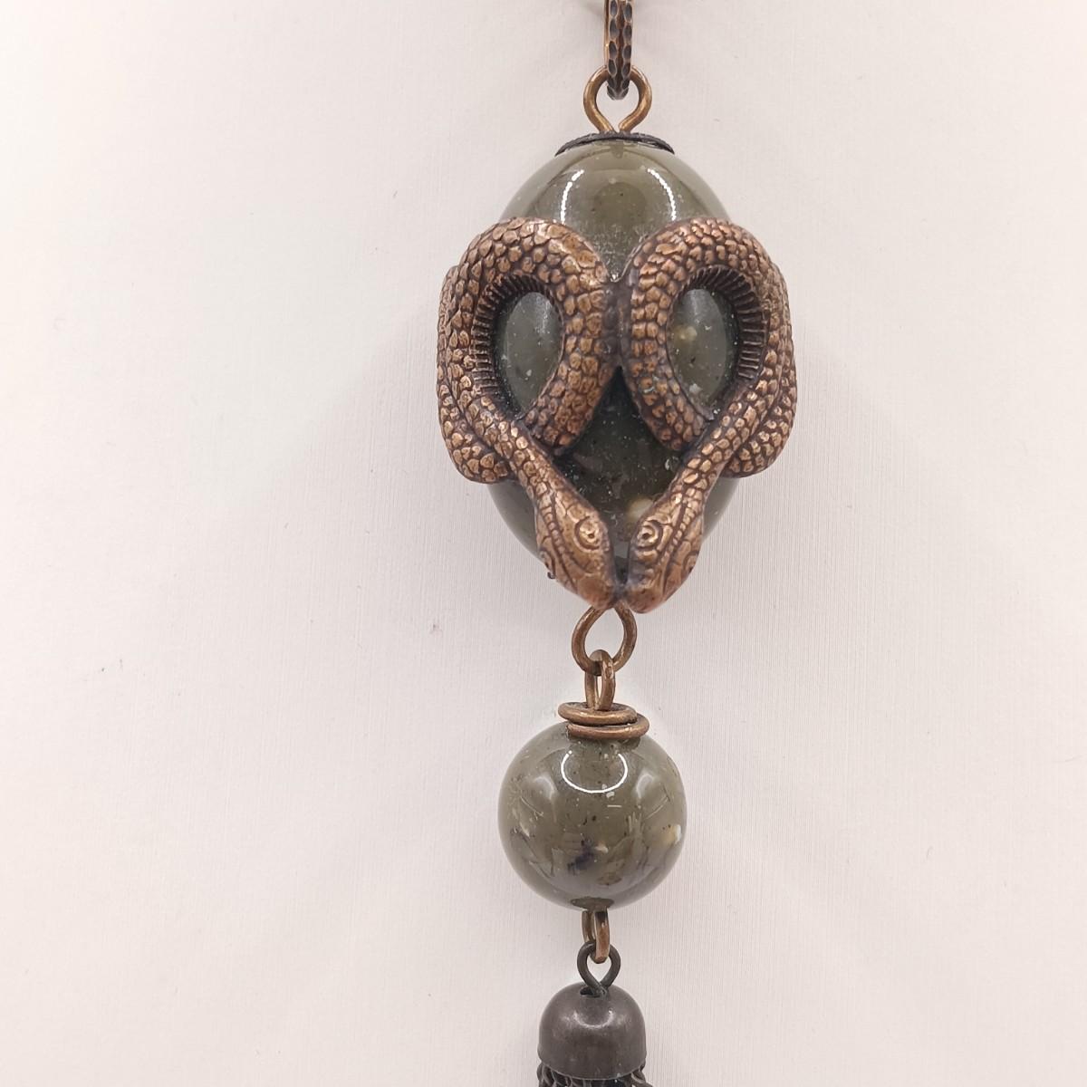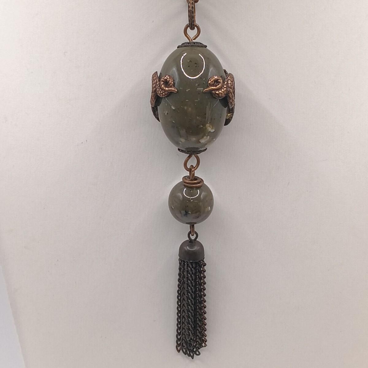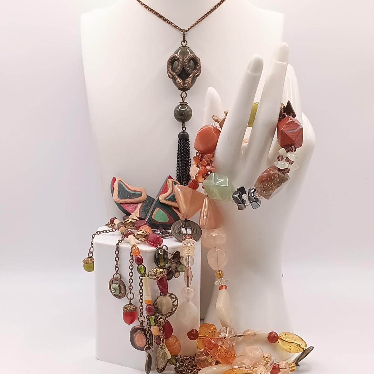LOT 176: Vintage Jan Michaels Snake Tassle Necklace, Heavy Stone Bracelet, Painted Wood Earrings & More