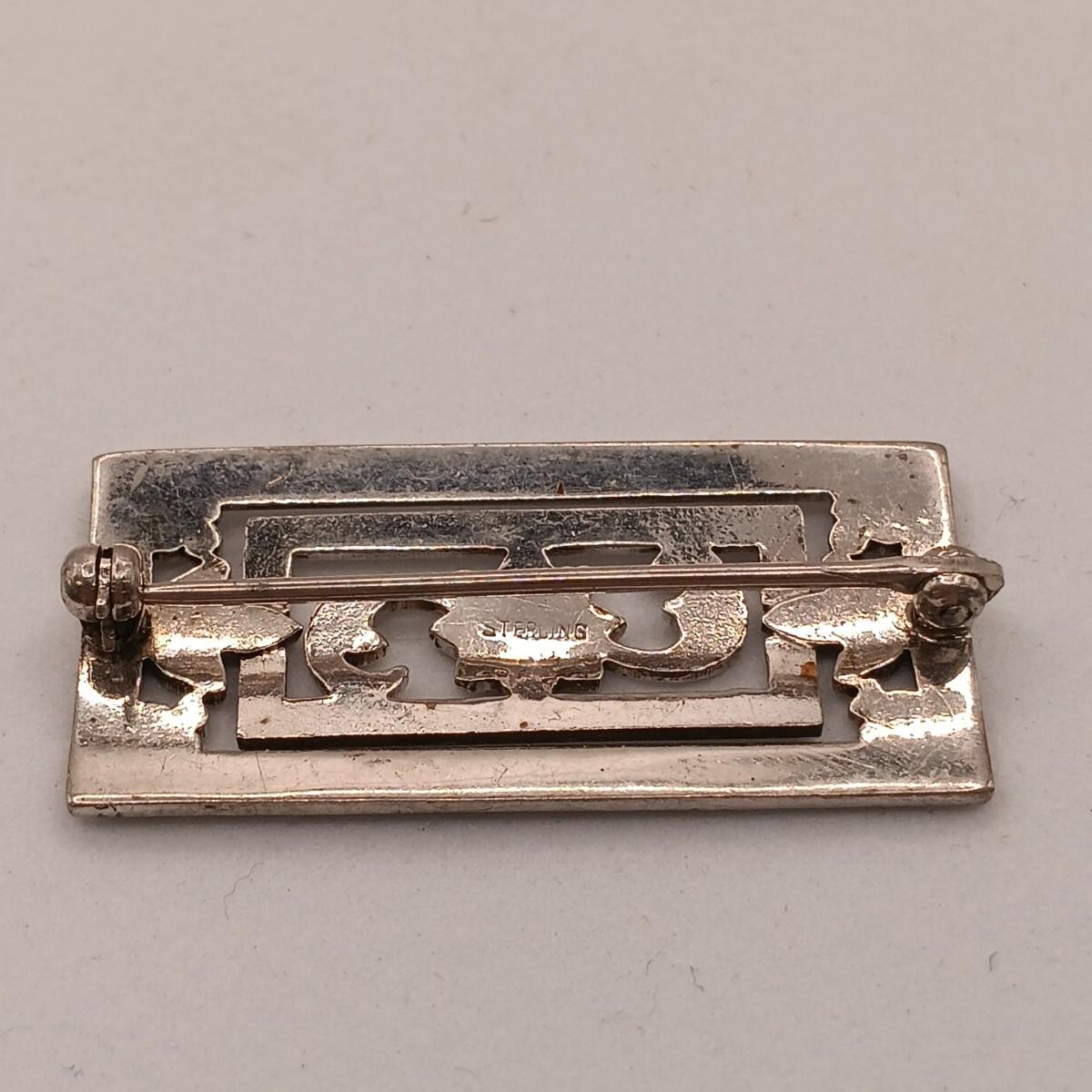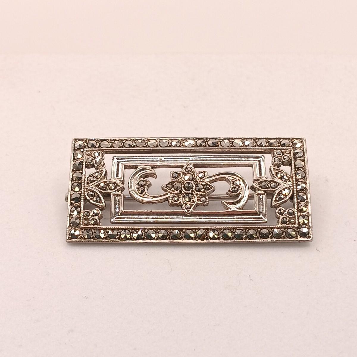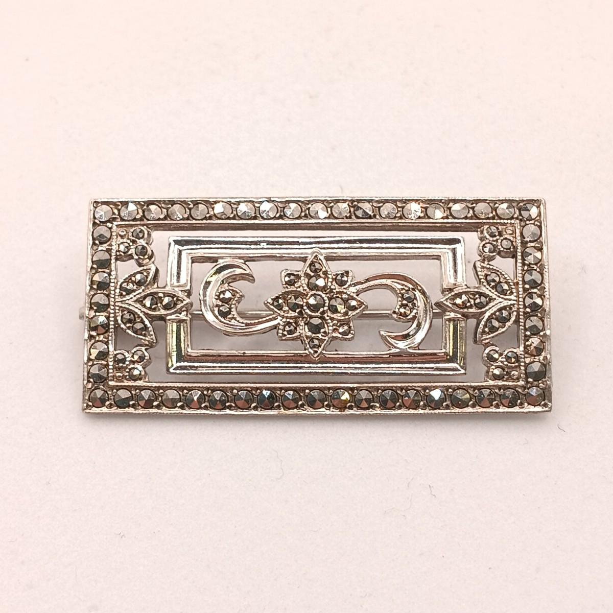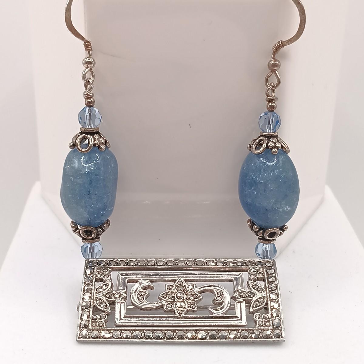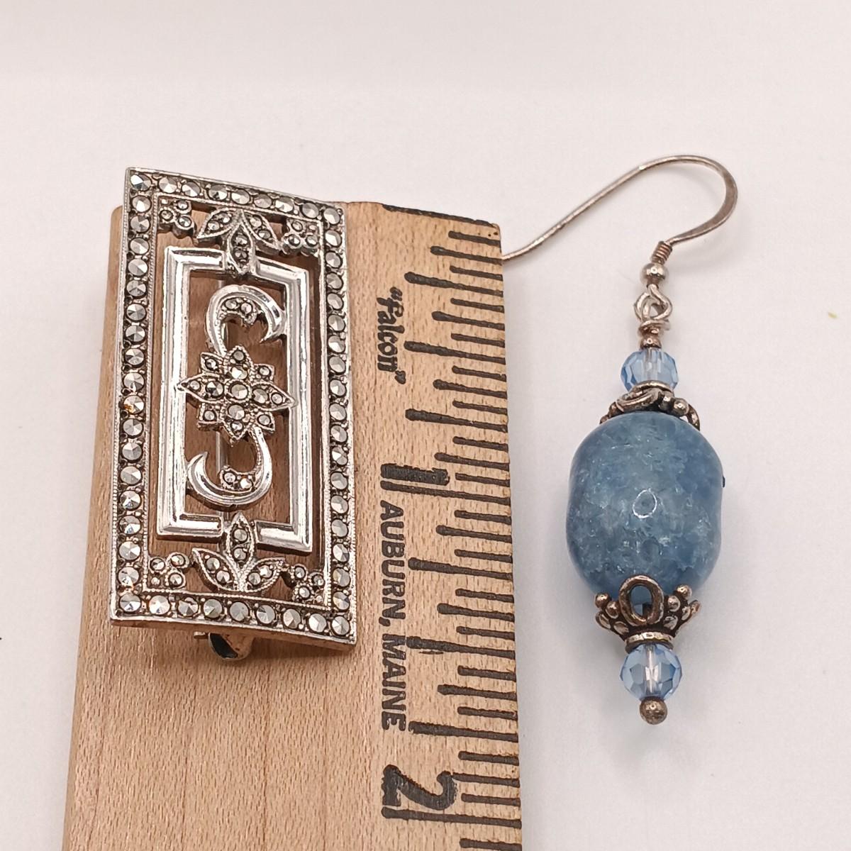 LOT 179: Vintage Sterling and Marcasite Brooch with Blue Bead Earrings