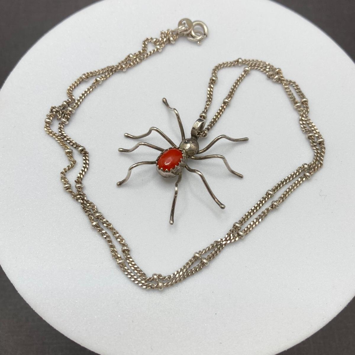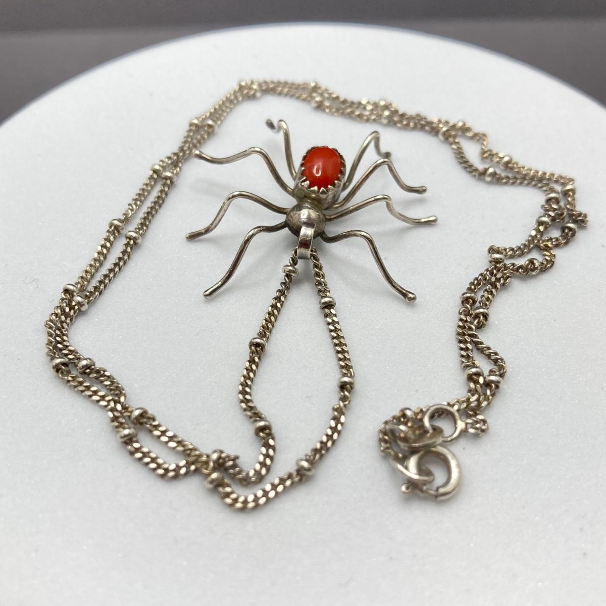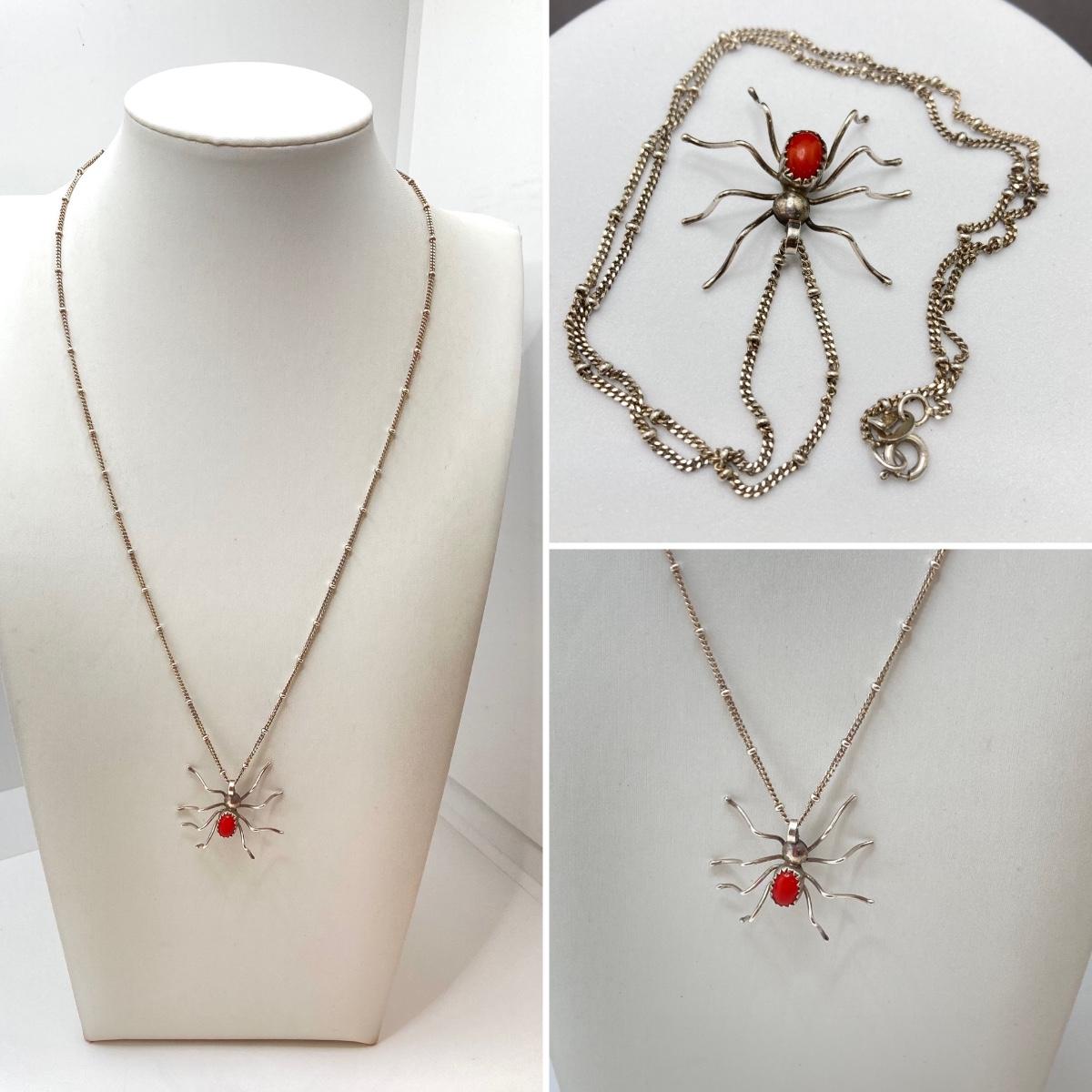 LOT 193: Southwestern Spooky Coral Spider 925 Pendant Necklace
