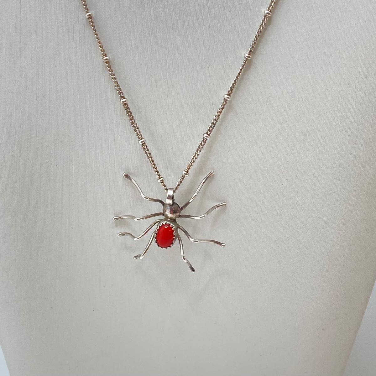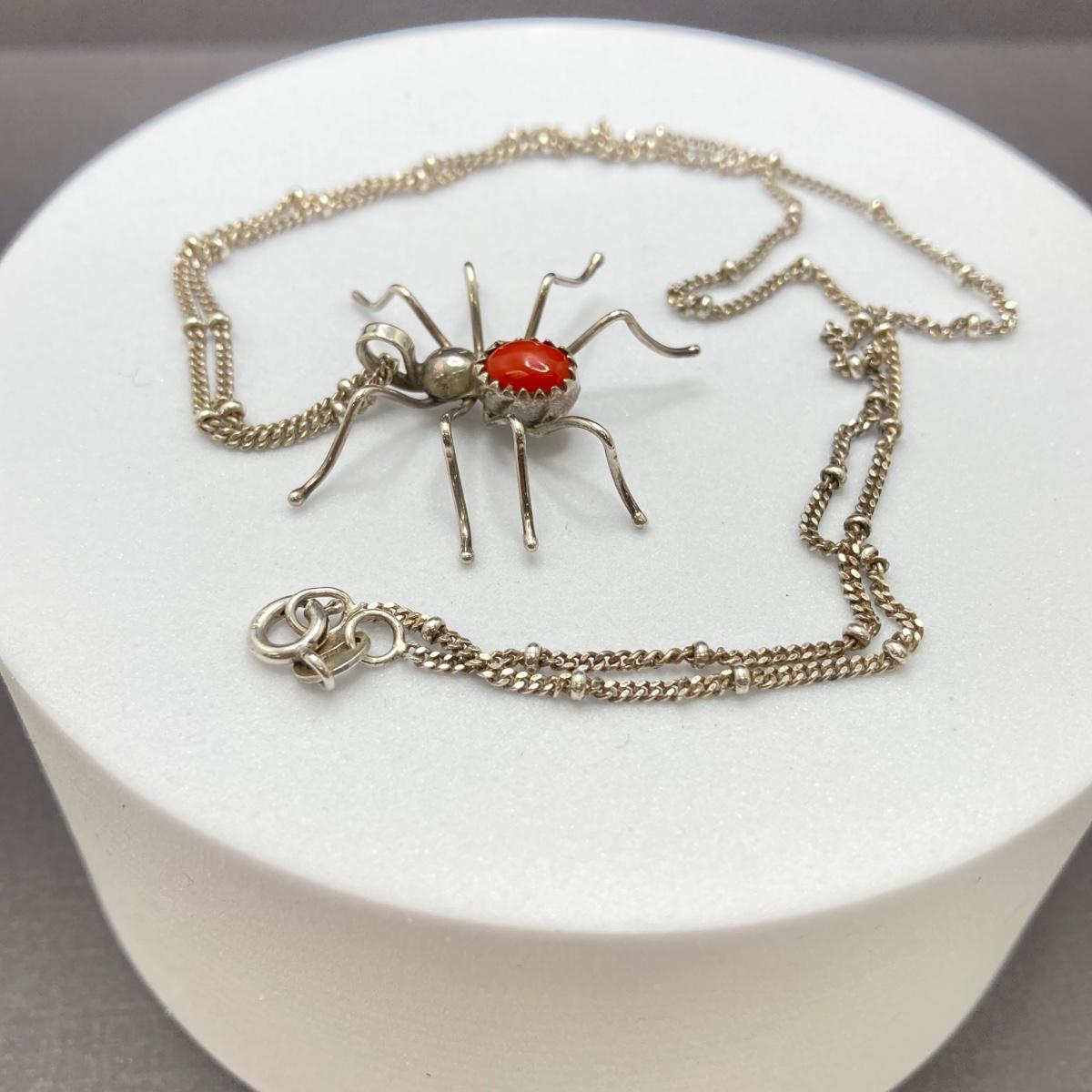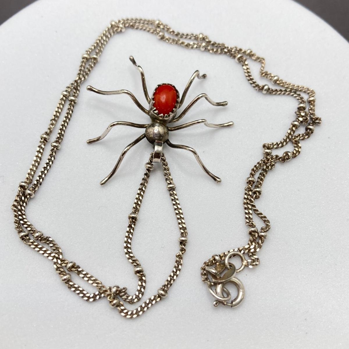 LOT 193: Southwestern Spooky Coral Spider 925 Pendant Necklace