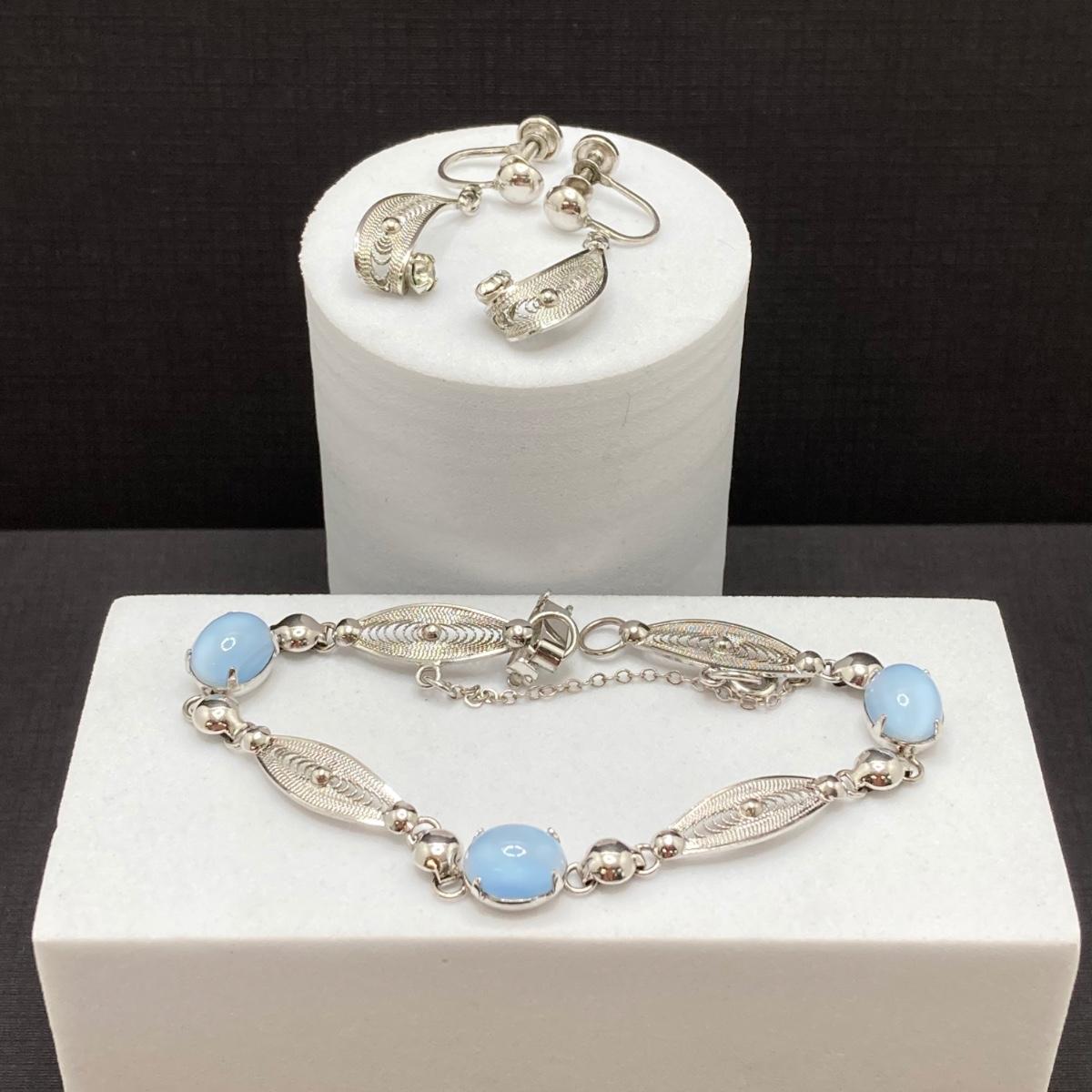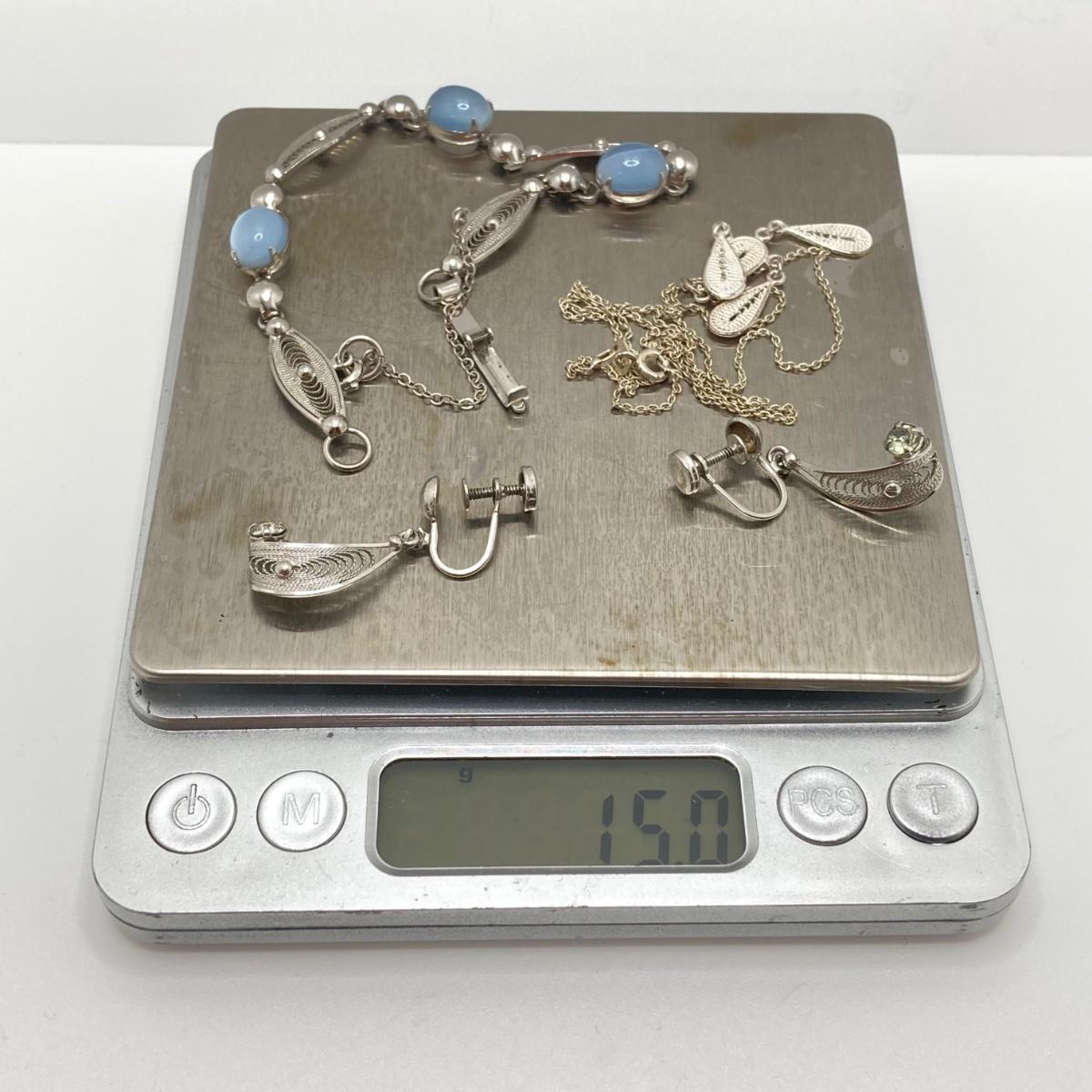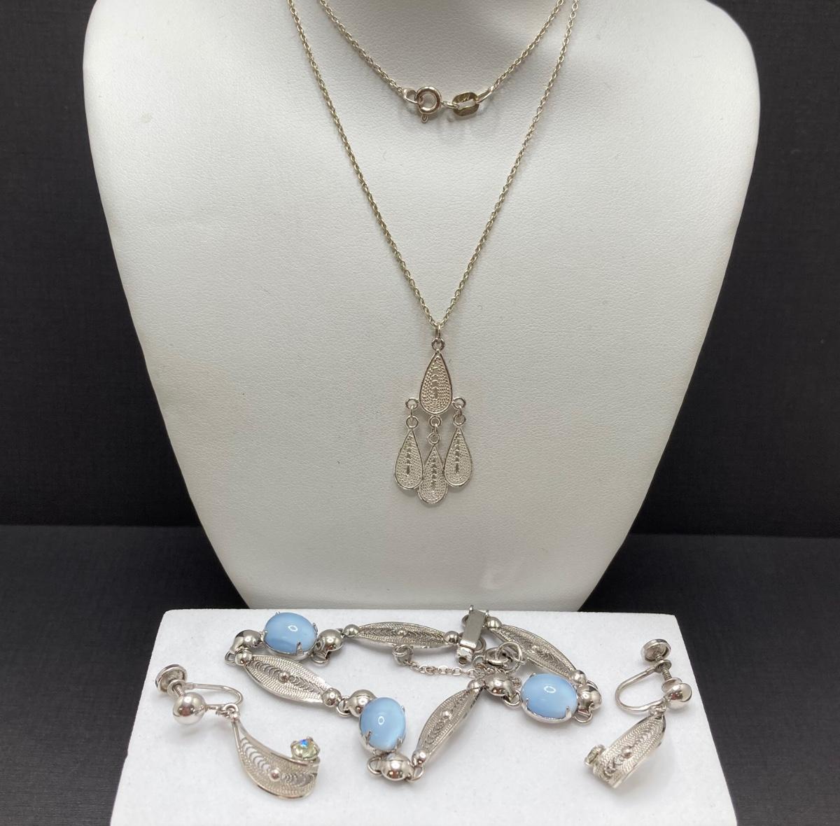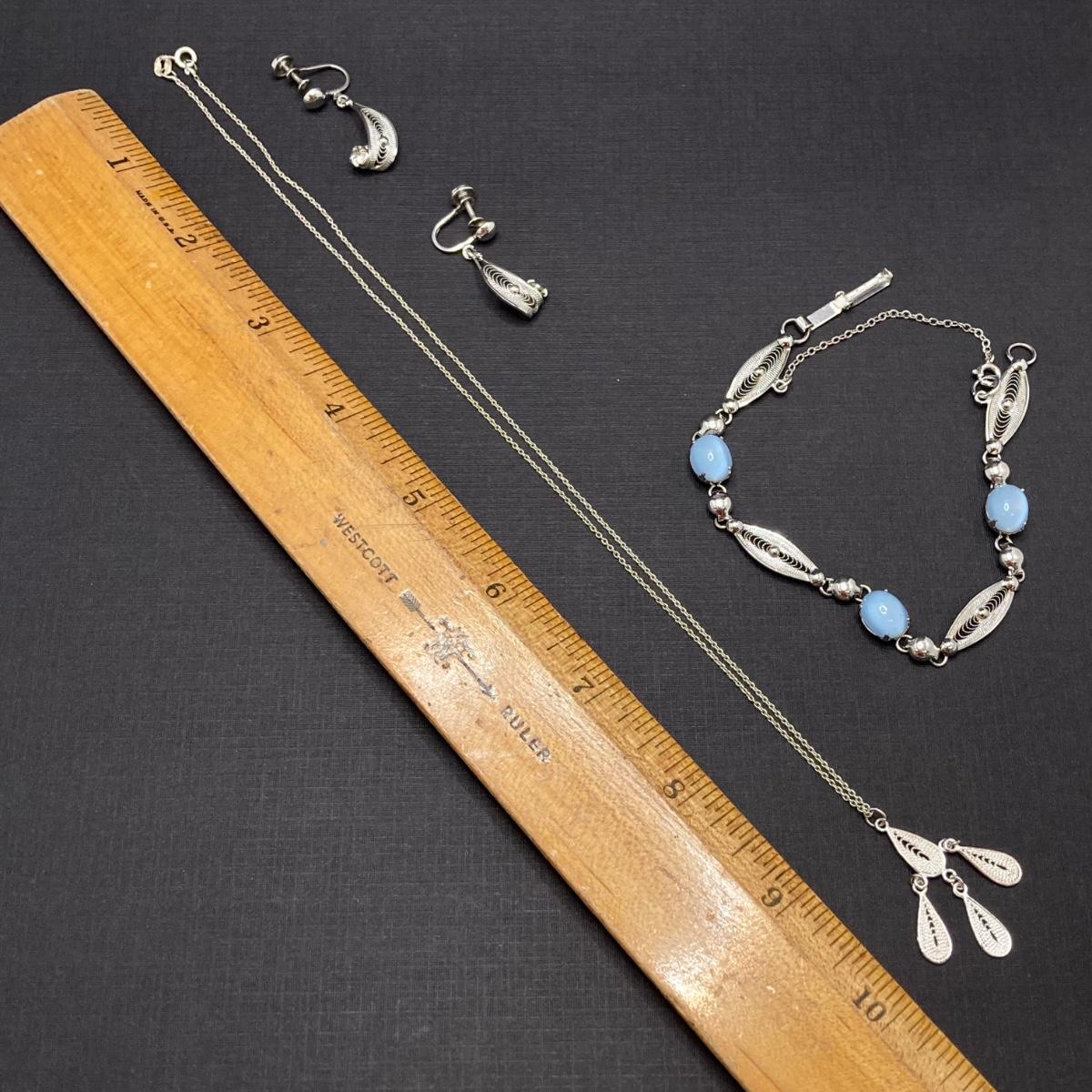 LOT 194: Sterling Jewelry Set - Necklace, Bracelet and Screw Back Earrings