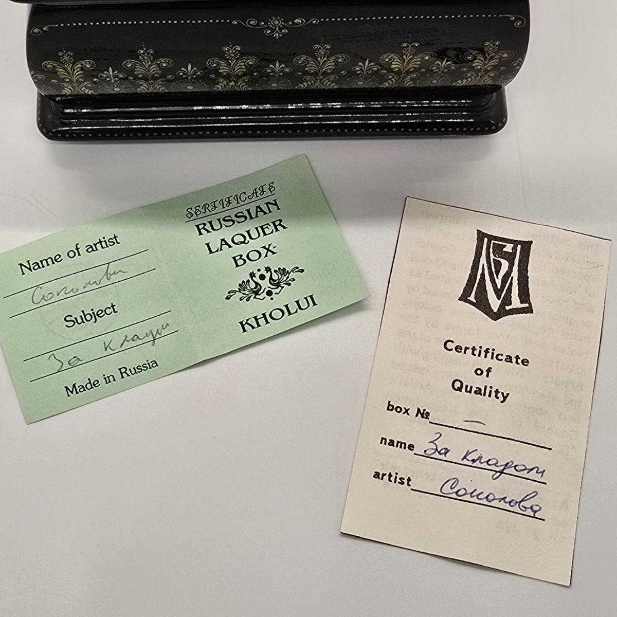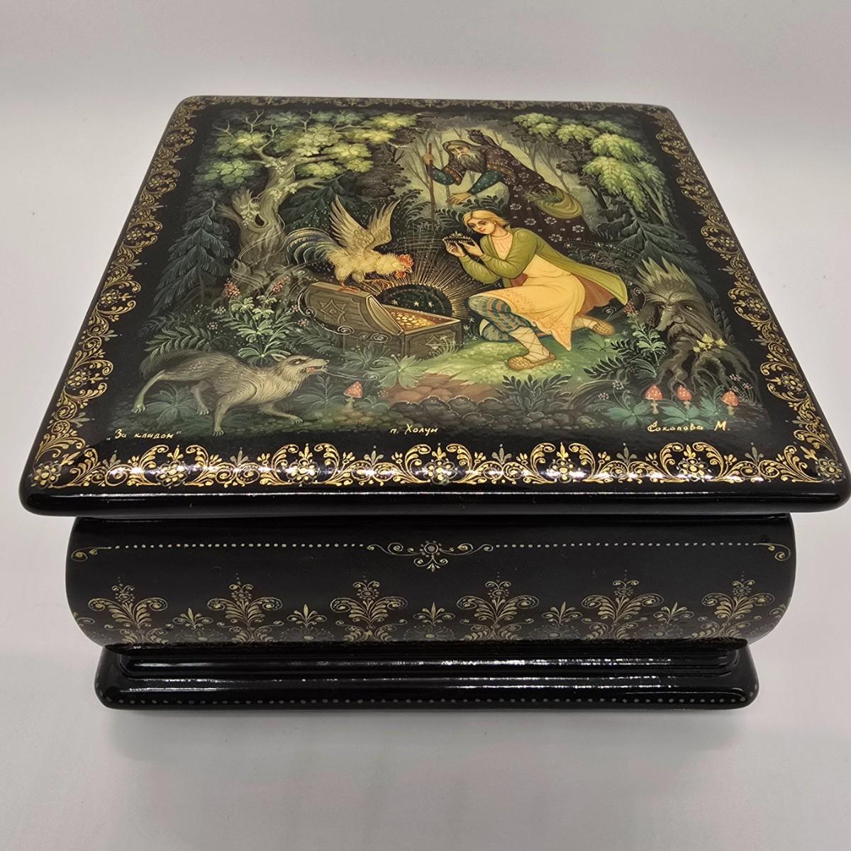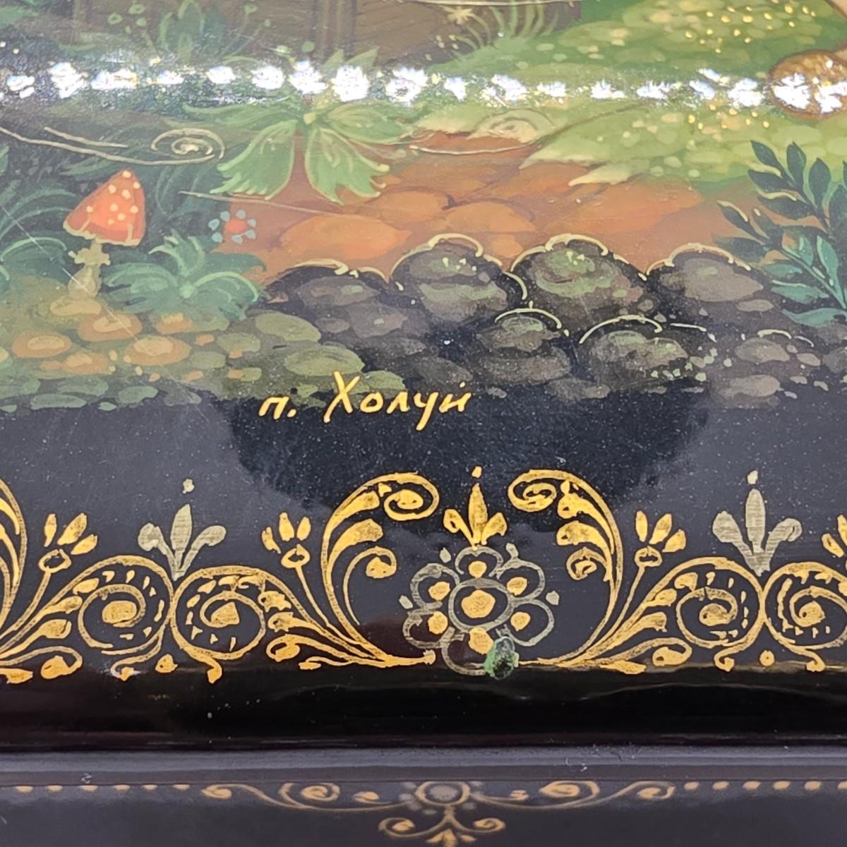 LOT 204: Beautiful Kholui Russian Laquer Box handpainted and signed by Artist