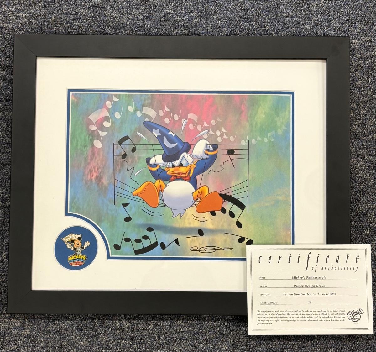 LOT 224: Disney Donald Duck 2003 Mickeys Philharmagic Framed Art w/Pin and COA
