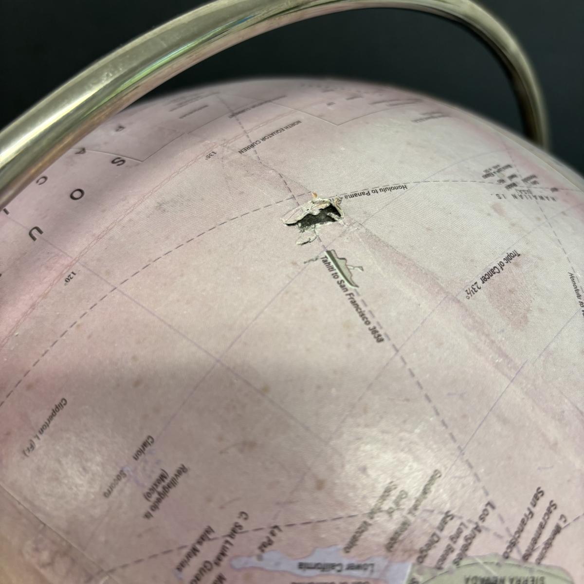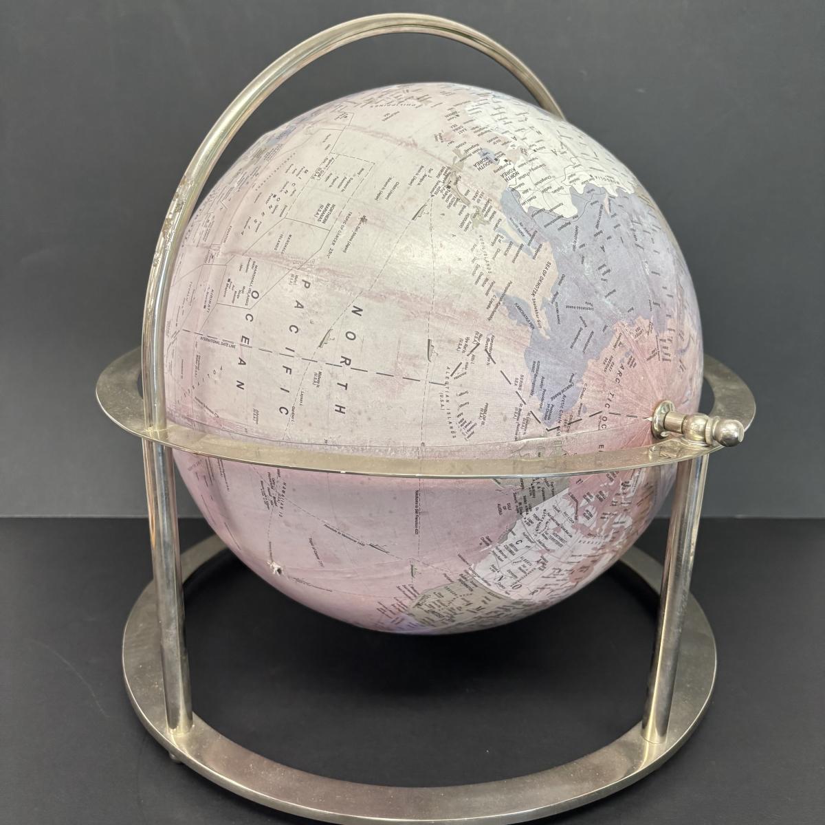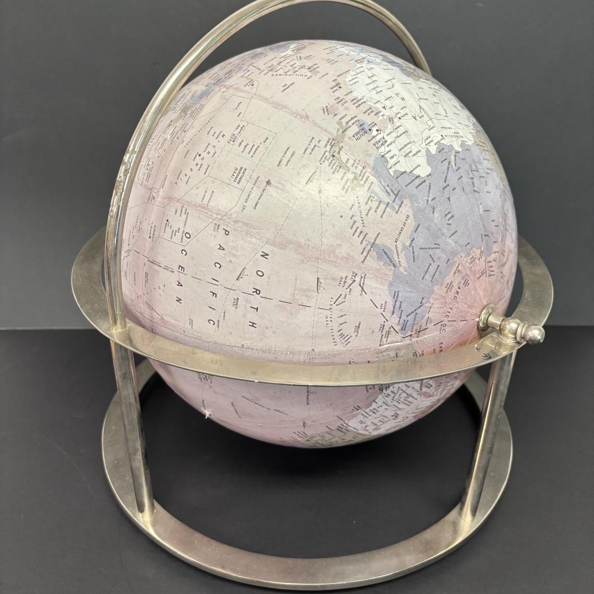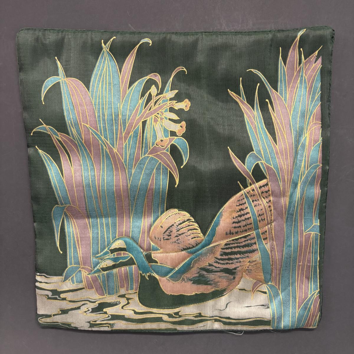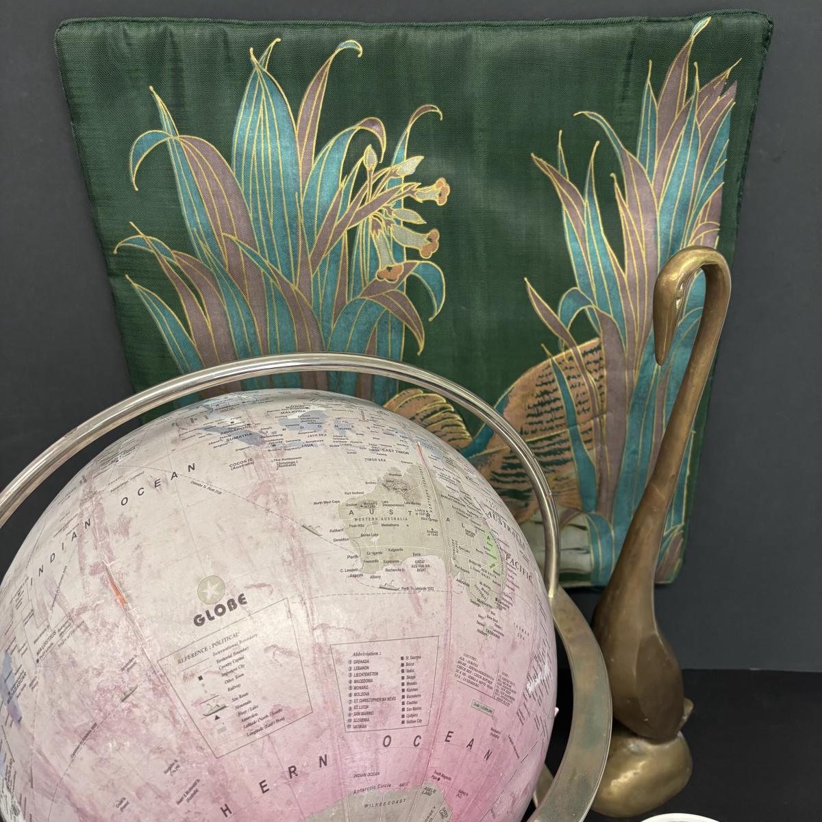 LOT 234: Hand Crafted Thai Silk Pillow Cover, Solid Brass Heron Bird, World Globe & Vintage Teacup