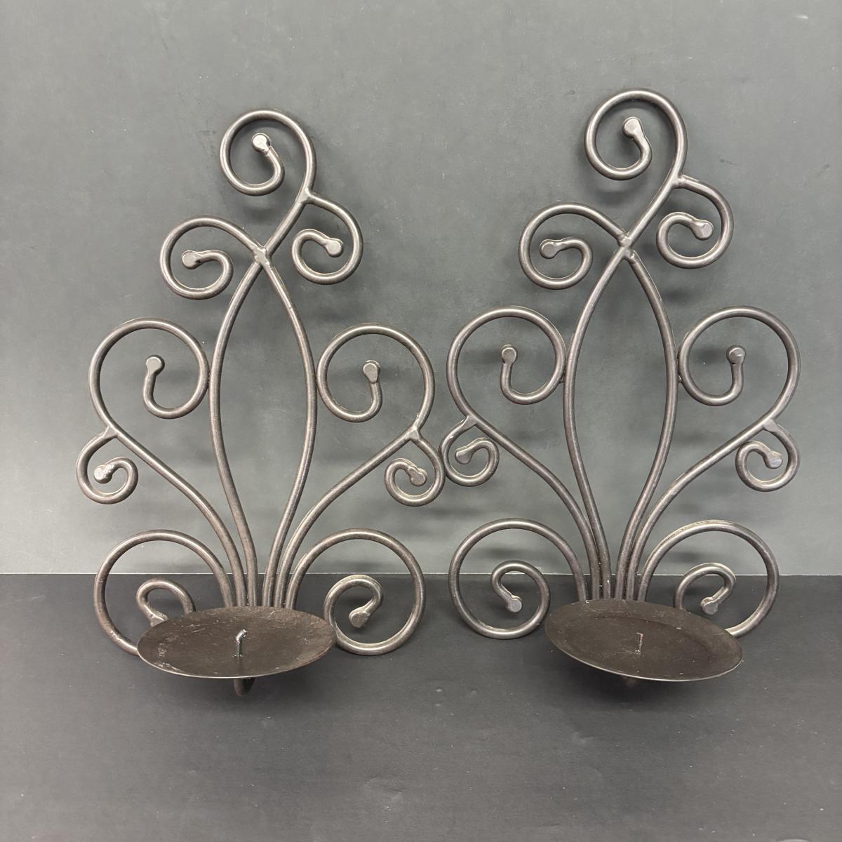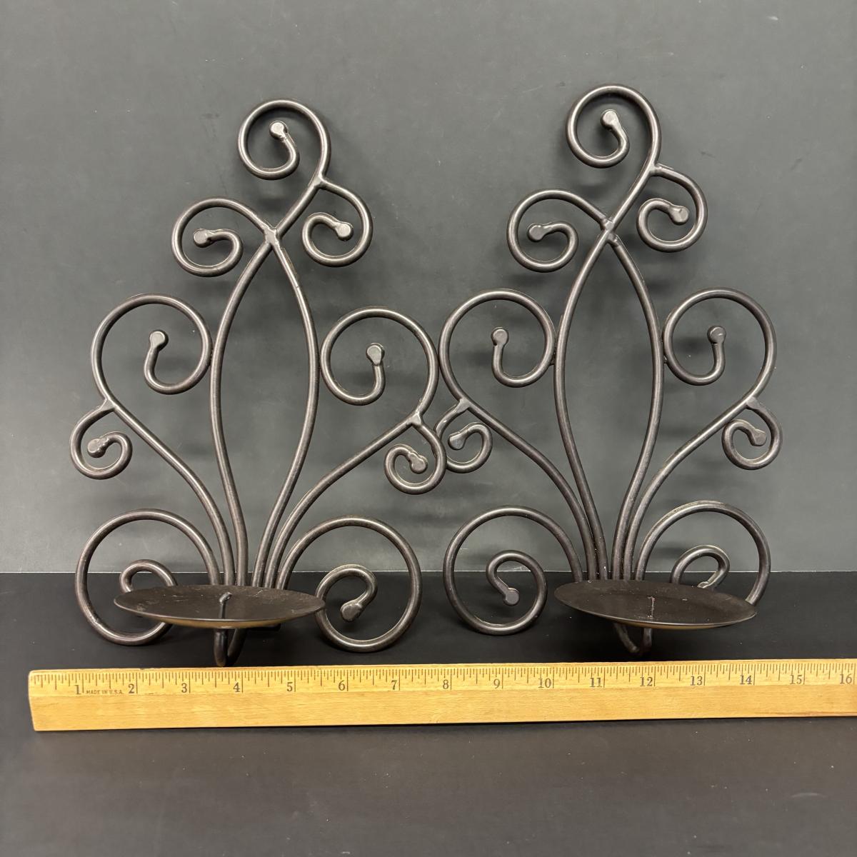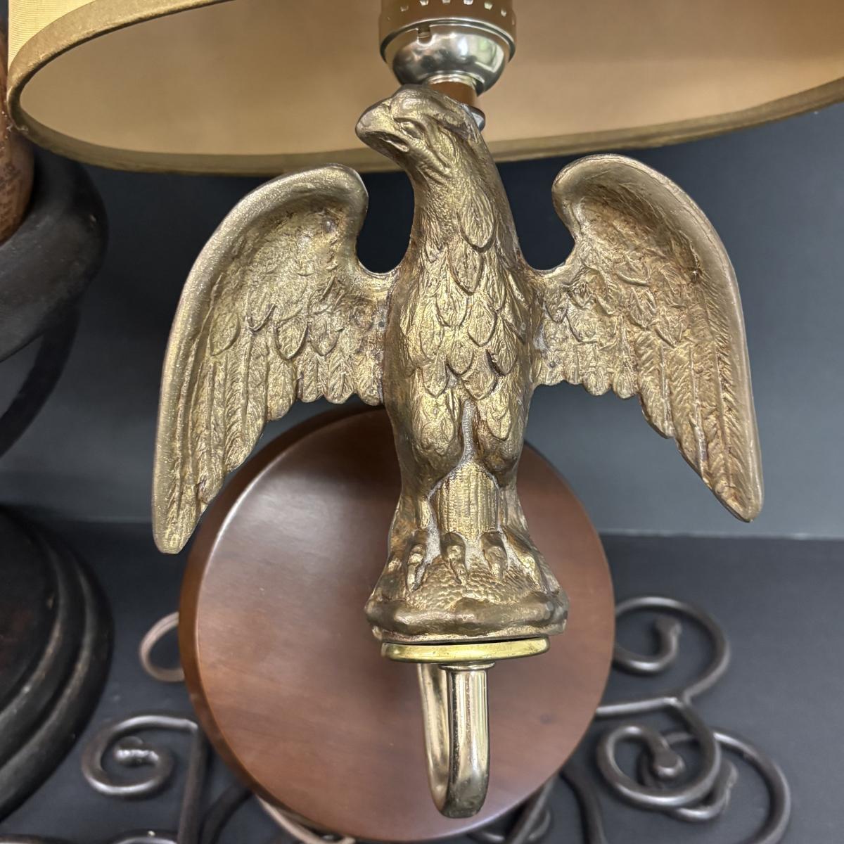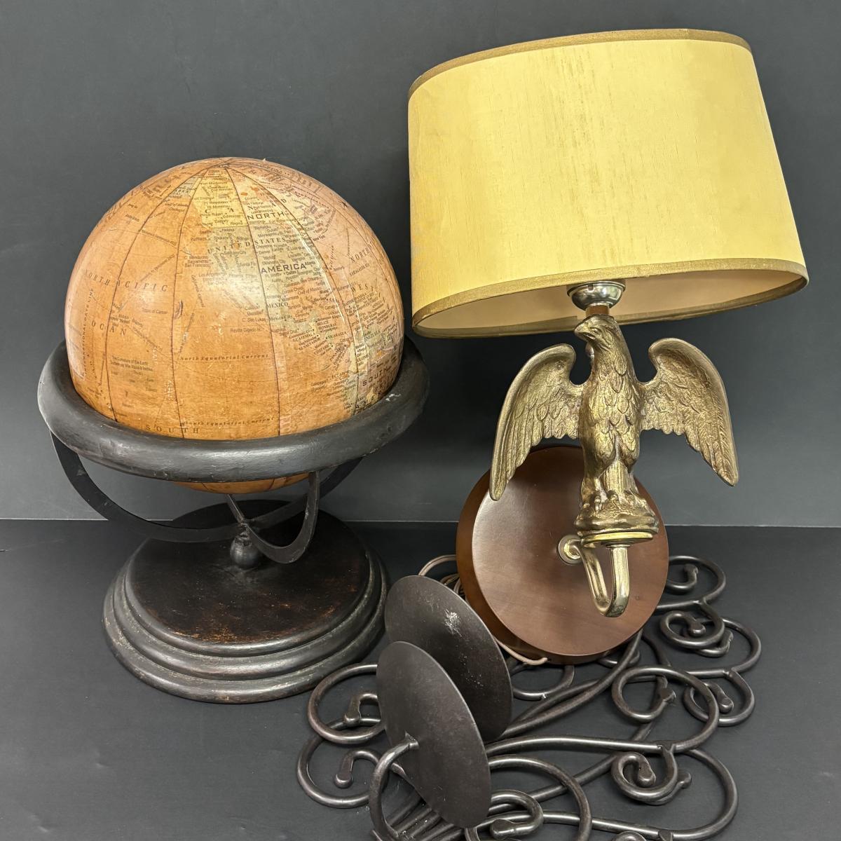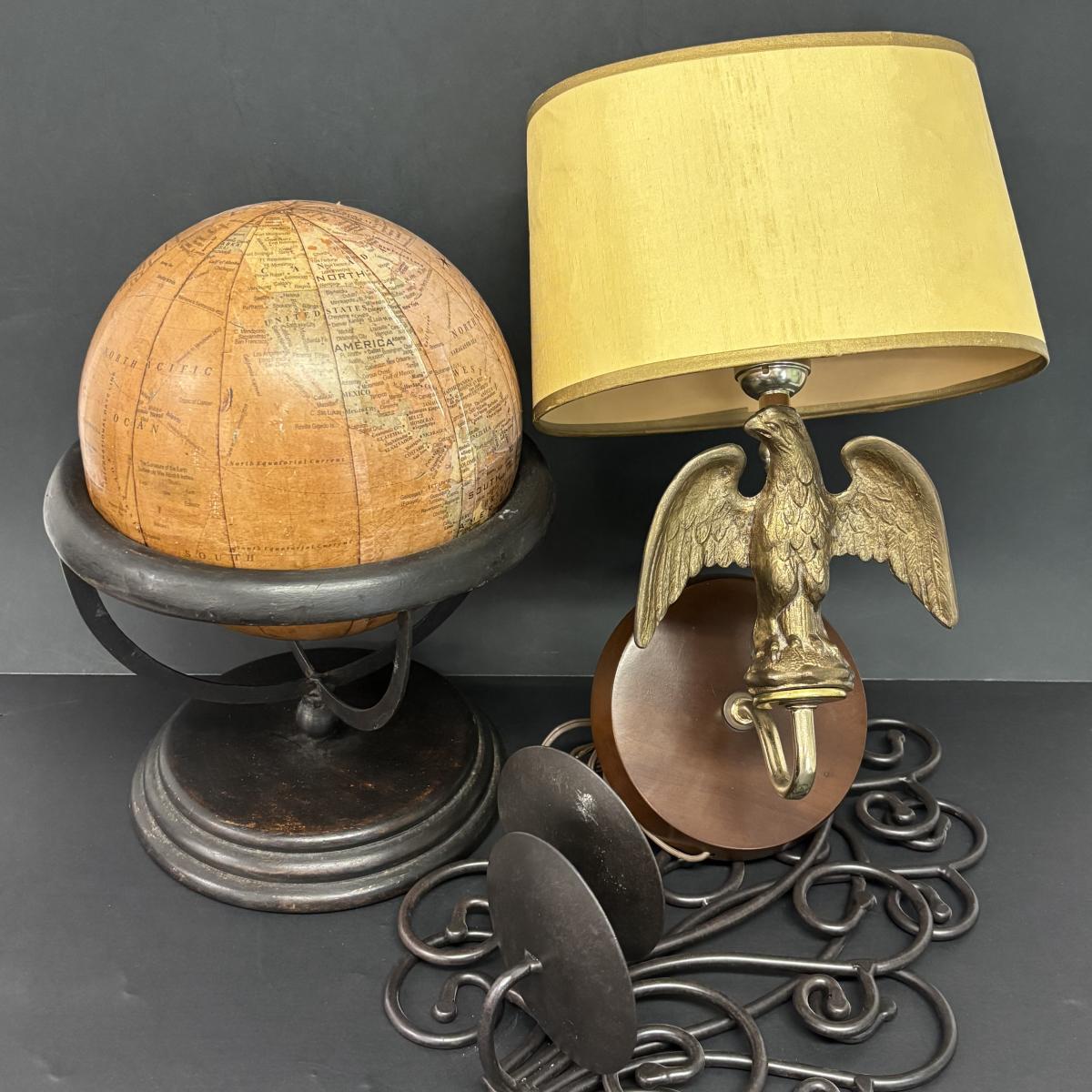 LOT 236: Home Decor: Brass Eagle Wall Lamp, Globe along with Matal Candle Wall Sconces