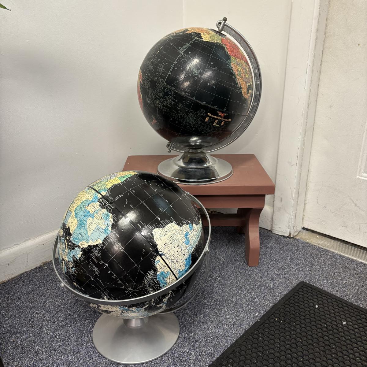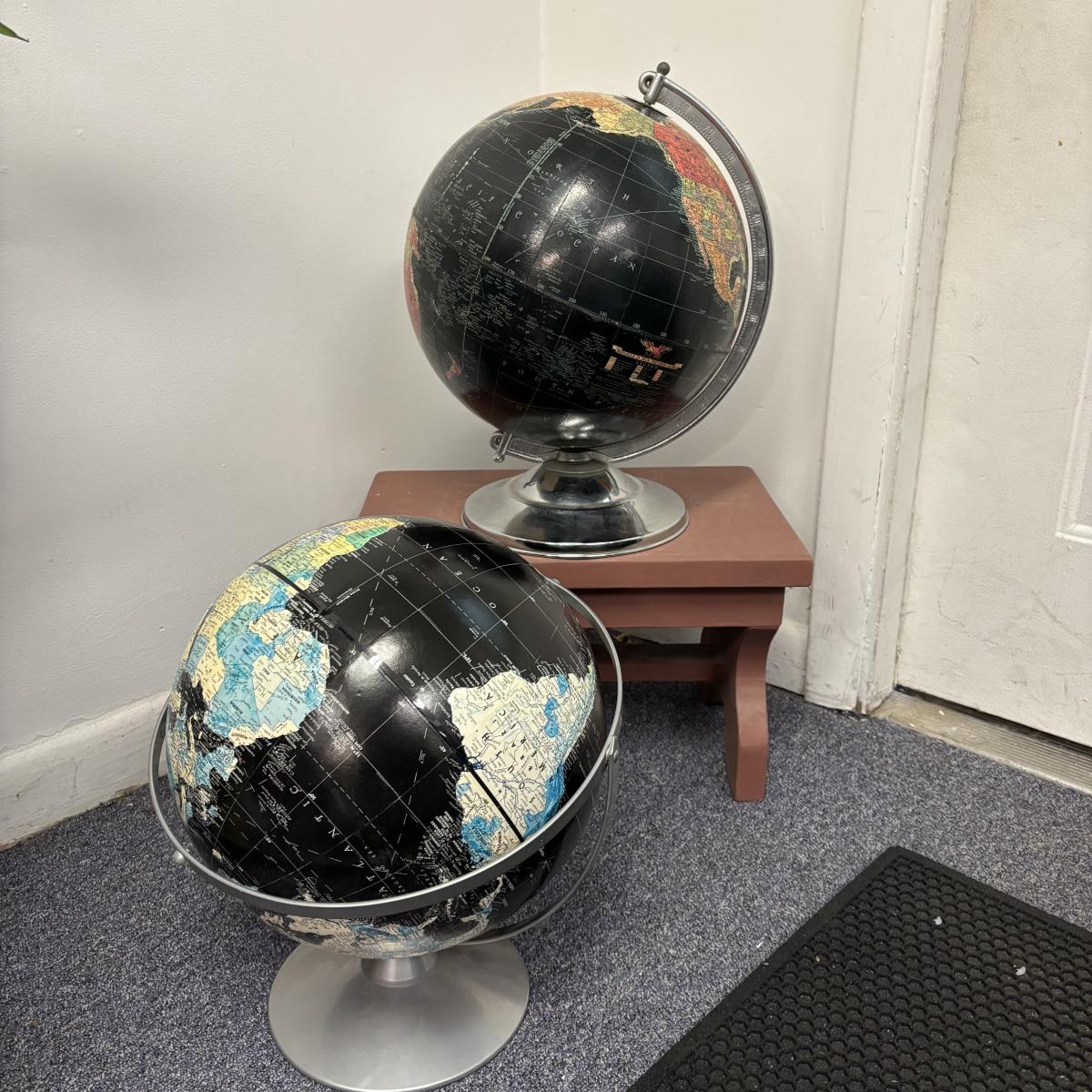 LOT 239: Set of 2 Vintage Replodge Globes: 12" Precision & 12" Starlight