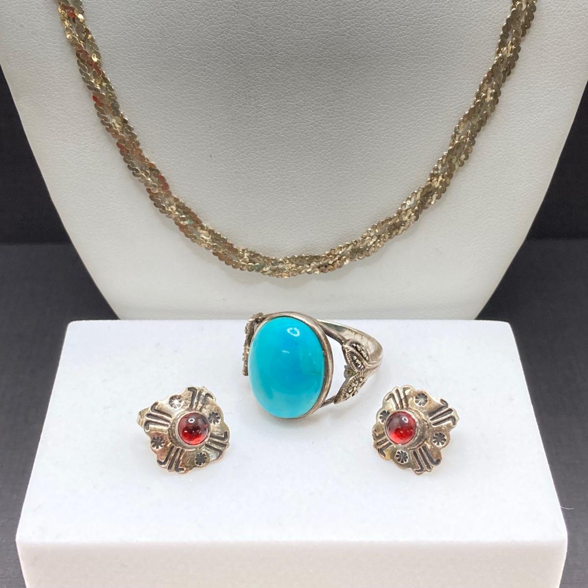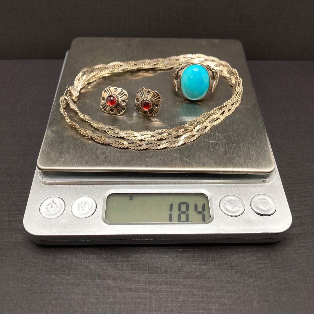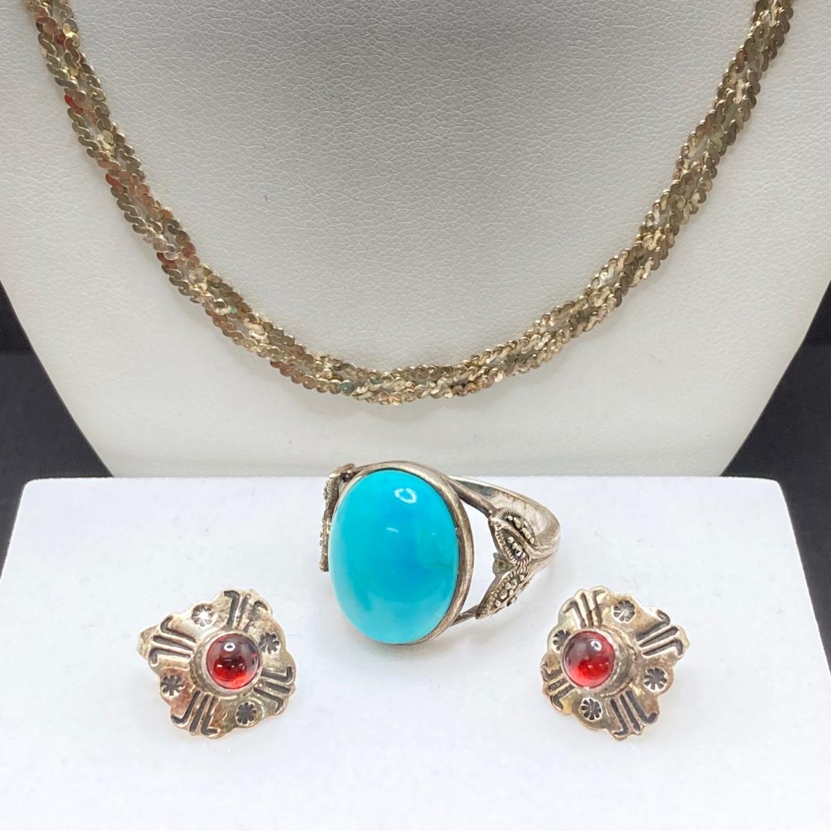 LOT 248: Sterling Silver Jewelry - Ring, Earrings and Chain - 18.4 gtw