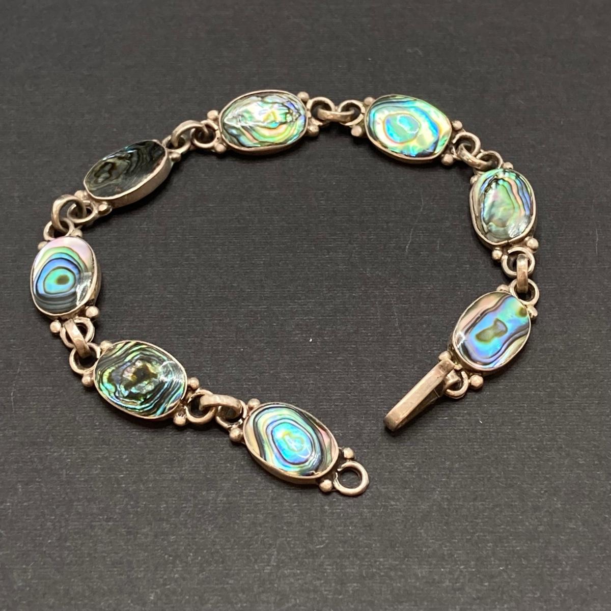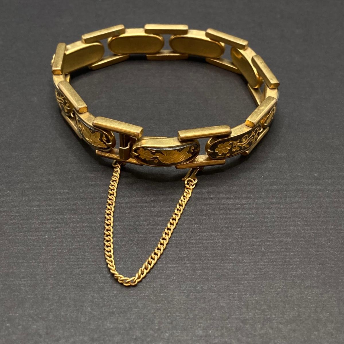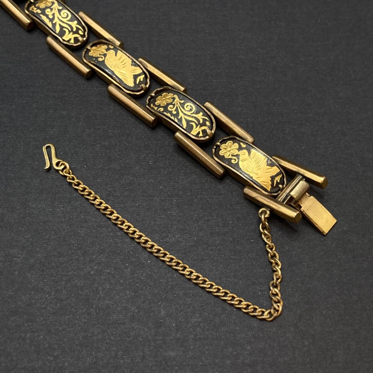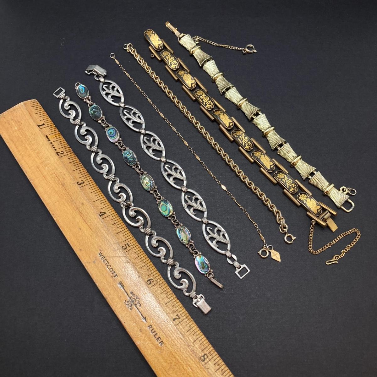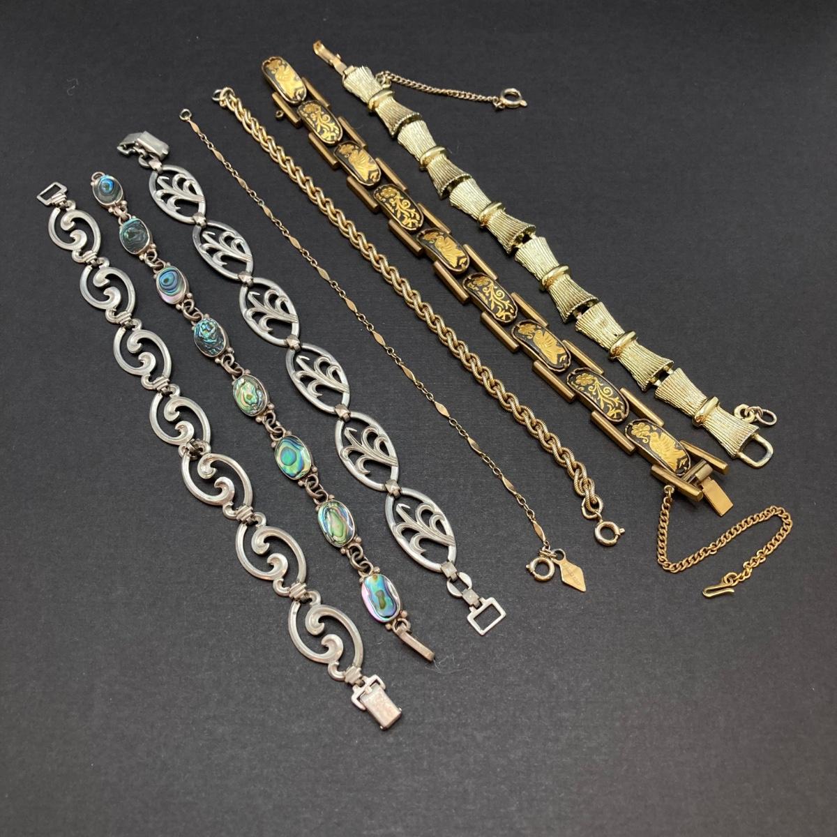 LOT 259: Vintage Bracelets - Damascene Bracelet with Safety Clasp, Sterling, Abalone and More