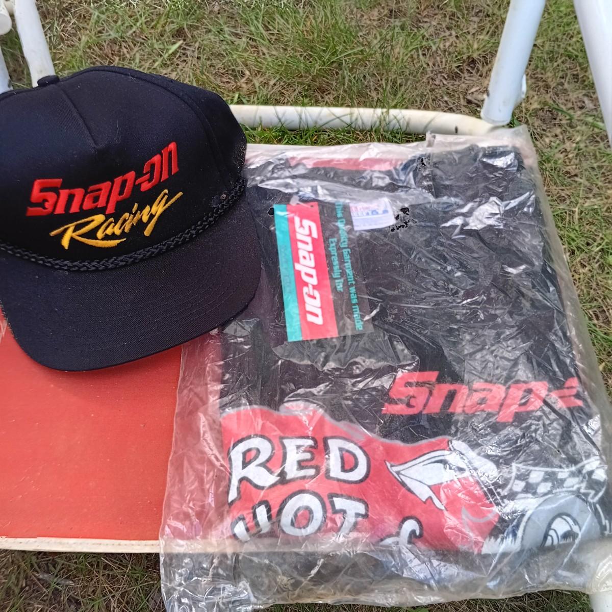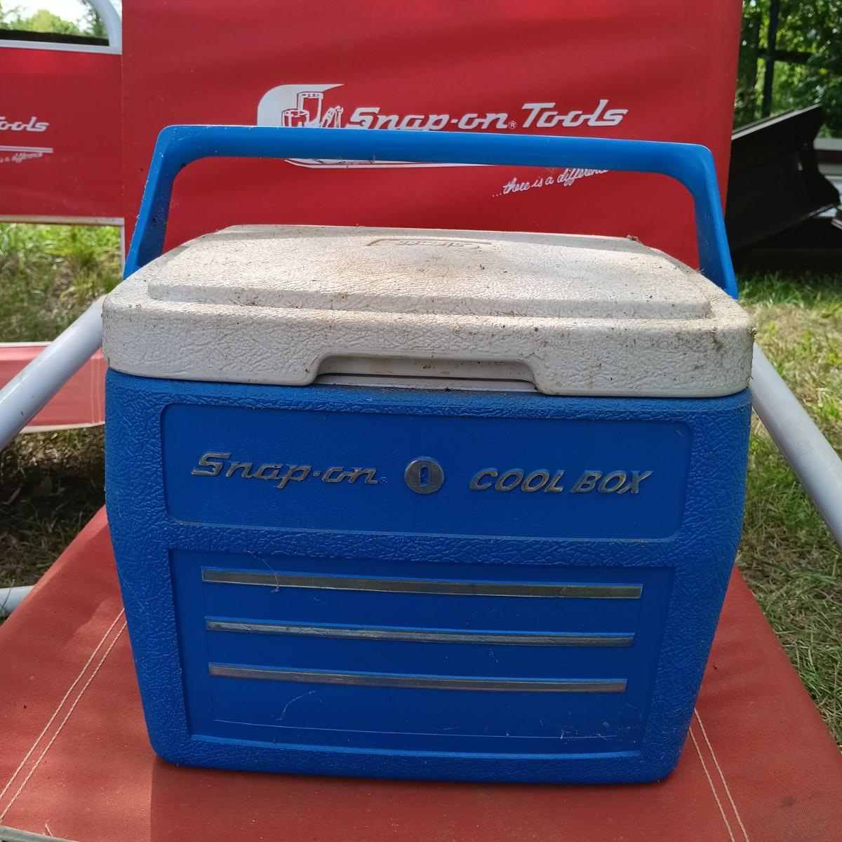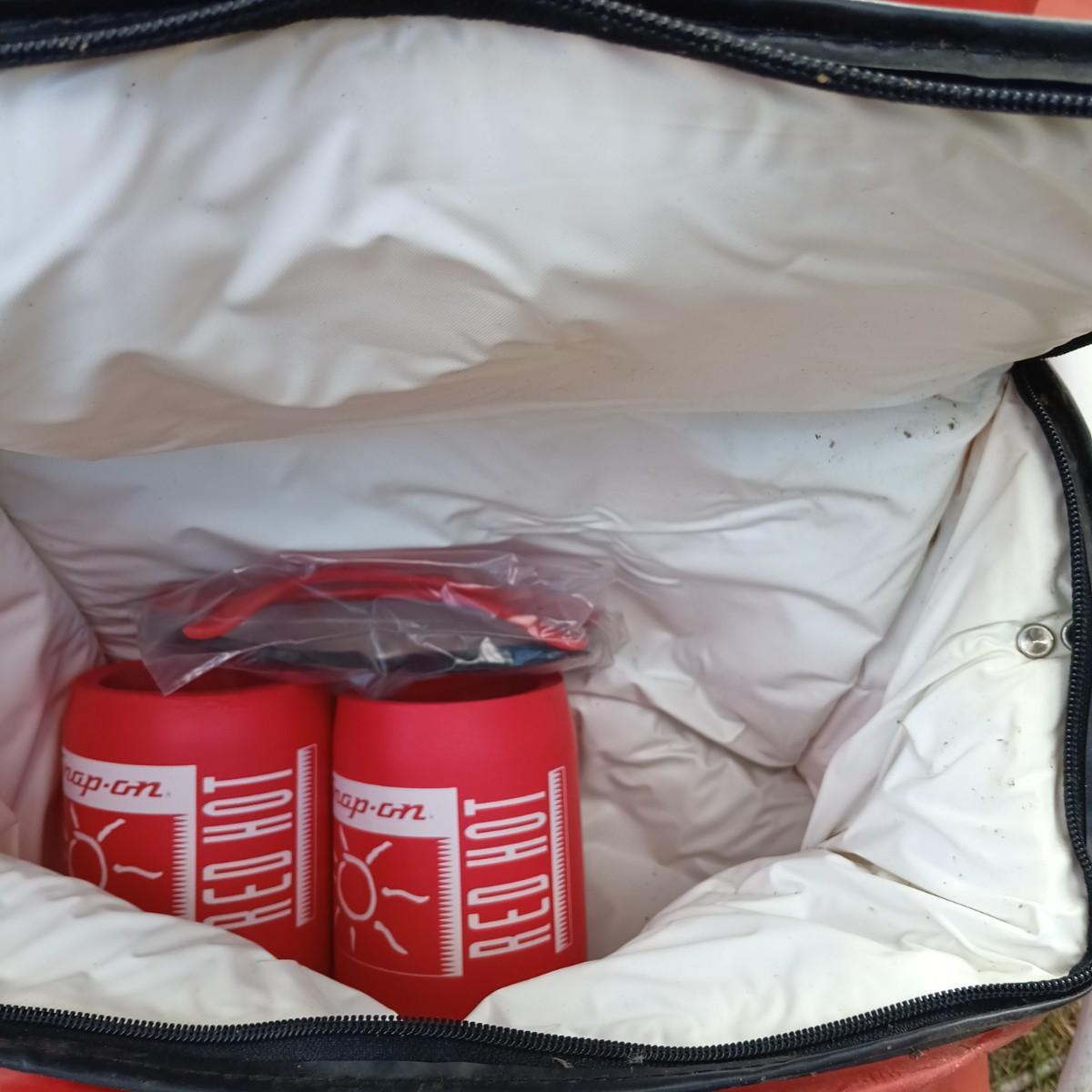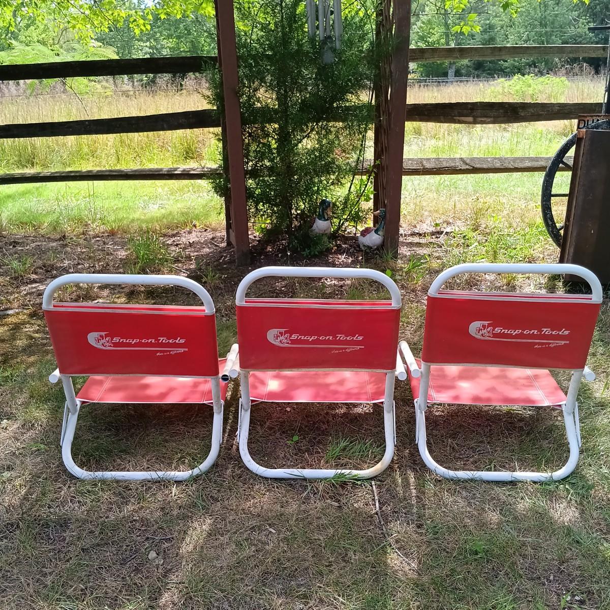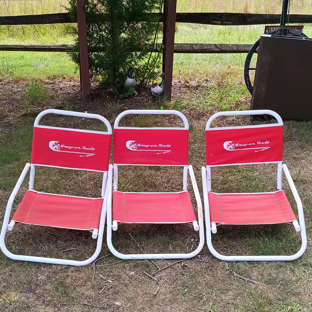 LOT 15: Snap-On Folding Beach Chairs with Blue Cool Box, Snap-On Racing Hat, Red Hot Shirt & More