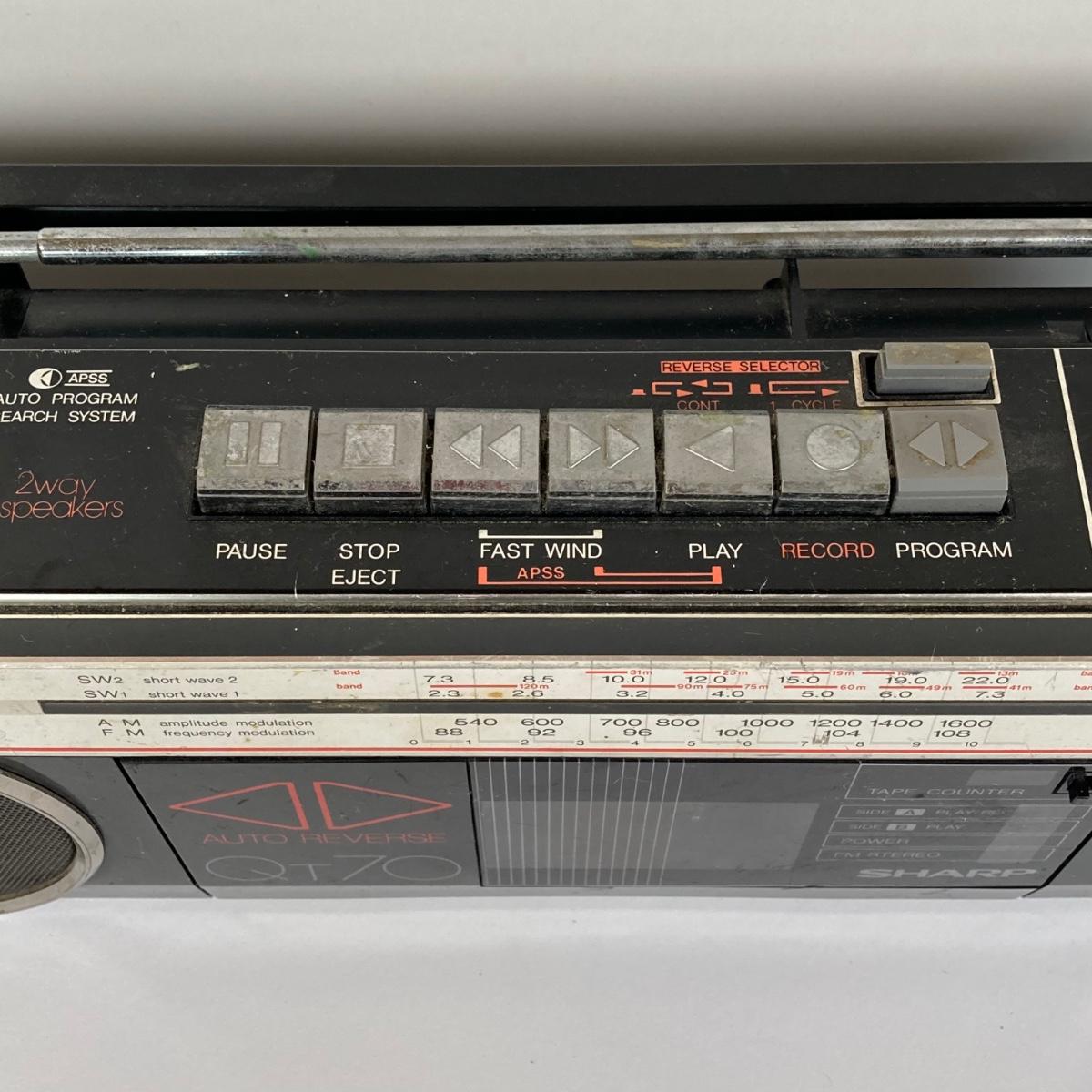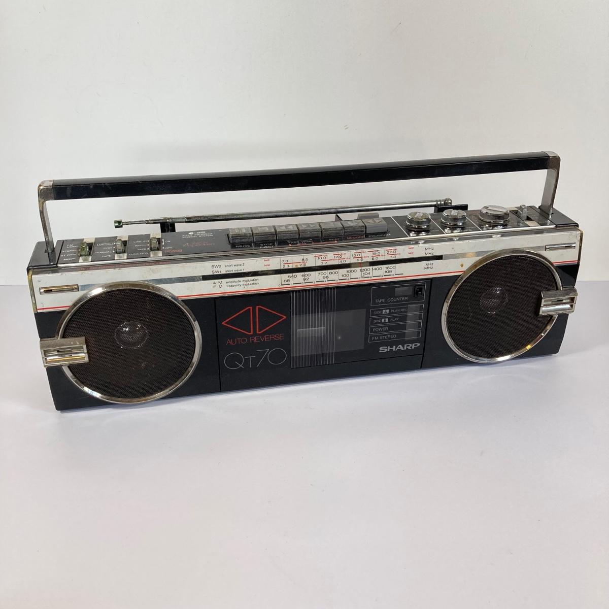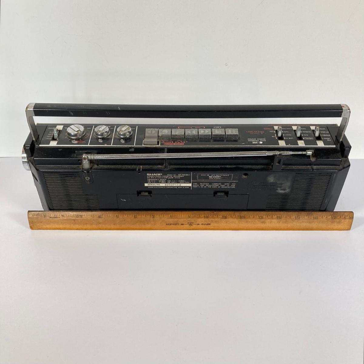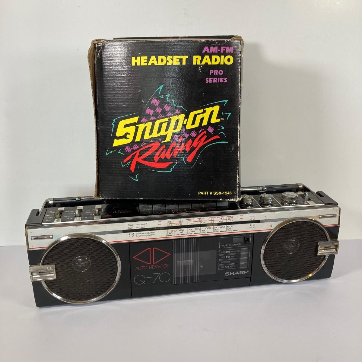 LOT 52: Vintage Sharp Model No. QT-70(BK) Portable Stereo Radio Cassette Recorder and Snap-on Racing Am-Fm Headset Radio in Original Box