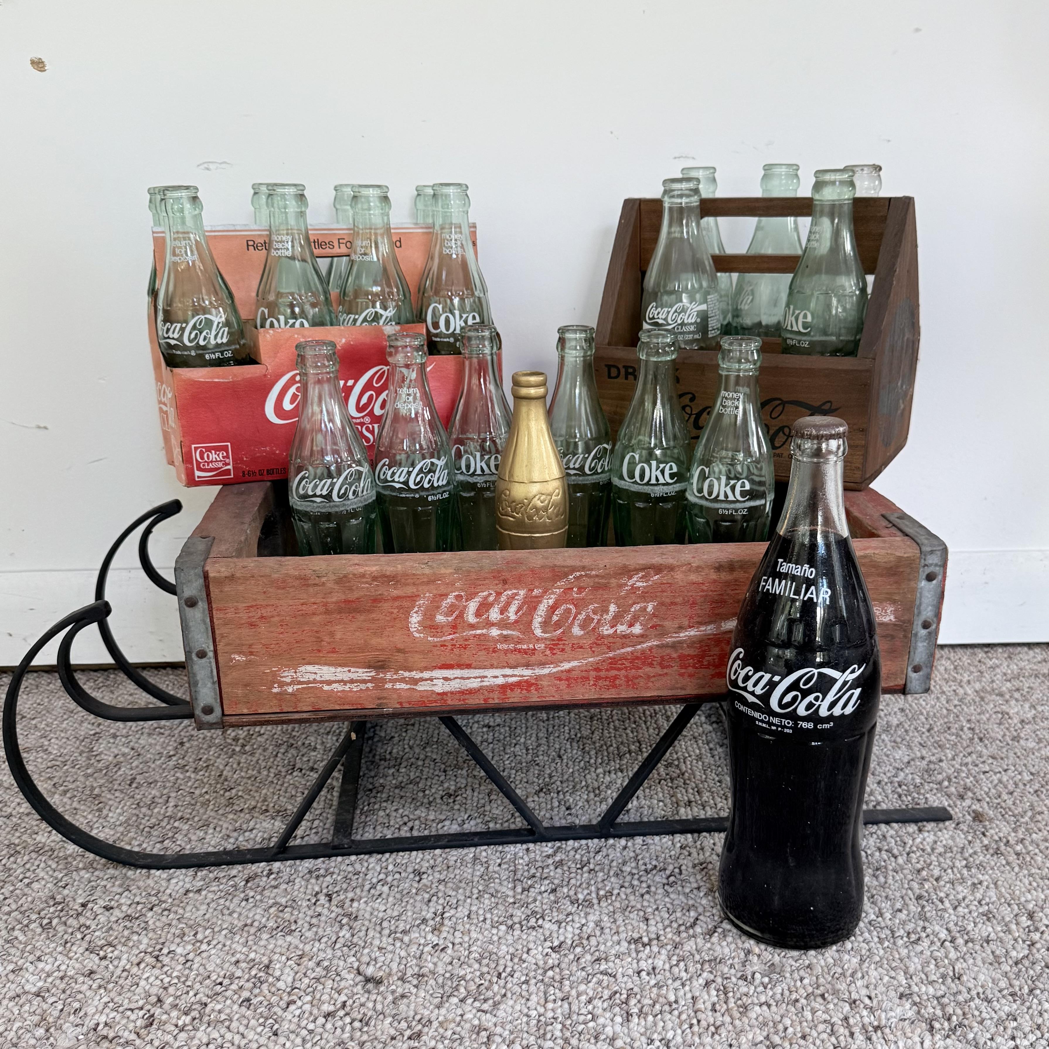 LOT 62: Vintage Coke/Coca Cola Wooden Crate Sled with Coke Bottles and More