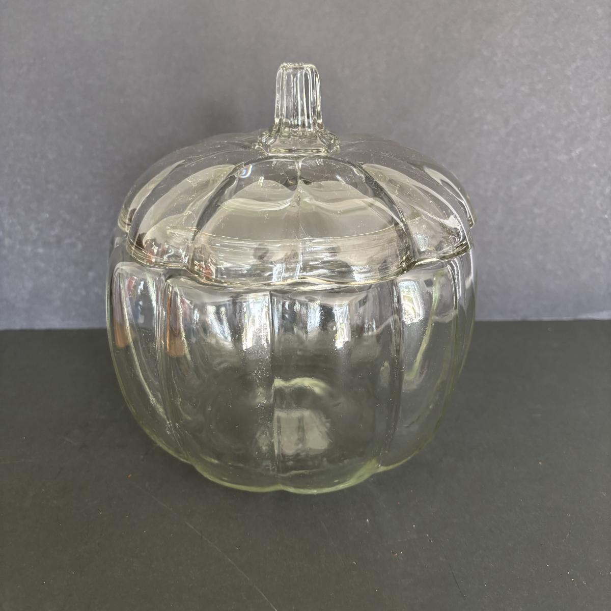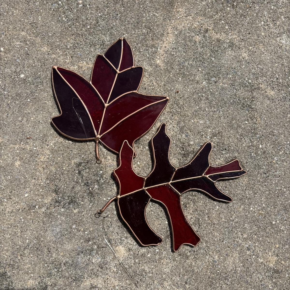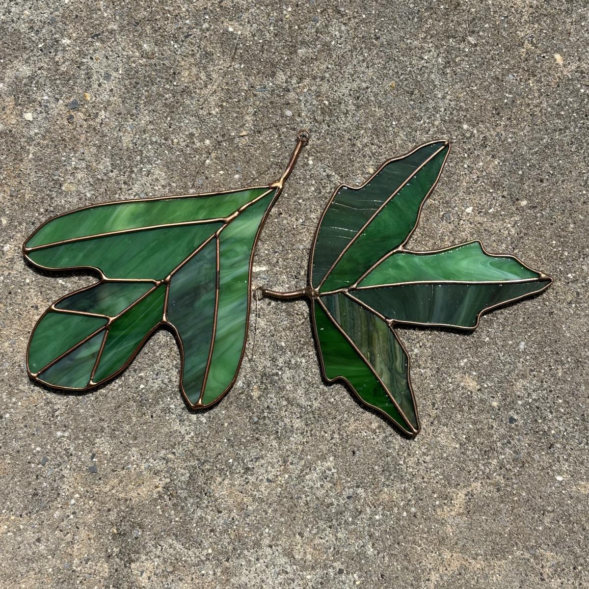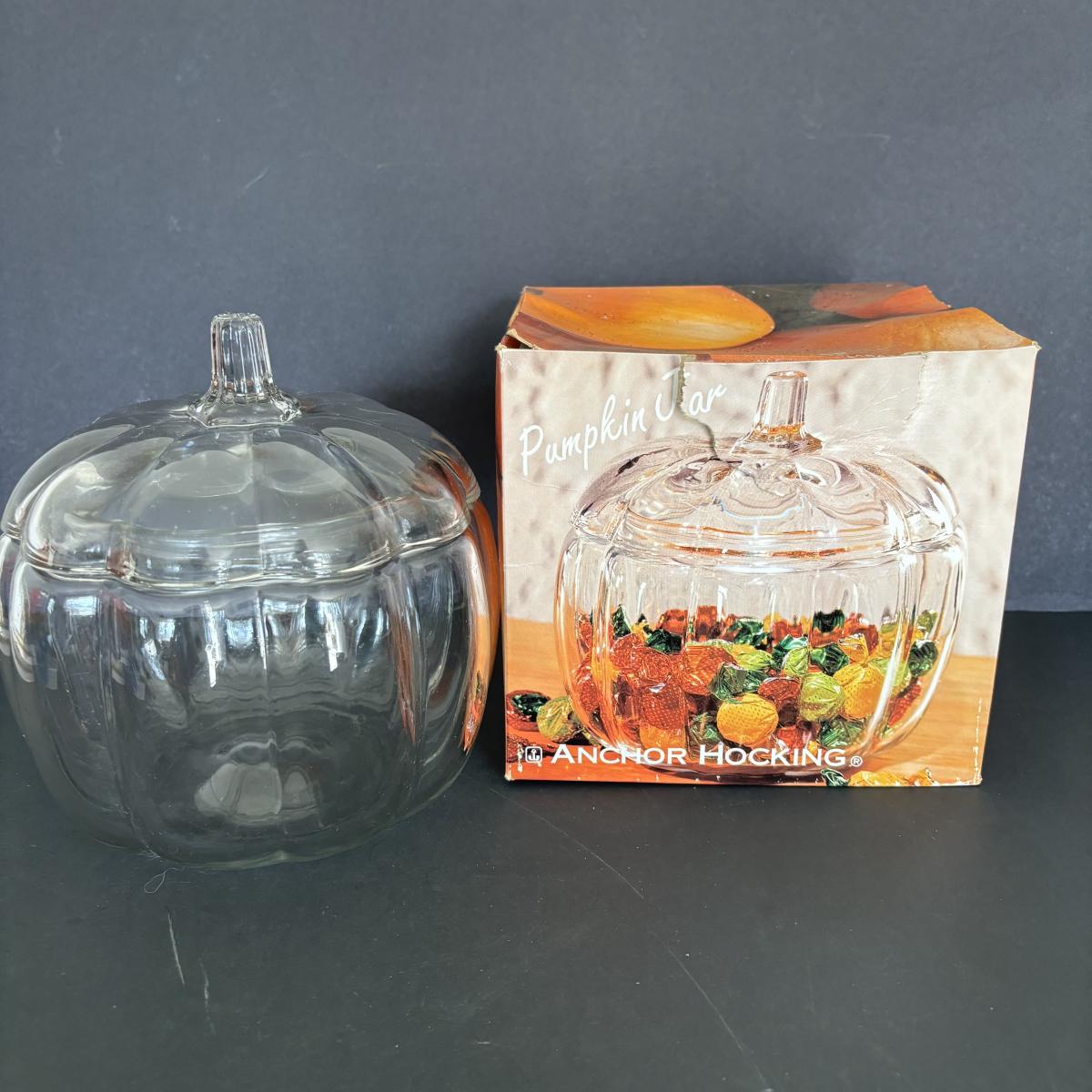 LOT 85: Set of 5 Stained Glass Leaves & Anchor Hocking Glass Pumpkin Jar