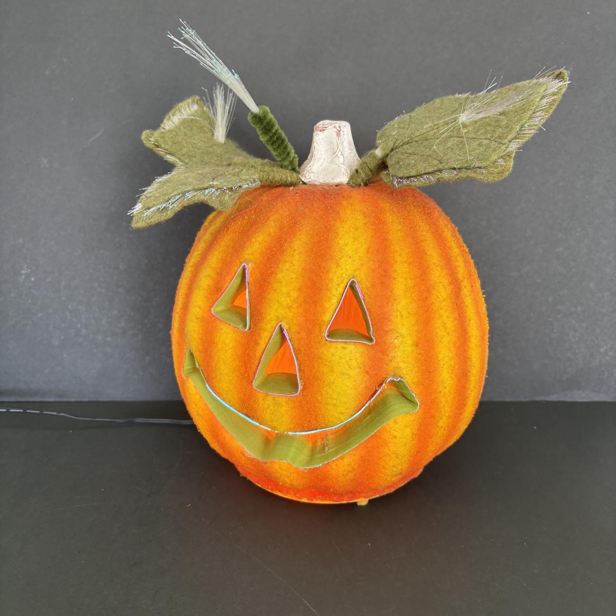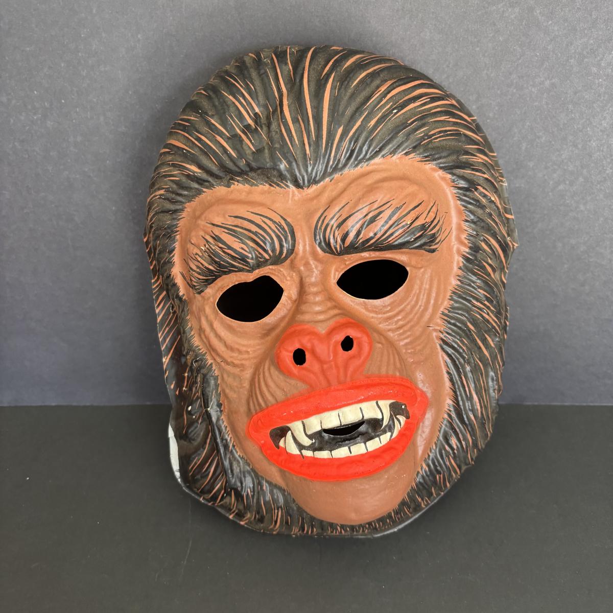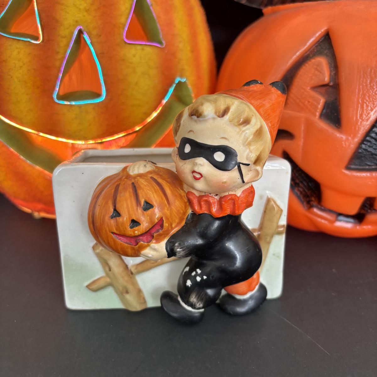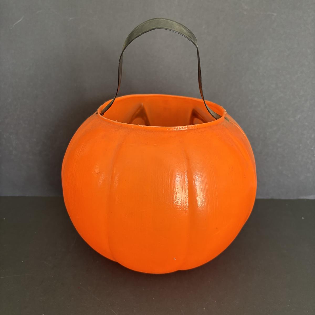 LOT 86: Vintage Halloween Pumpkin Candy Bucket, Relpo Planter & Gorilla Mask along with a 10" Fiber Optic Pumpkin ?