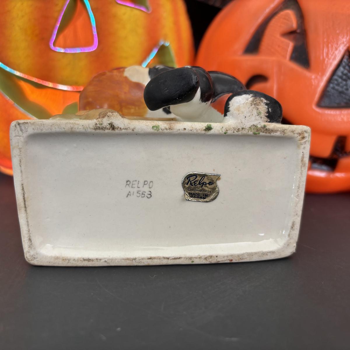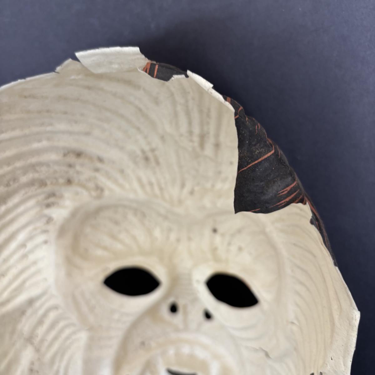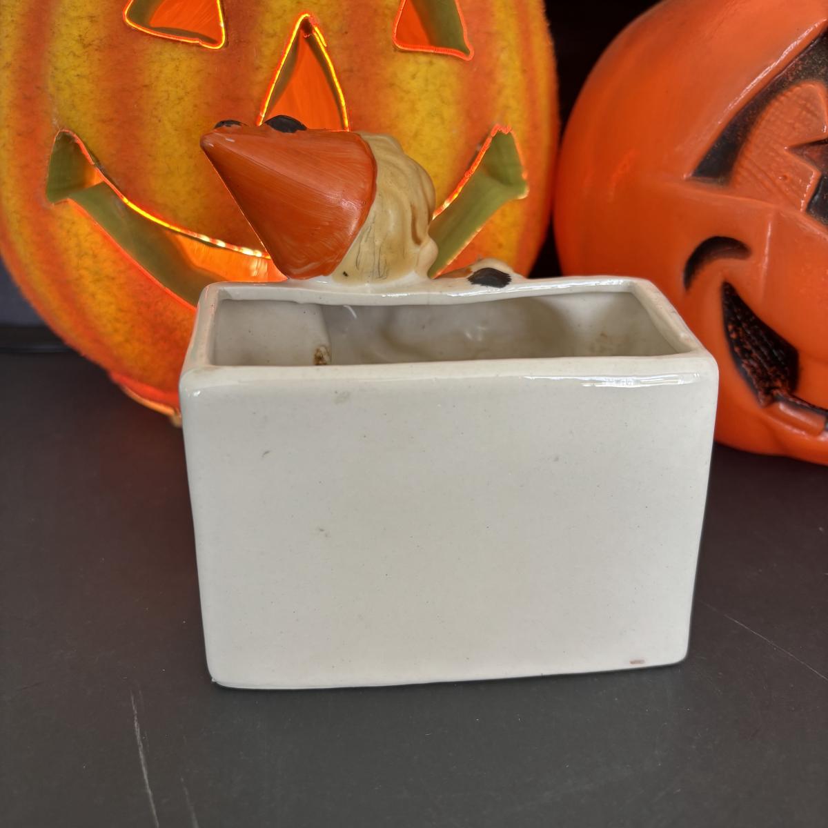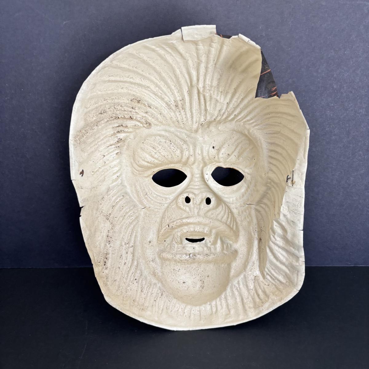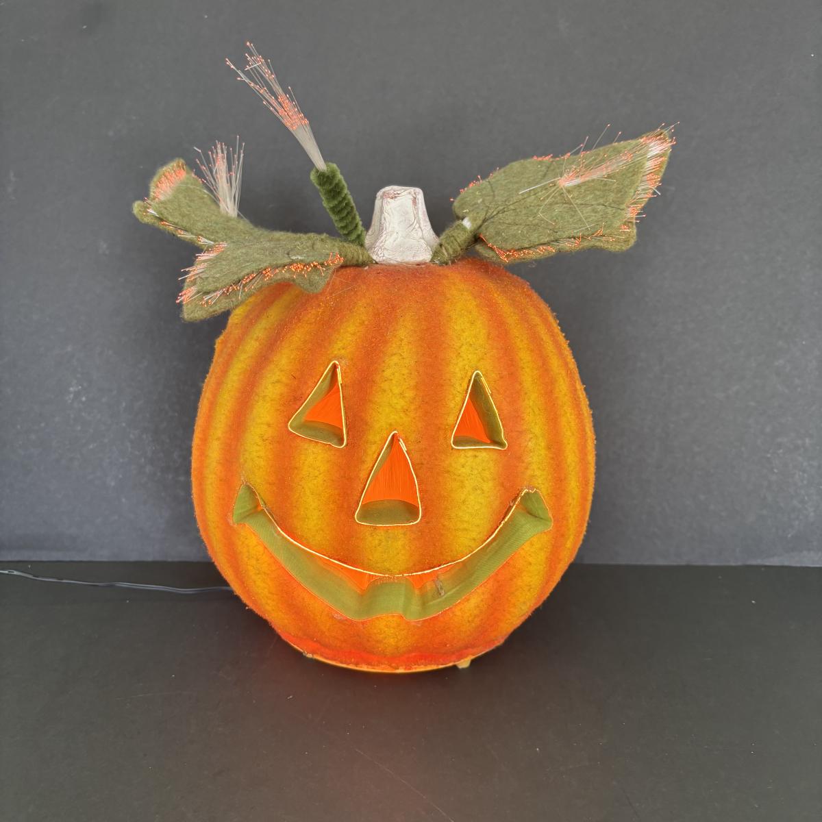 LOT 86: Vintage Halloween Pumpkin Candy Bucket, Relpo Planter & Gorilla Mask along with a 10" Fiber Optic Pumpkin ?