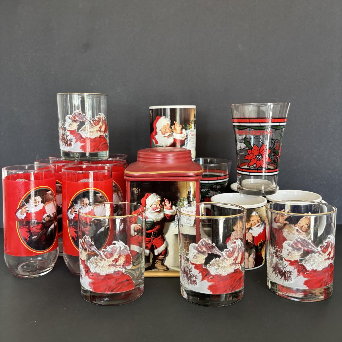 LOT 104: Vintage Coca-Cola Holiday Glass, Mug & Jar Collection
